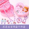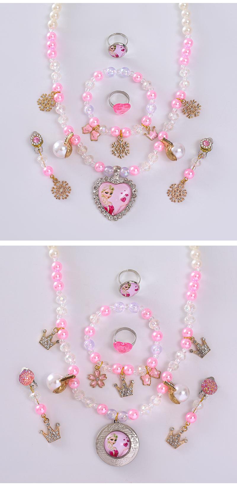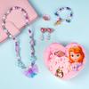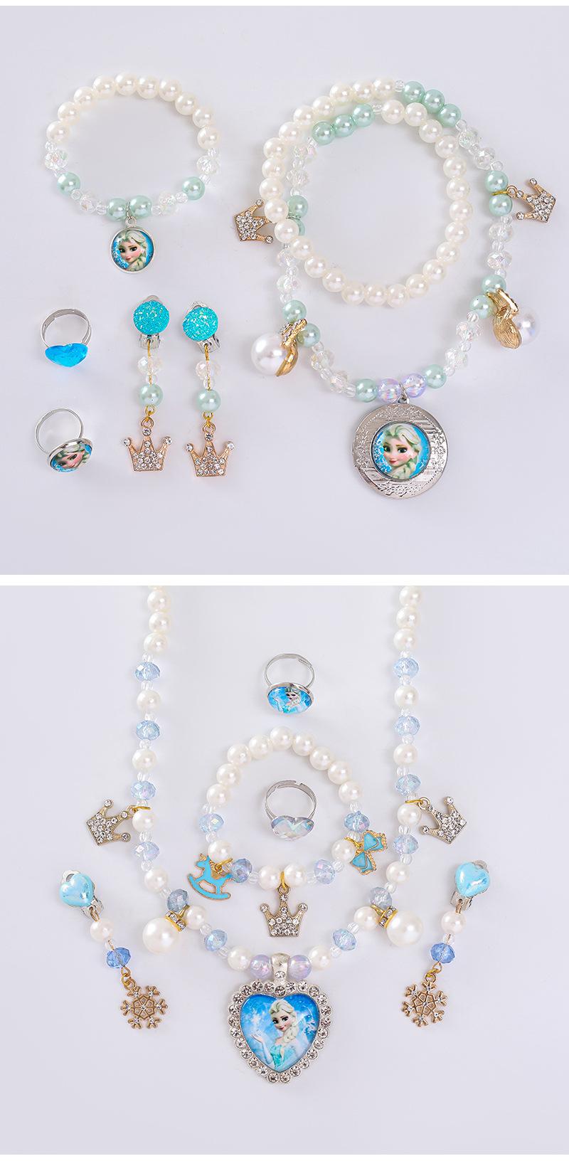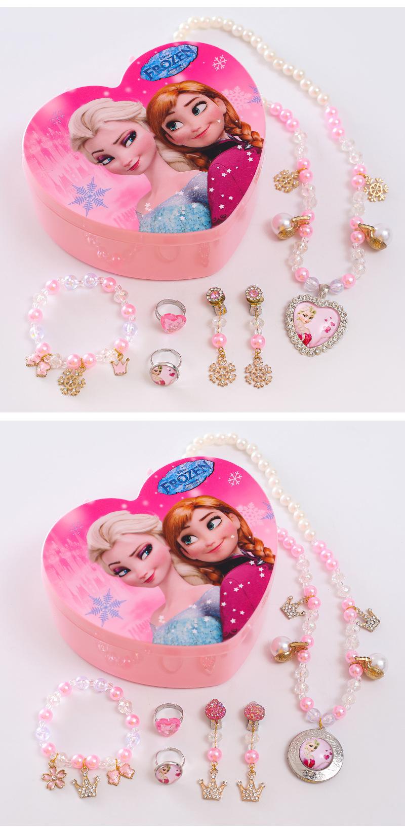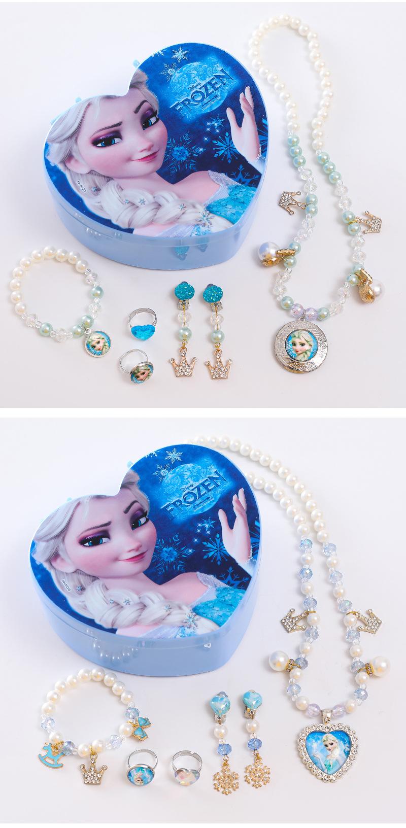 Colar Infantil da Princesa Elsa Pulseira Brincos Anel Conjunto Caixa de Joias de Princesa Joias de Princesa Fofas