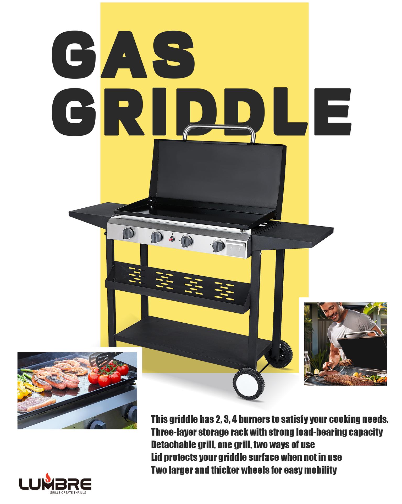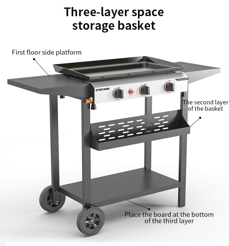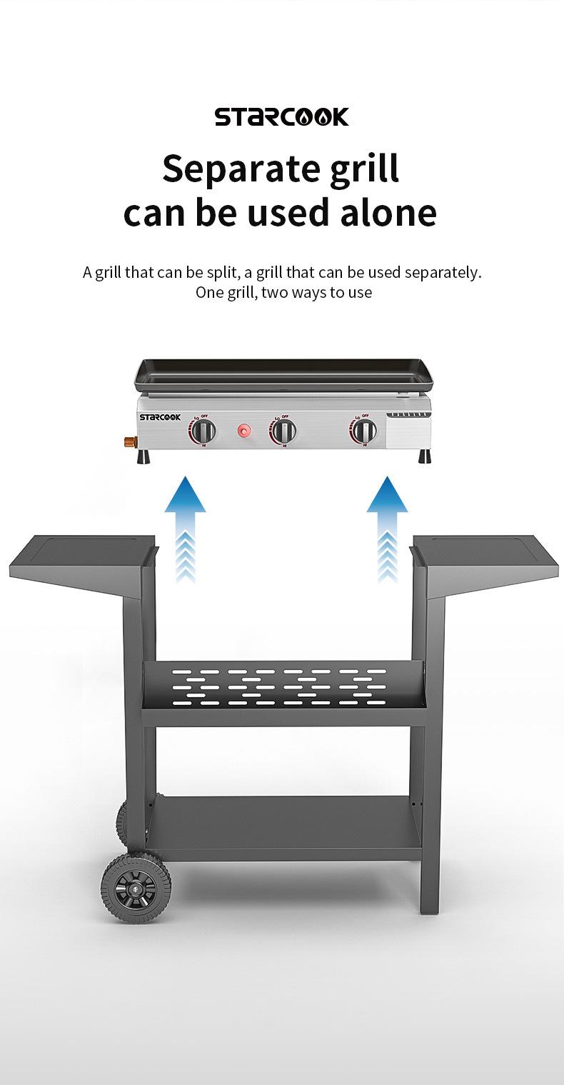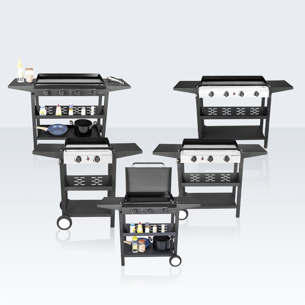 Carrinho Churrasqueira para Churrasco ao Ar Livre Teppanyaki com 2/3/4 Queimadores Aço Inoxidável Ignição Automática Churrasqueira para Camping