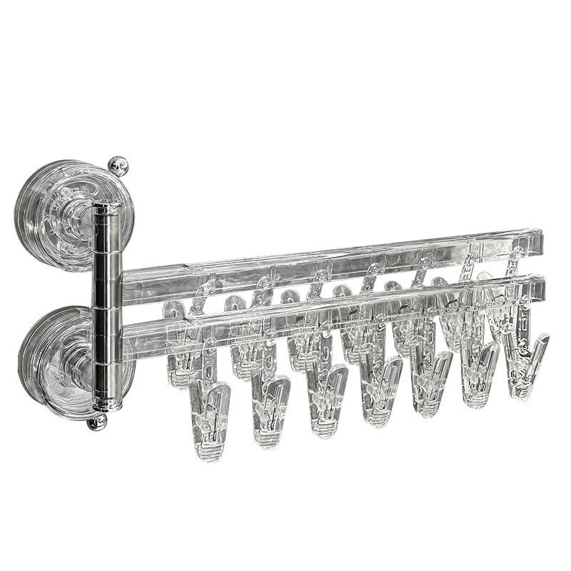 Suction cup clip drying rack (transparent color/double pole 14 clips), Suction cup clip drying rack (transpare...