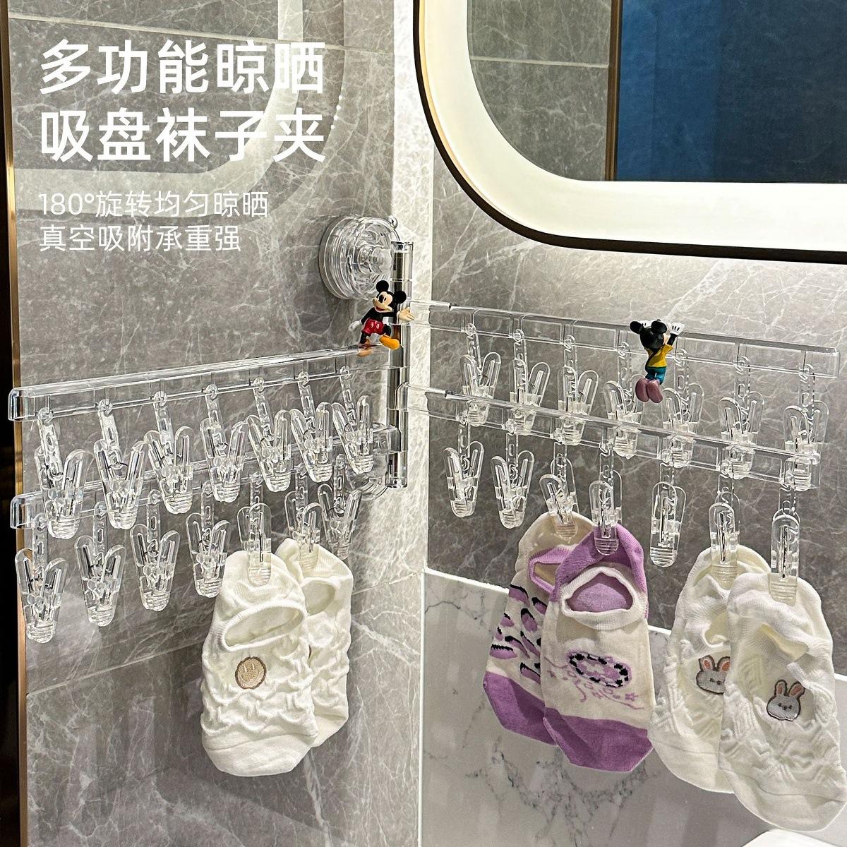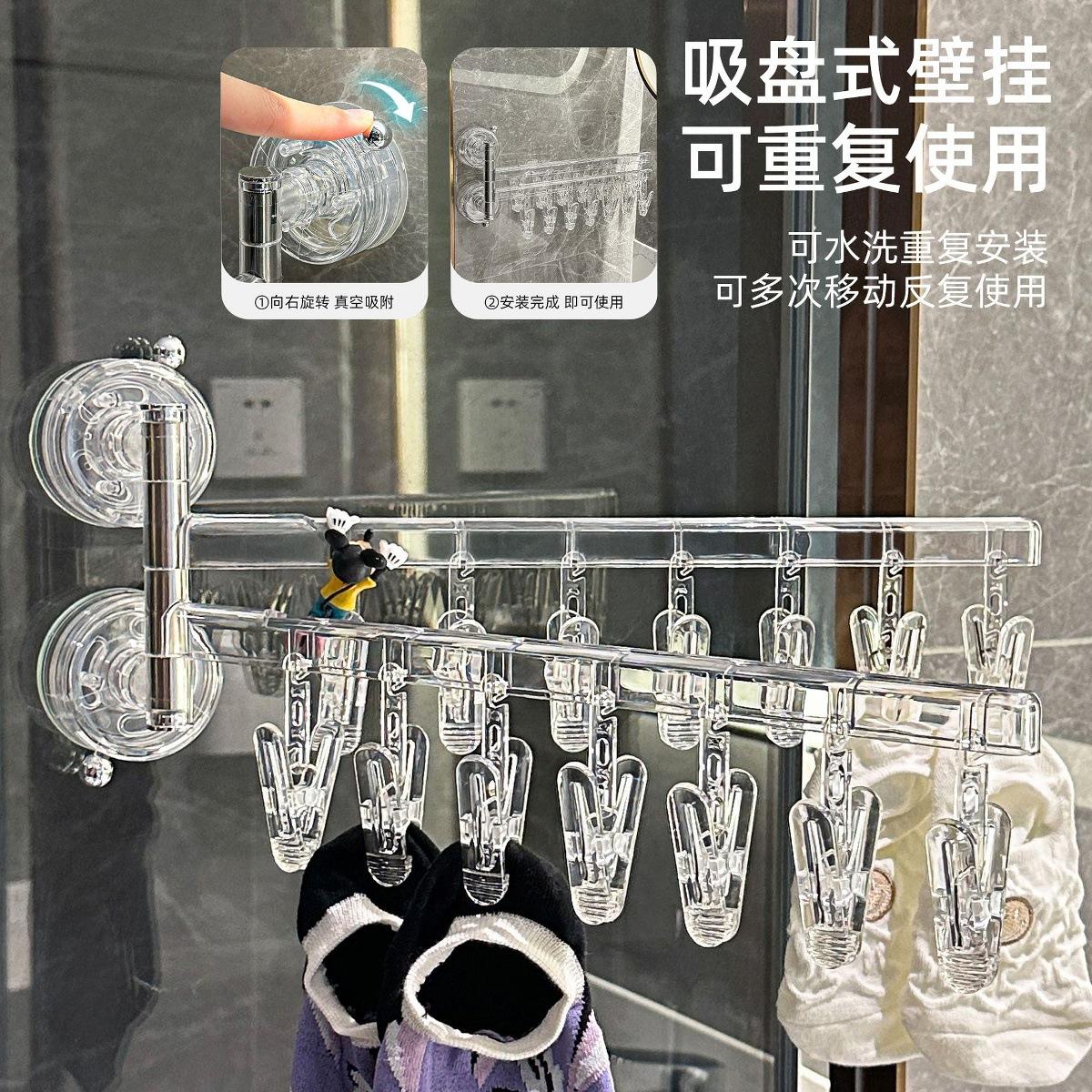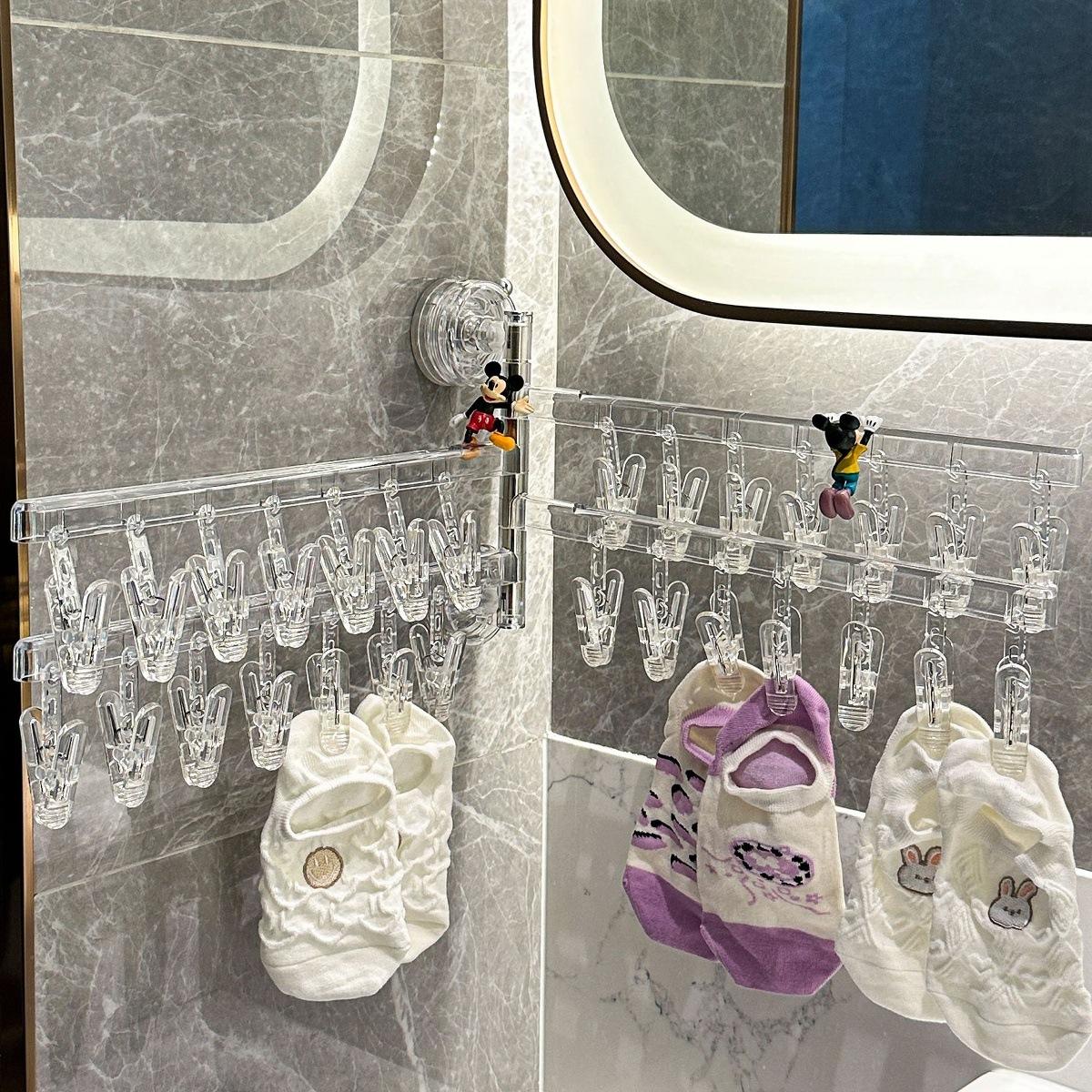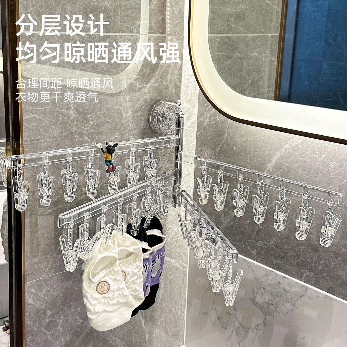 Varal de Meias com Ventosa Multifuncional Varal de Roupa de Varanda Ferramenta Doméstica Dobrável com Múltiplos Clipes para Secar Roupa Íntima