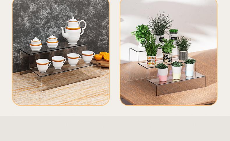 Suporte de Exibição Acrílico em Degraus Suporte de Exibição Transparente Multicamadas Transmissão ao Vivo Feito à Mão Suporte Degrau Prateleira de Armazenamento