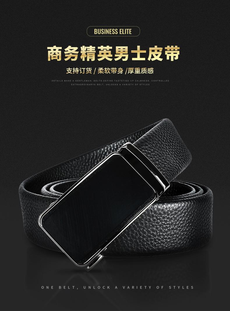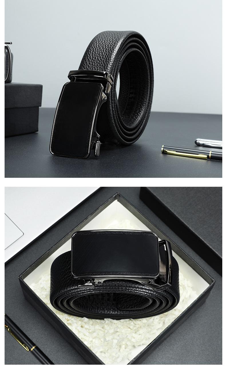 Cinto de Couro de Vaca Camada Superior Masculino Simples Negócios High-End Cinto Guangzhou Couro Genuíno Versátil Fivela Automática Cinto para Calças Atacado