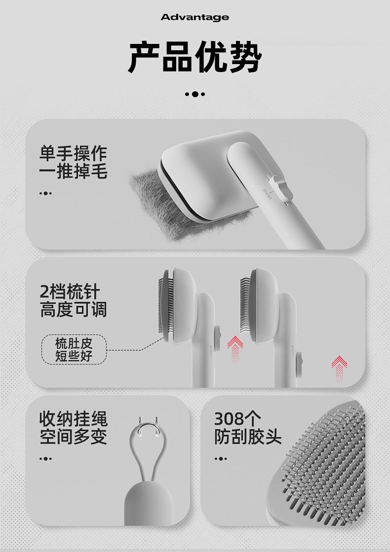 【Nome do Produto】:Pente Grande Deslanador para Animais de Estimação HOOPET (Branco/Preto/Verde)