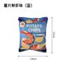 Fruit watermelon (red), Fruit orange (orange), Potato chips shrimp flavor blue, Original potato chips (orange)