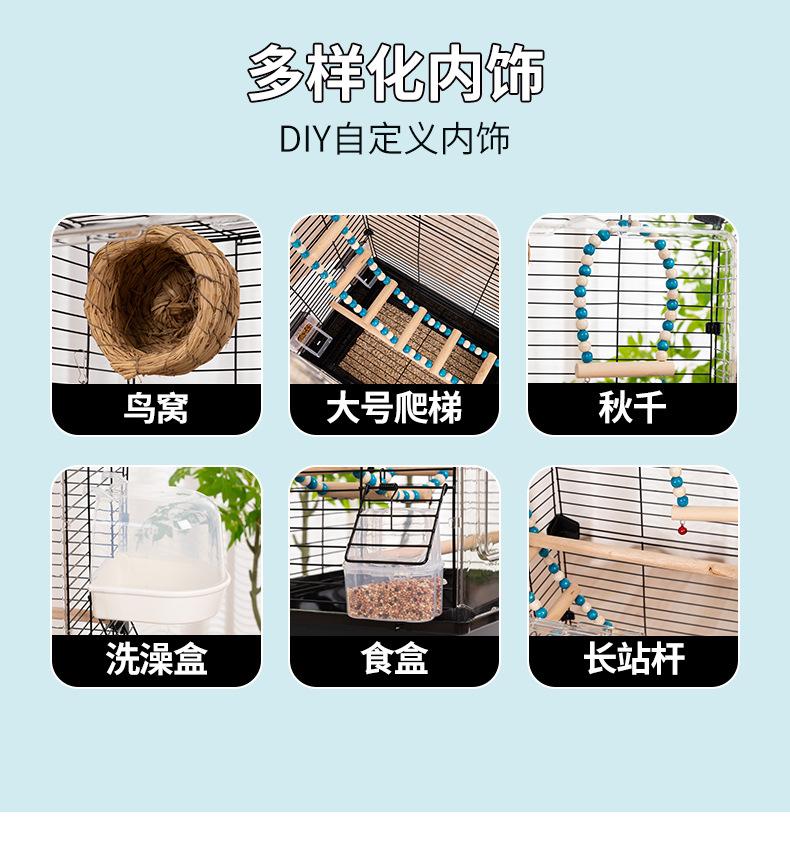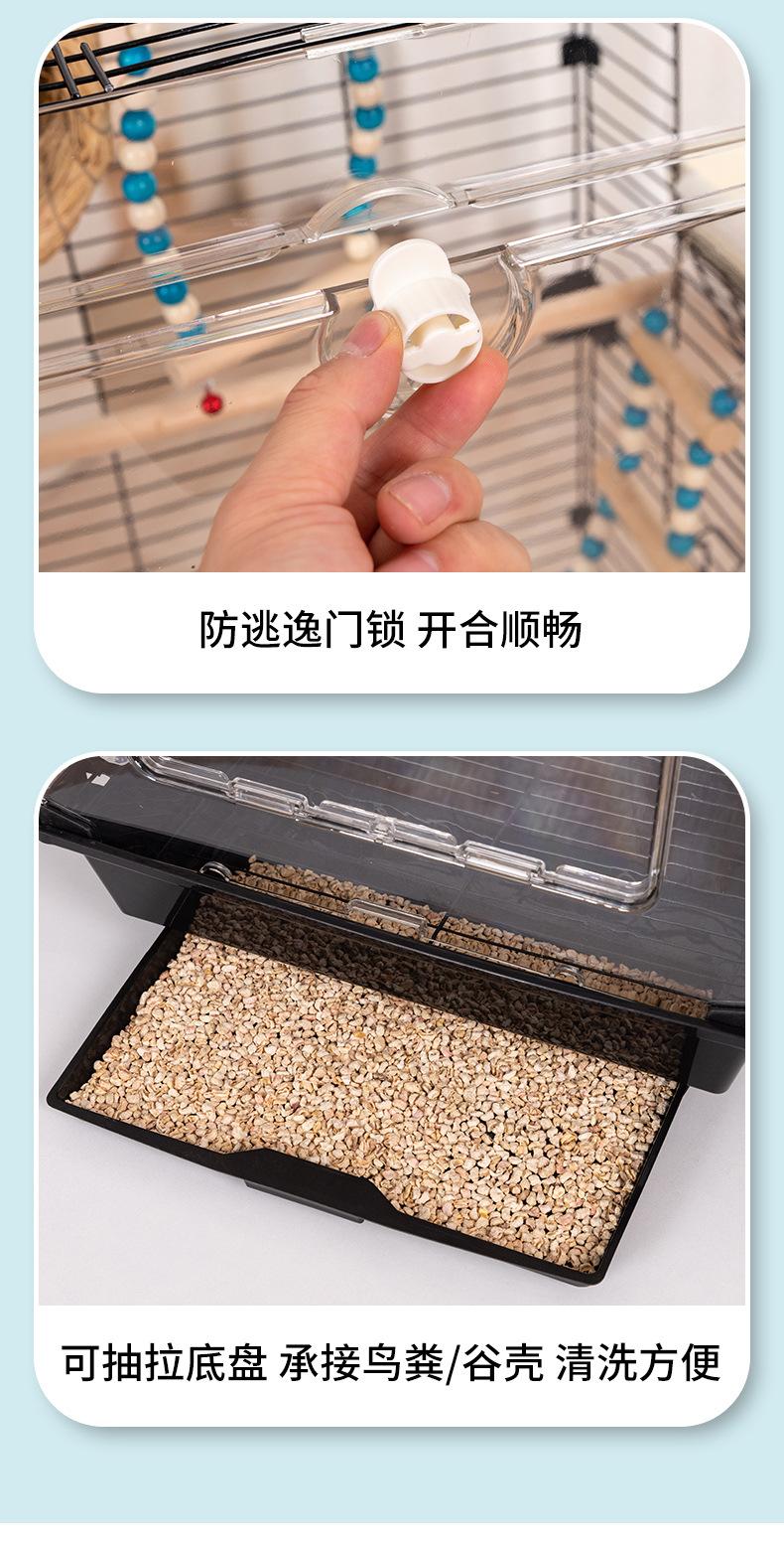 Gaiola Ornamental para Pássaros, Gaiola para Papagaio, Grande e Pequena, com Gaiola Acrílica Elevada para Pássaros, Vila Doméstica, Espaço Amplo, Conjunto Completo