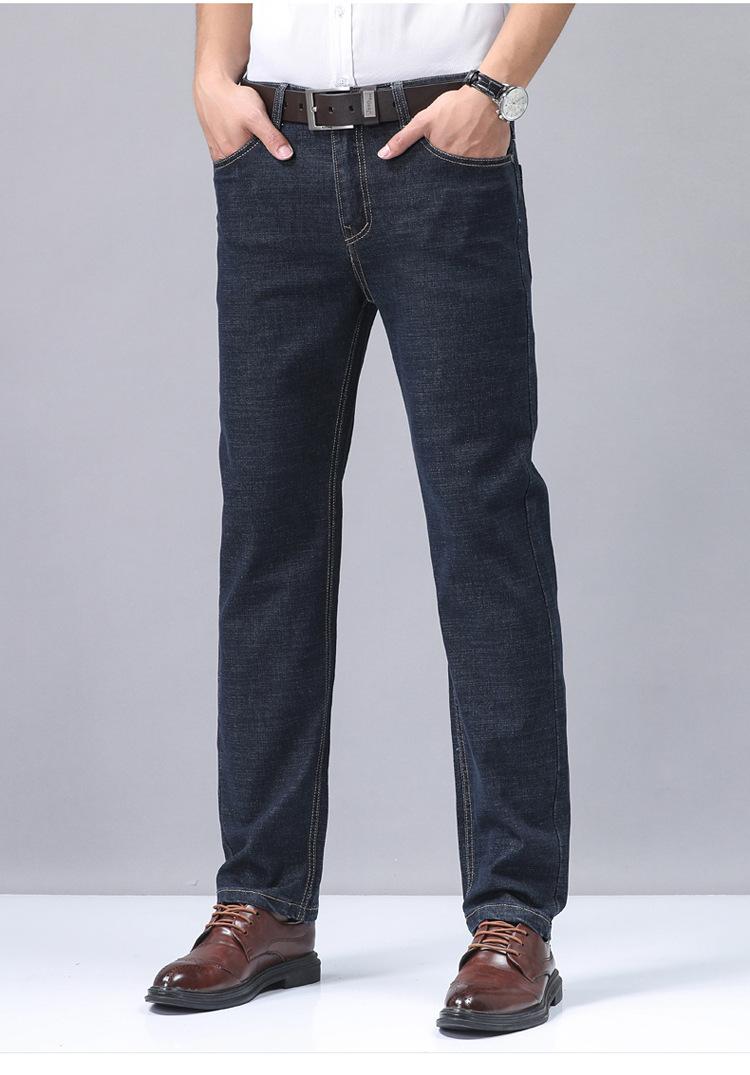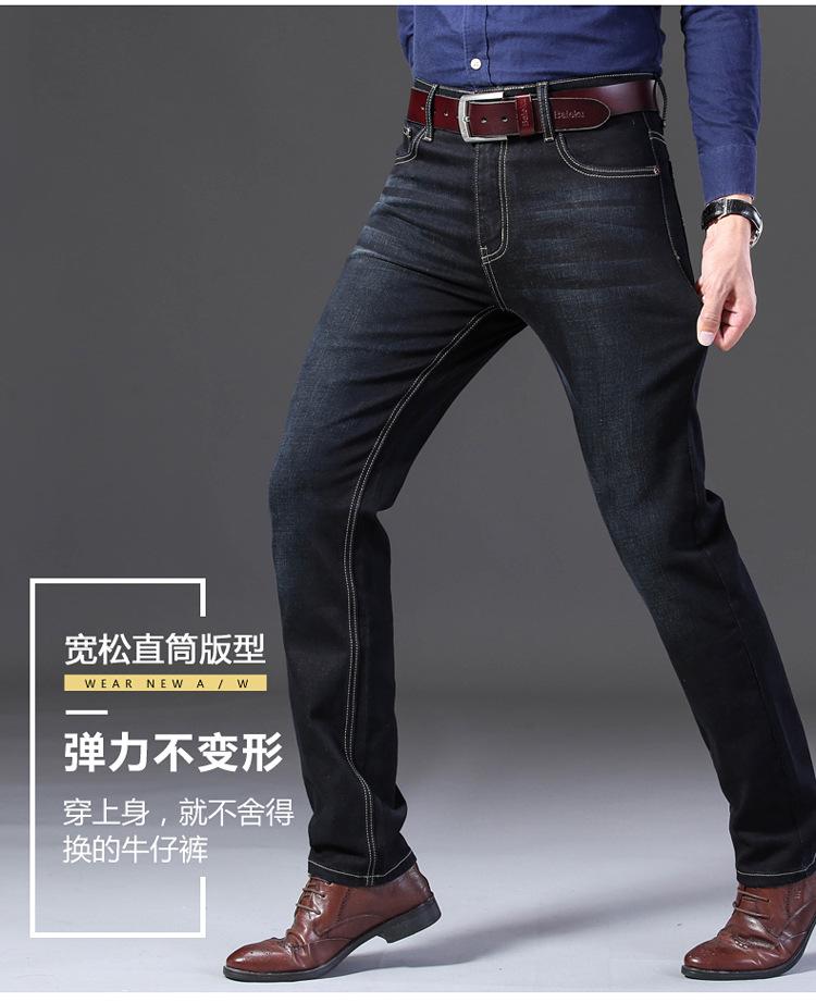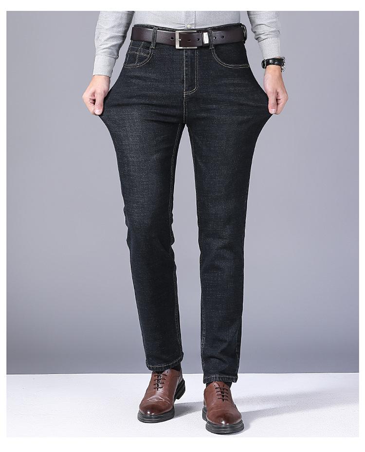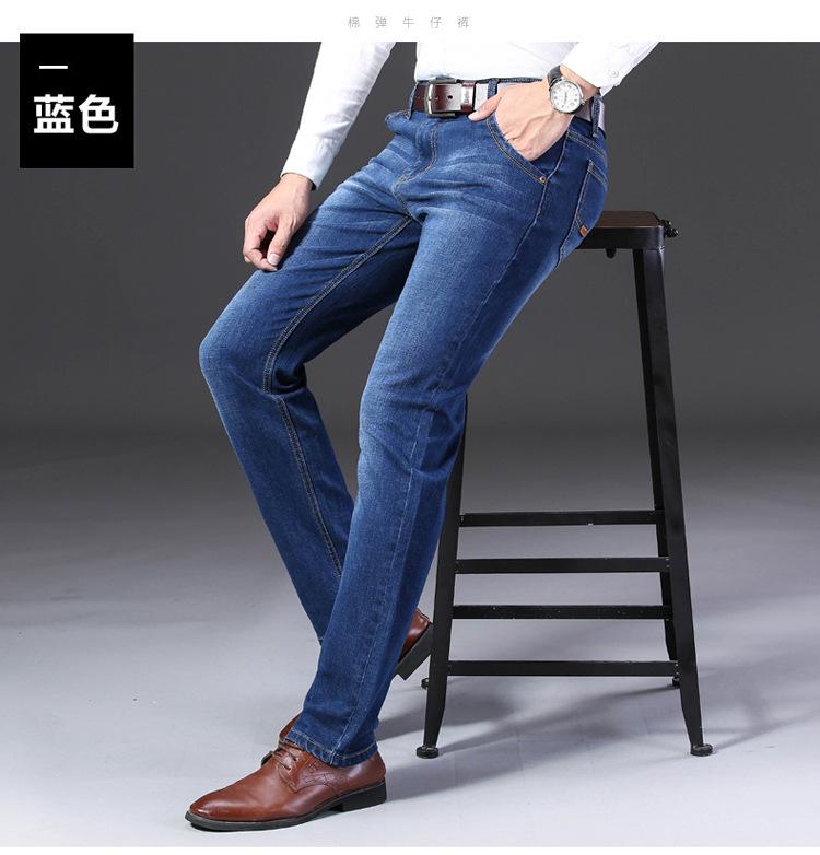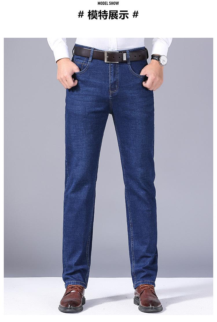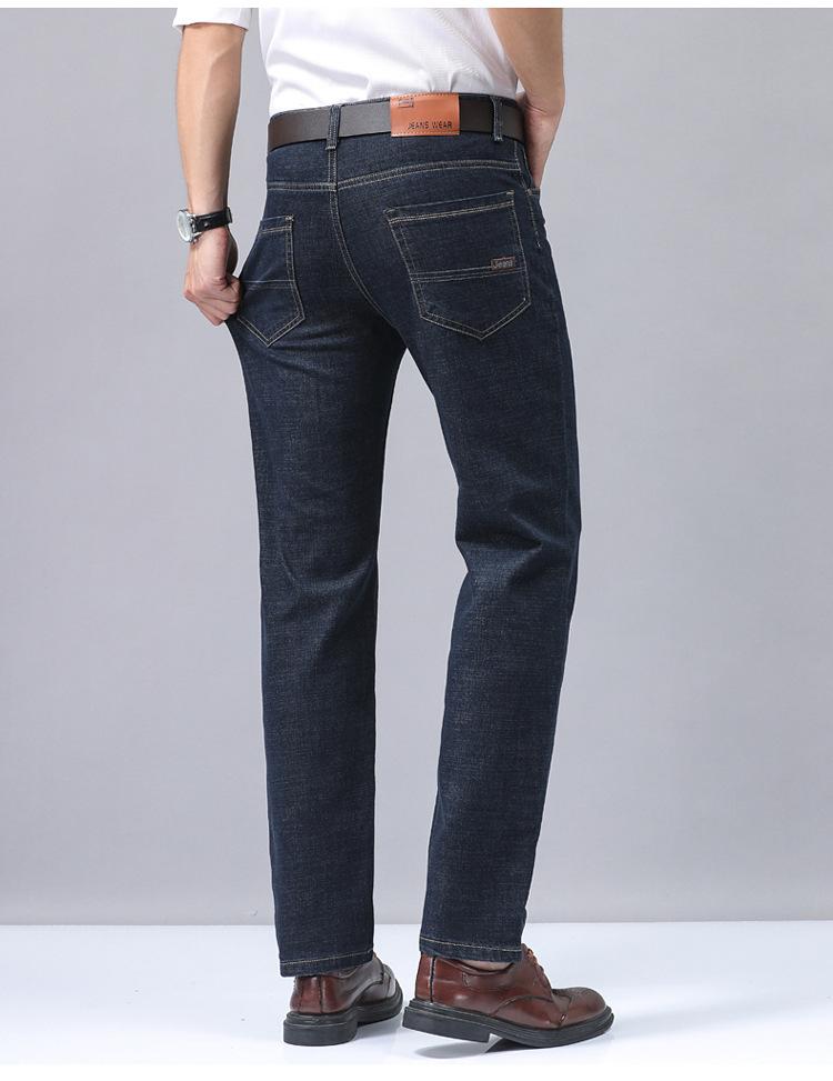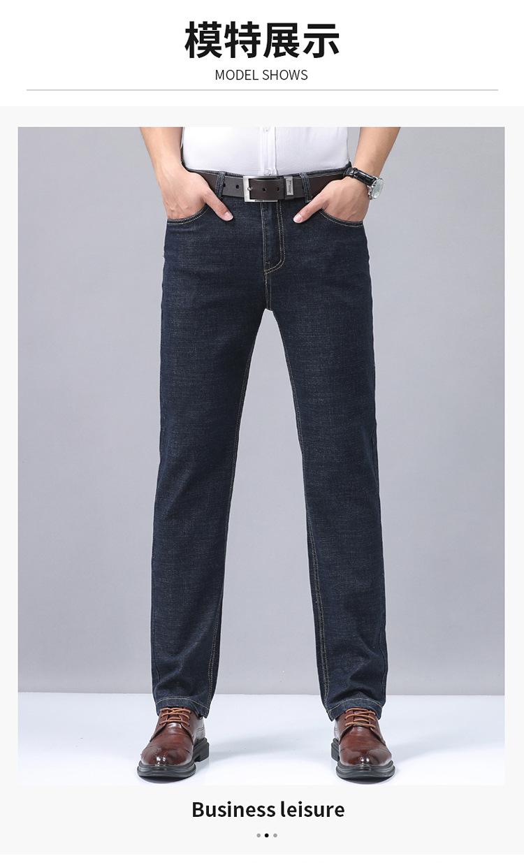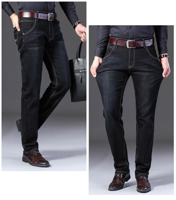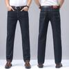 Calças jeans de trabalho de primavera masculinas retas e soltas, calças compridas casuais de negócios elásticas de meia-idade para pais, primavera e outono