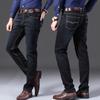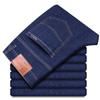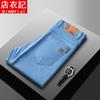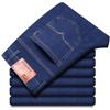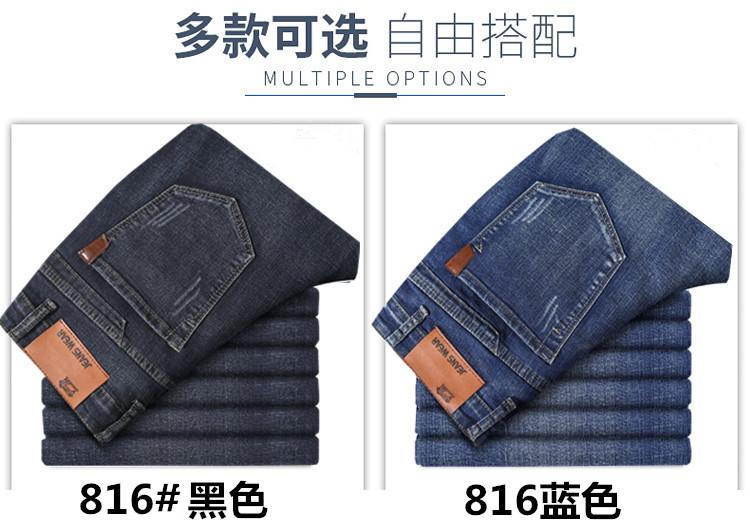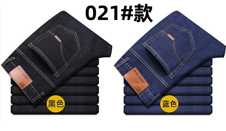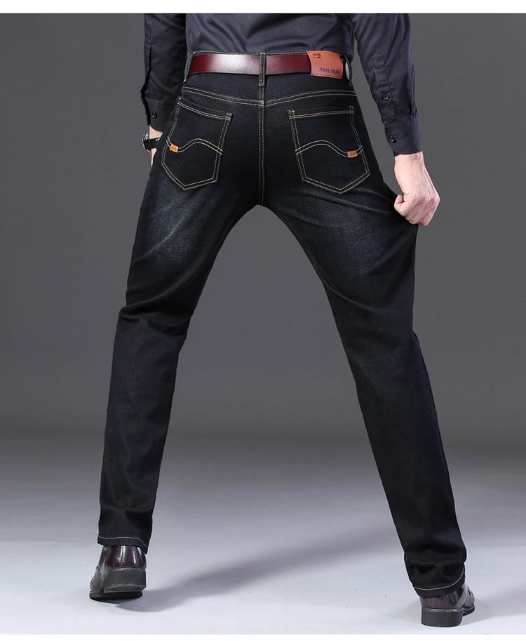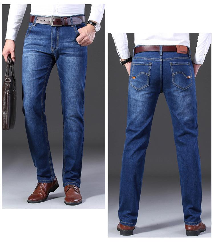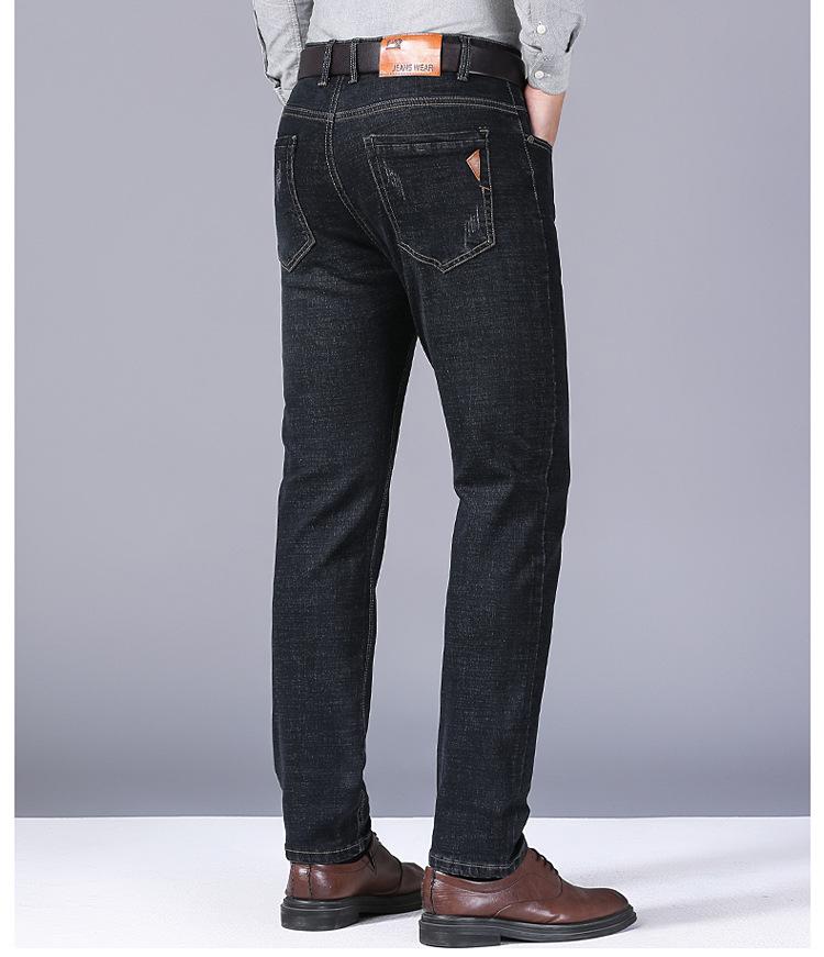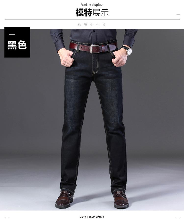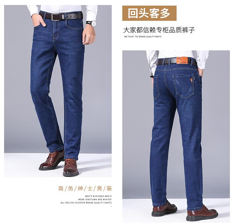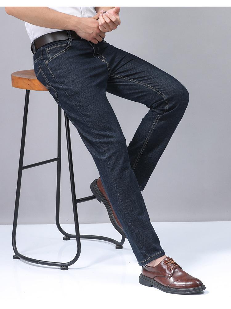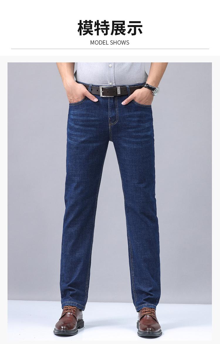 Calças jeans de trabalho de primavera masculinas retas e soltas, calças compridas casuais de negócios elásticas de meia-idade para pais, primavera e outono