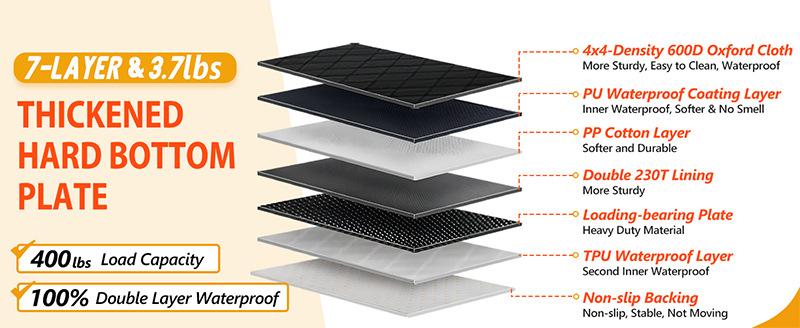 Material: Tecido Oxford 600d + algodão pp + forro 210d + placa + forro 210d com plástico gotejador