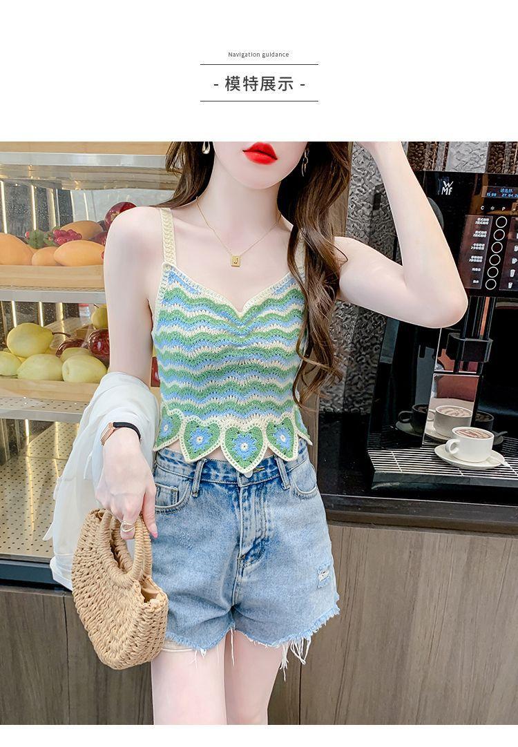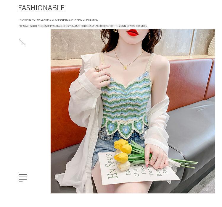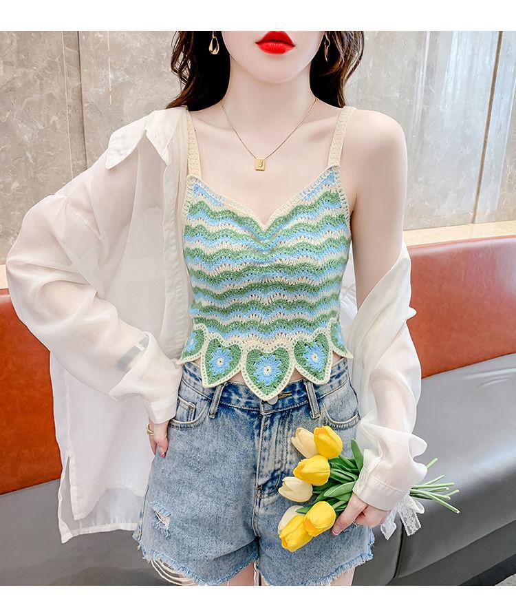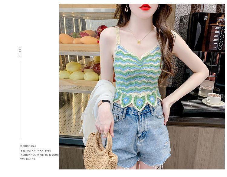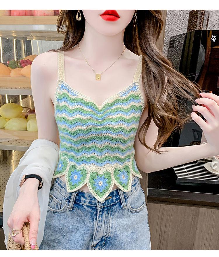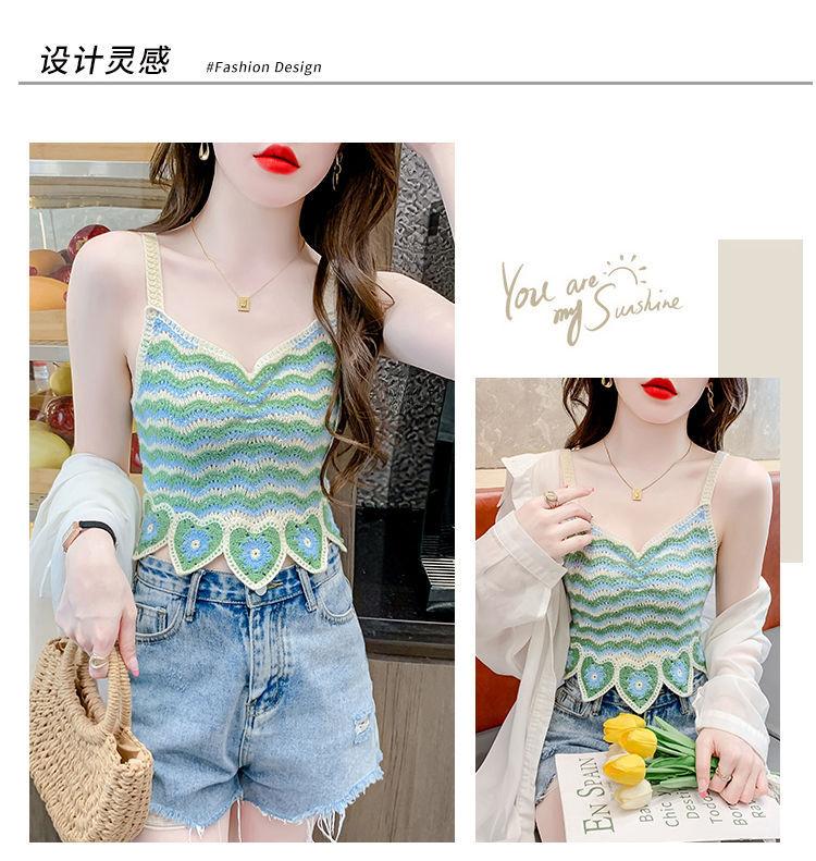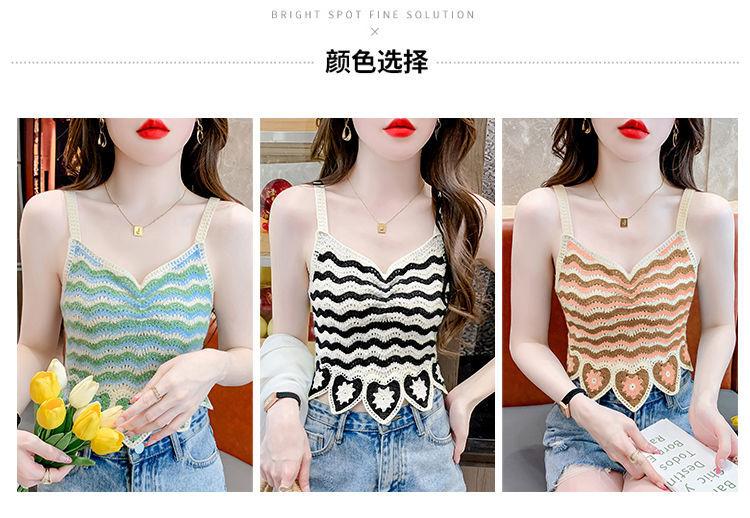 Compre Desejo Puro Camisole Francês Doce e Picante para Mulheres com Top Tricotado Curto Sem Mangas Vazado de Verão para Mulheres no Verão no atacado no Joom.pro