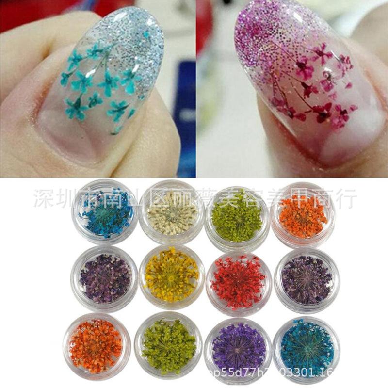Arte de unha 12 cores flor seca flor seca grande flor seca pequena flor seca real 12 cores/conjunto pode ser montado de acordo com os requisitos de atacado
