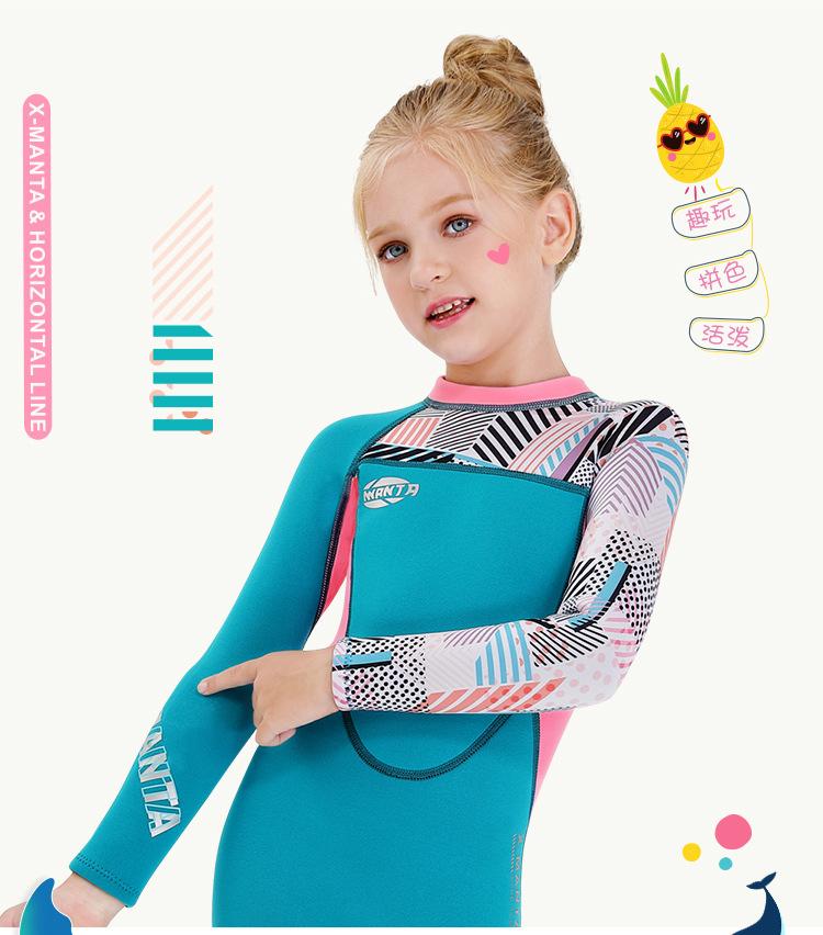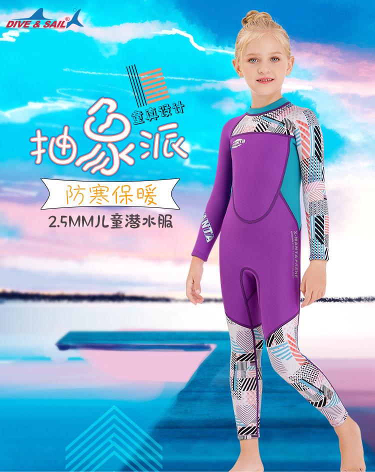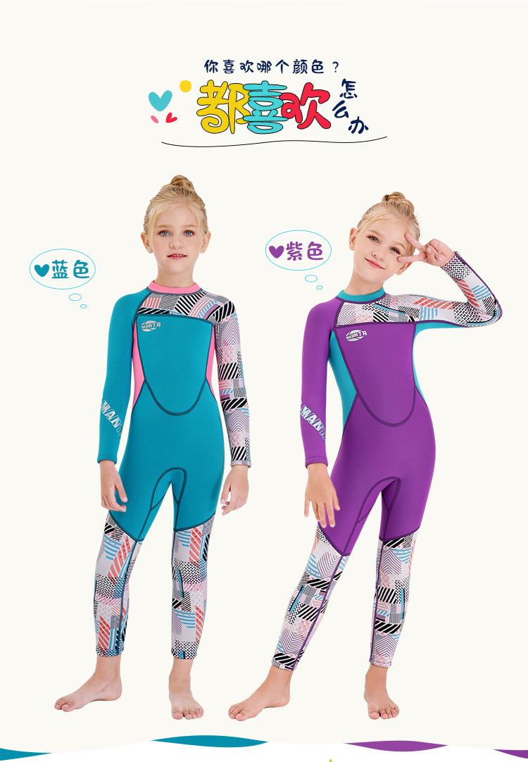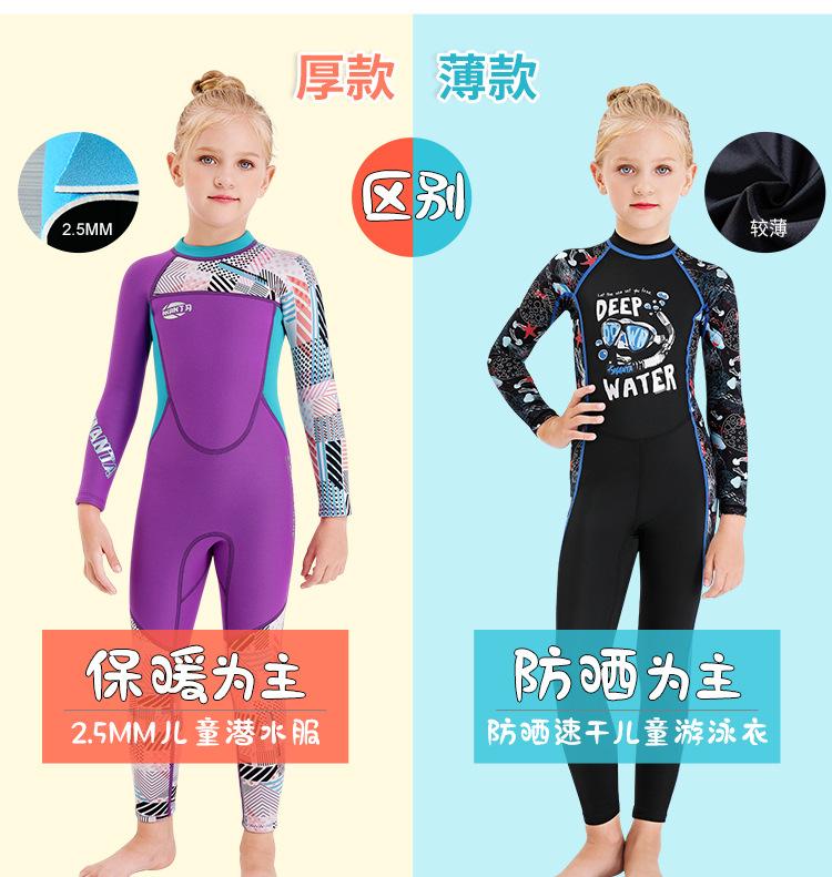 Novo macacão de mergulho infantil 2,5MM peça única roupa de banho quente de manga comprida feminina outono e inverno à prova de frio drifting snorkeling surf