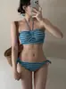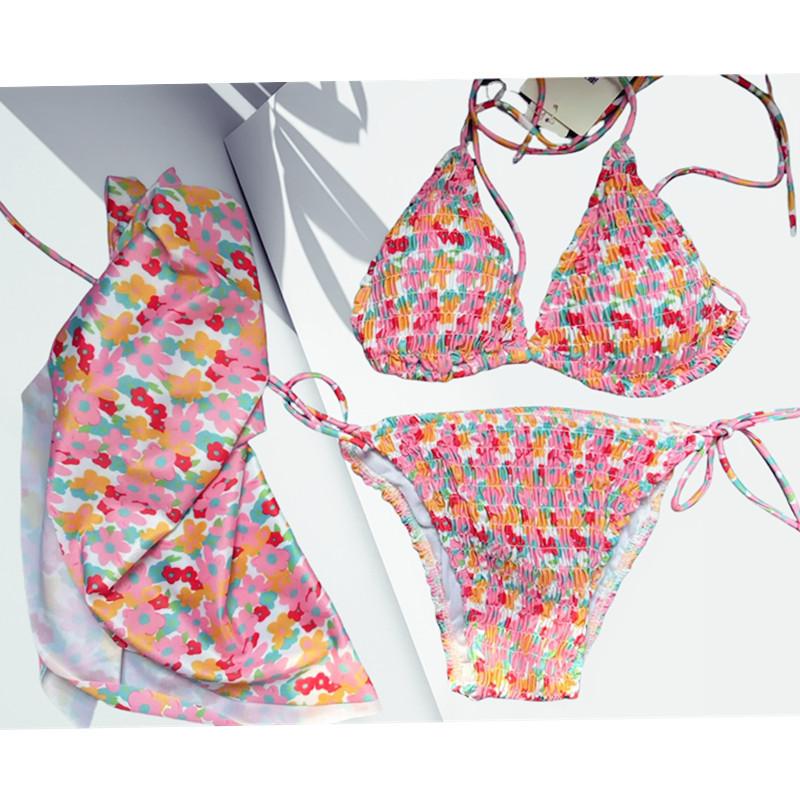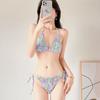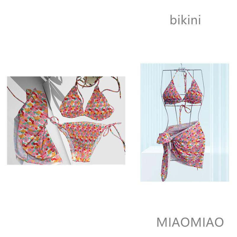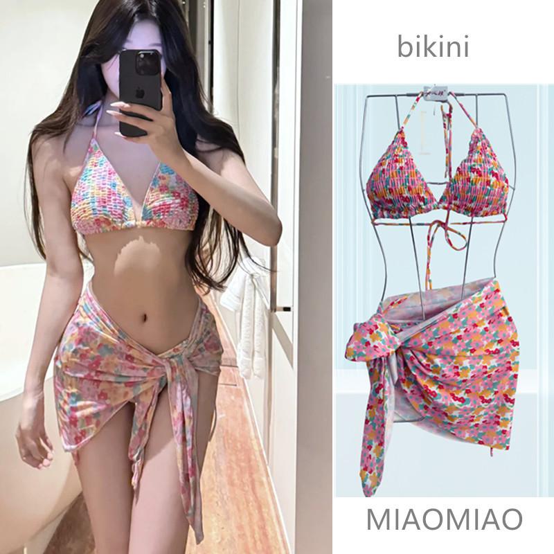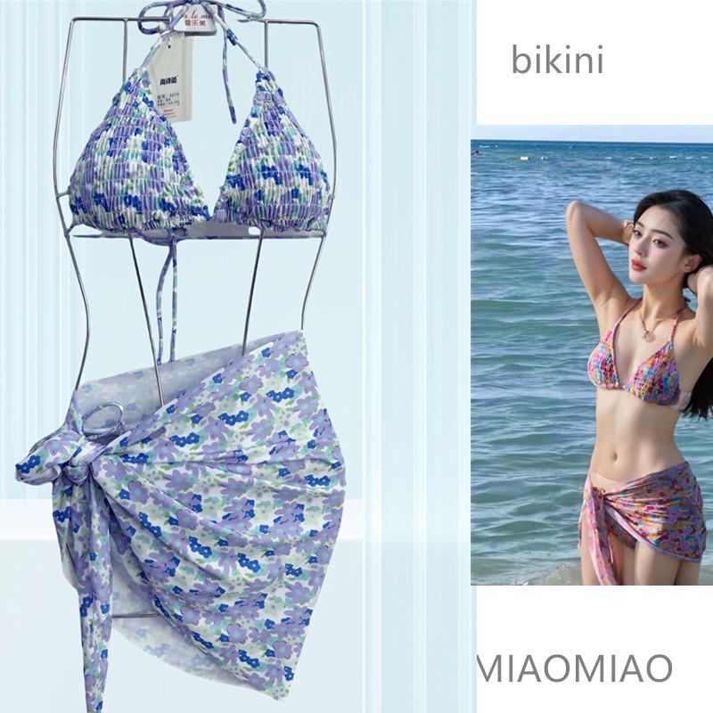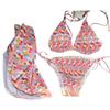 Traje de Banho Feminino para o Verão Biquíni de Praia Colorido Seios Pequenos Biquíni Dividido de Três Pontos Biquíni de Três Ângulos Férias de Águas Termais