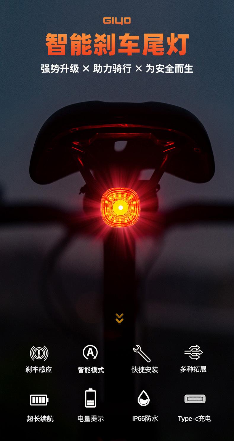 Luz traseira de bicicleta GIYO luz de aviso inteligente de freio luz para bicicleta de estrada mountain bike luz com sensor para bicicleta
