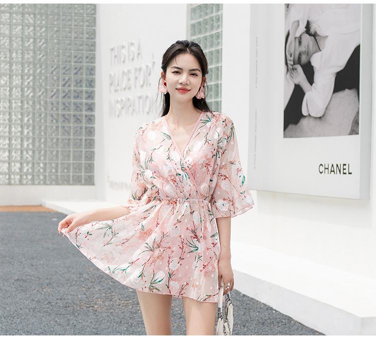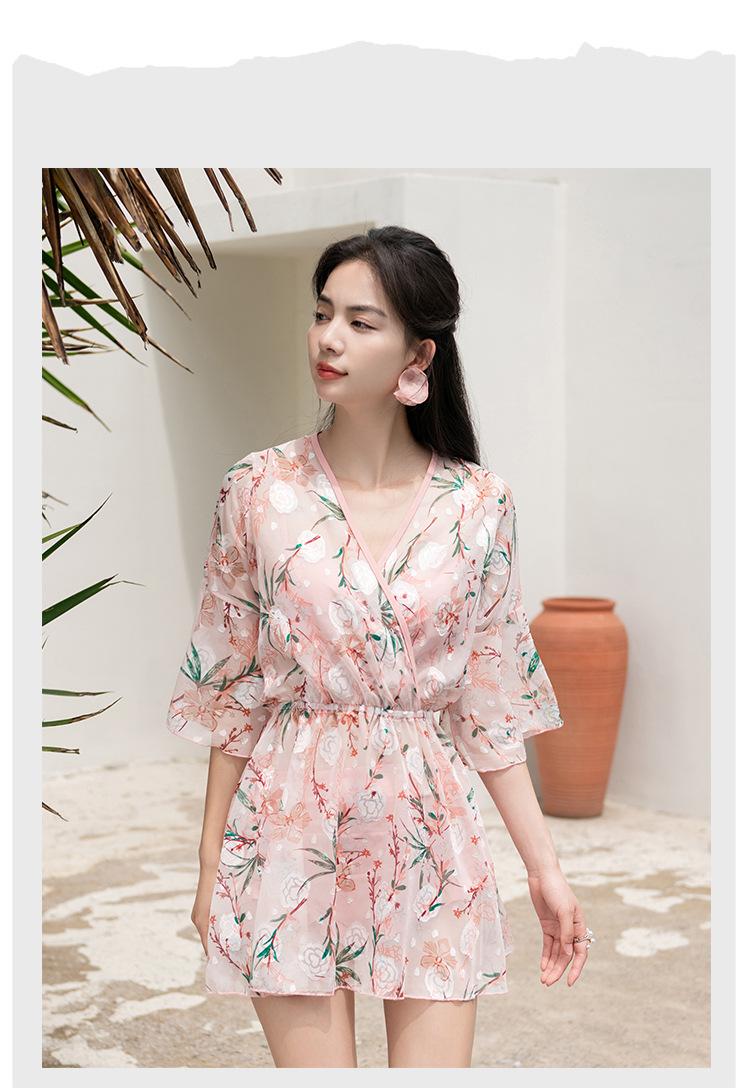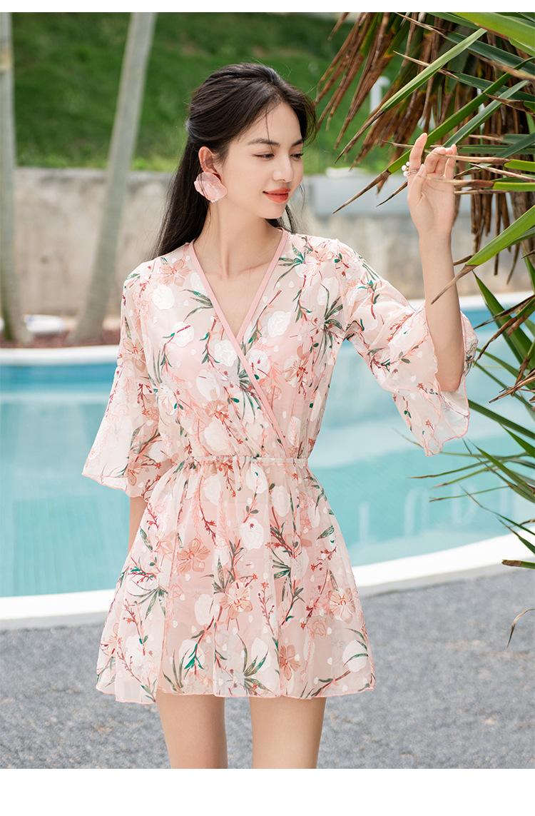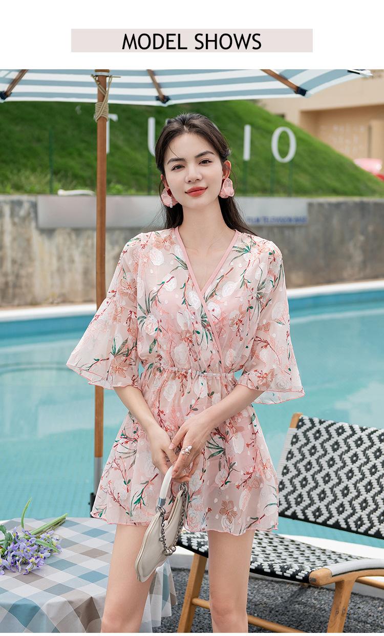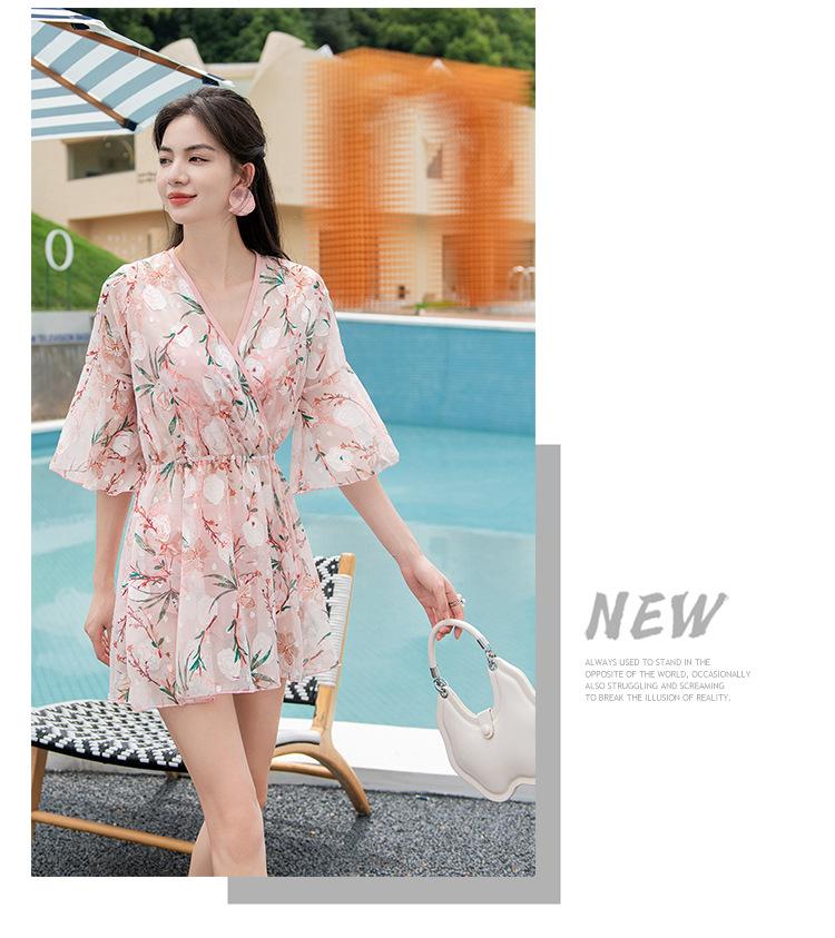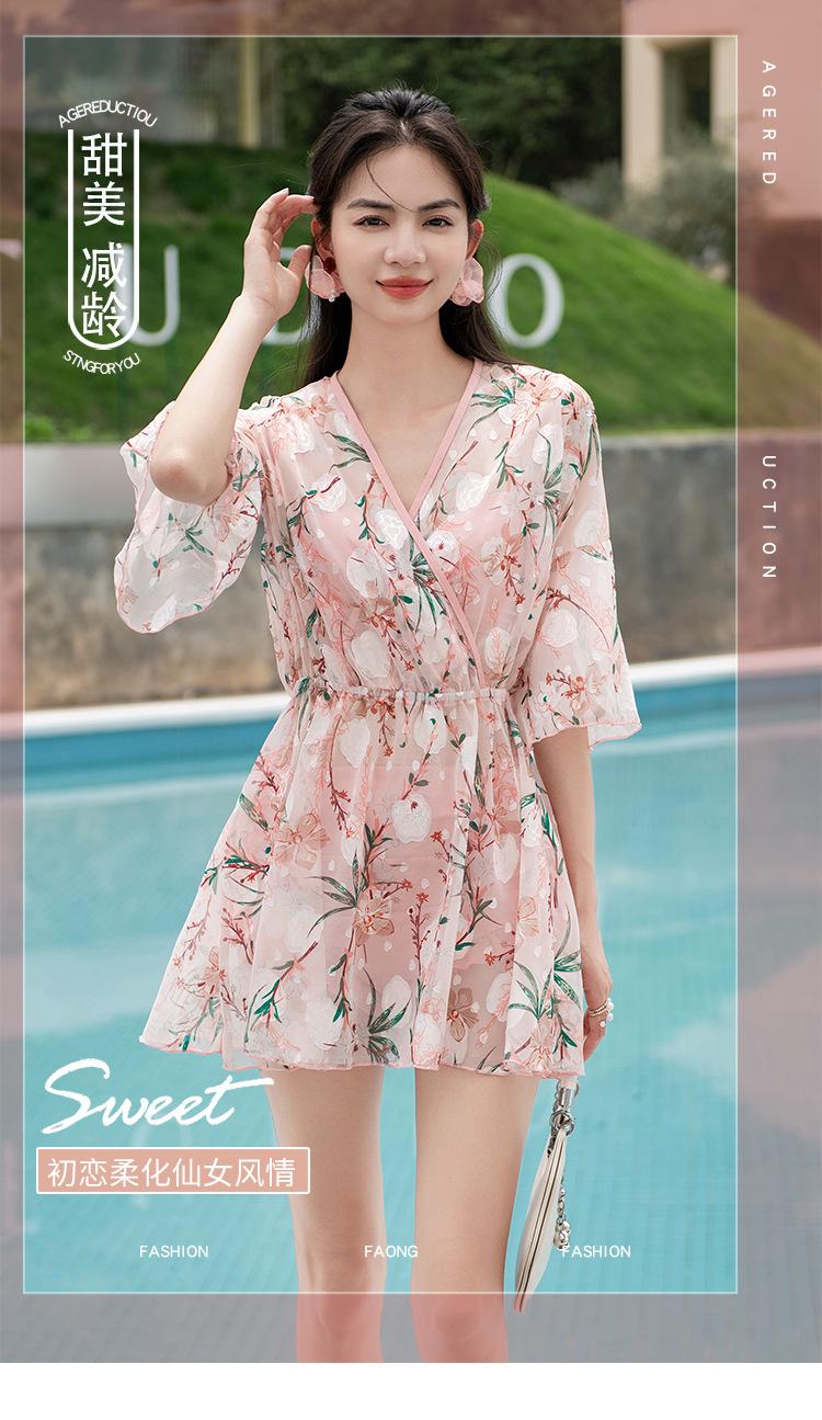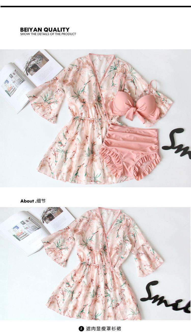 Biquíni Feminino Simples da Moda Estampado com Flores Conservador Cobrindo a Barriga Esportivo Férias Praia Maiô biquíni