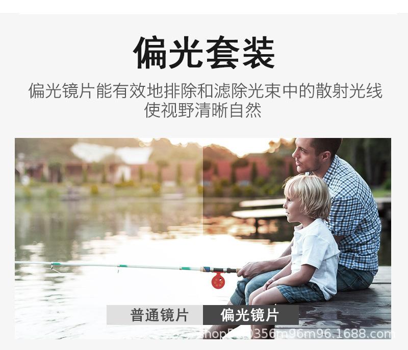 Apenas a lente cinza no conjunto polarizado é polarizada, as outras lentes são feitas de material PC.