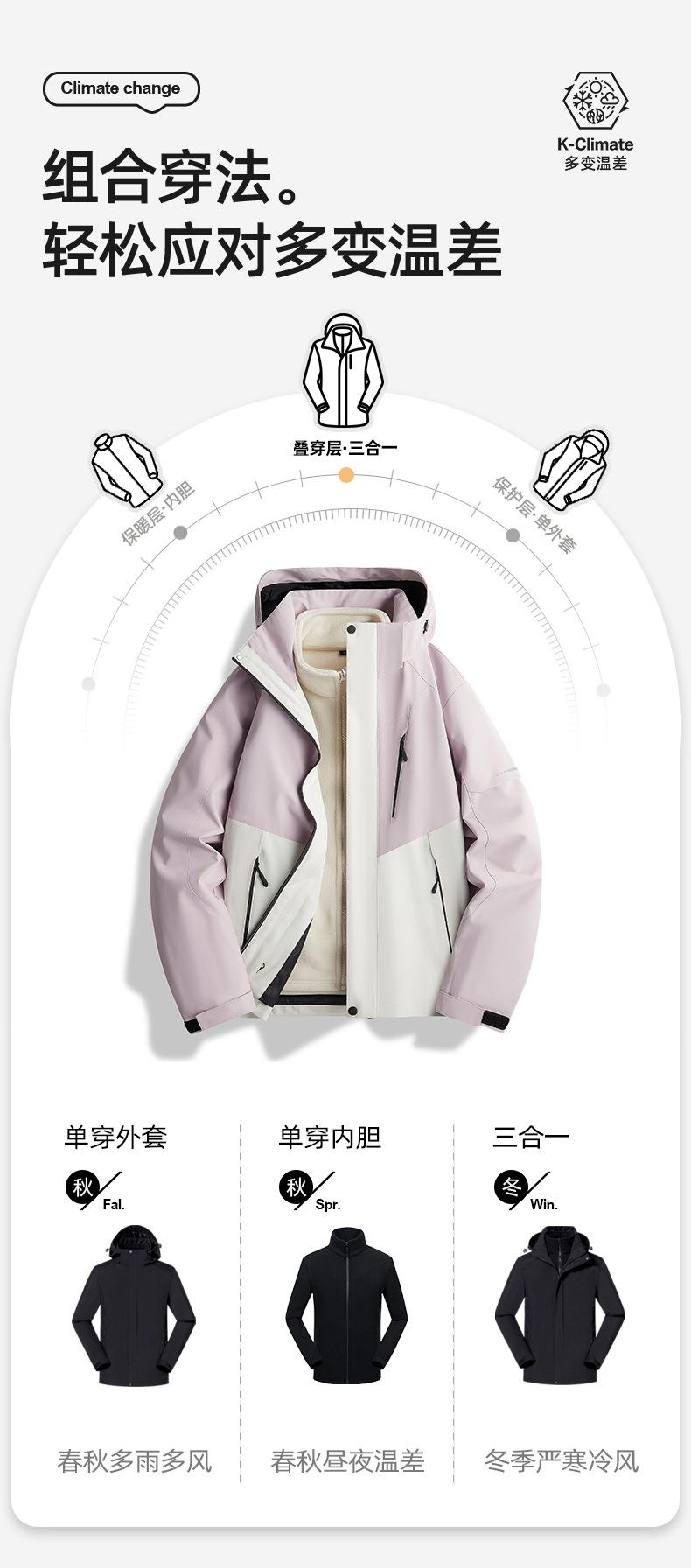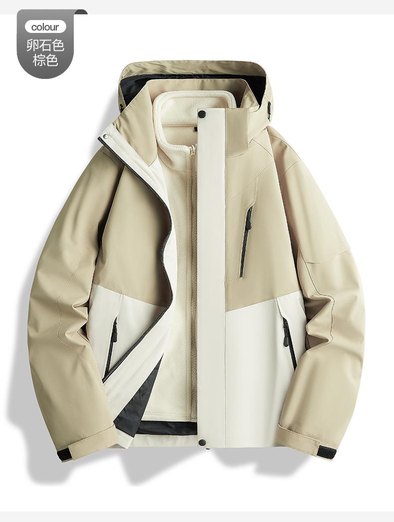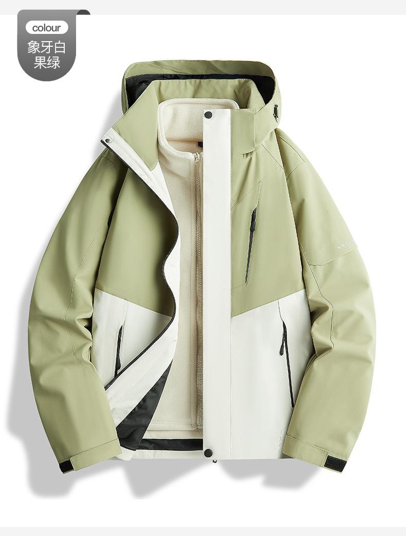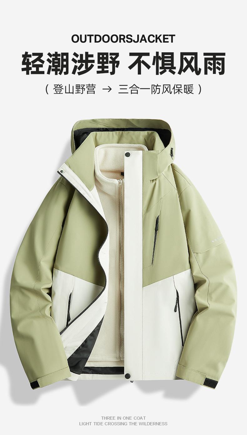 Casaco impermeável para casal, novo estilo três em um, feminino, para atividades ao ar livre, destacável, forro de lã polar, impermeável, resistente ao frio, roupa de montanhismo