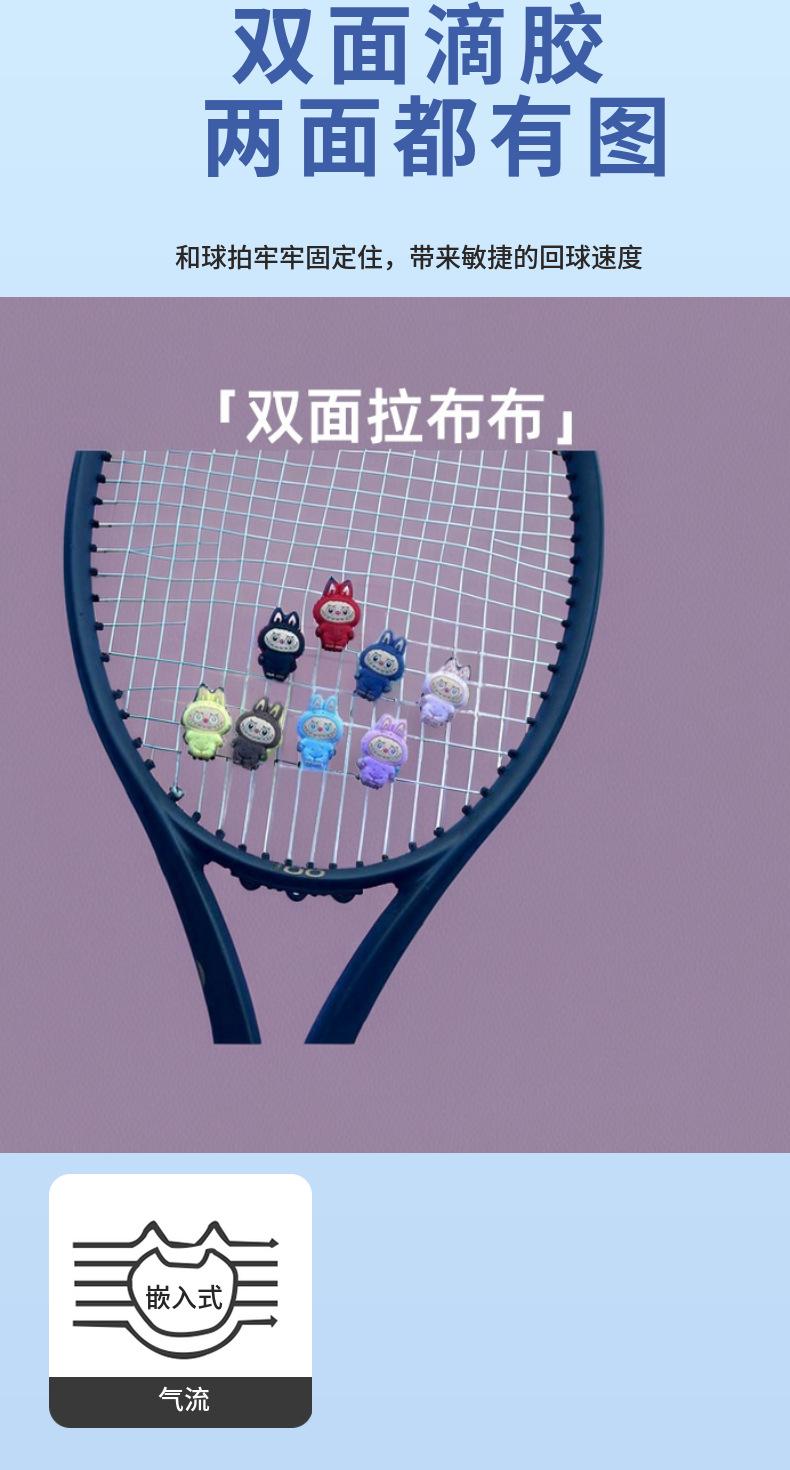 Adesivo Dupla Face Labubu Amortecedor Silicone Raquete de Tênis Amortecedor Desenho Animado Labubu Absorvente de Choque Acessórios para Raquete de Tênis