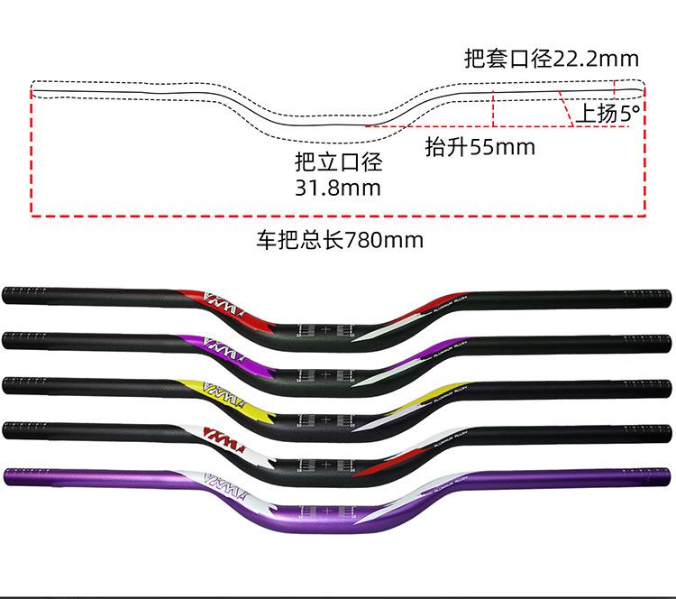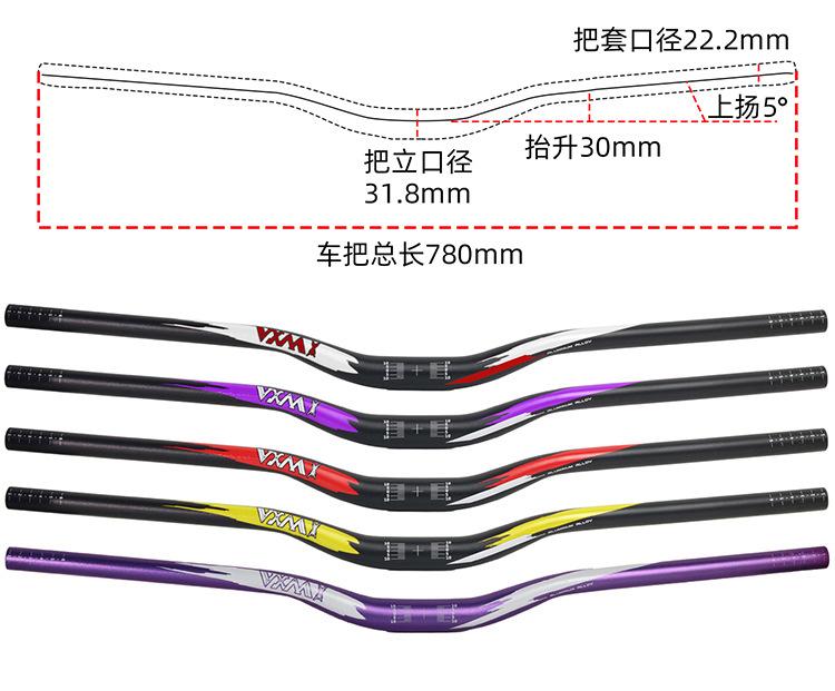 Vxm mountain bike bicycle ultra-light colorful small handlebar 31.8 caliber bright 780mm handlebar horizontal restoration