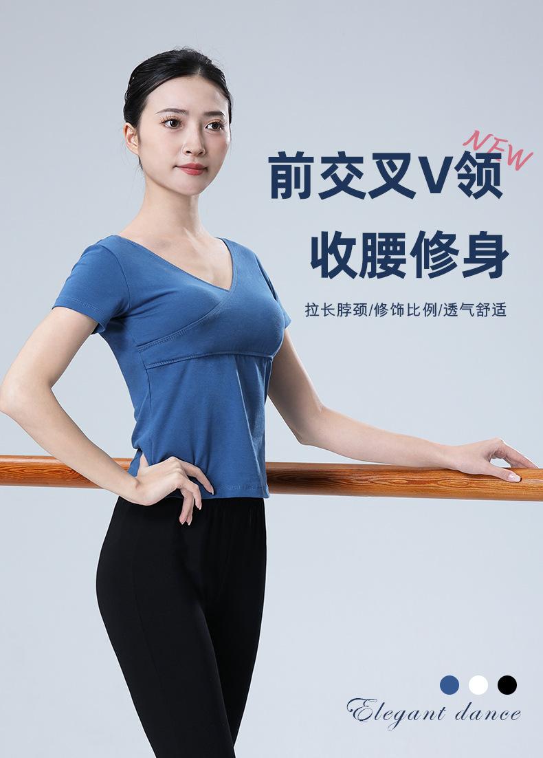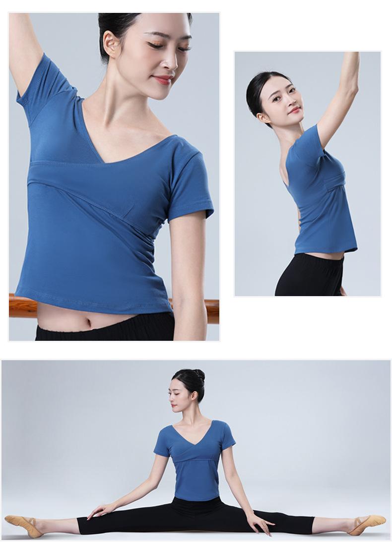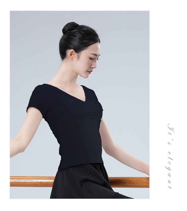 Roupa de Dança Arte Teste Dança Moderna Roupa de Prática Profissional Top Roupa de Dança Clássica Chinesa Feminina Manga Curta Roupa de Ginástica