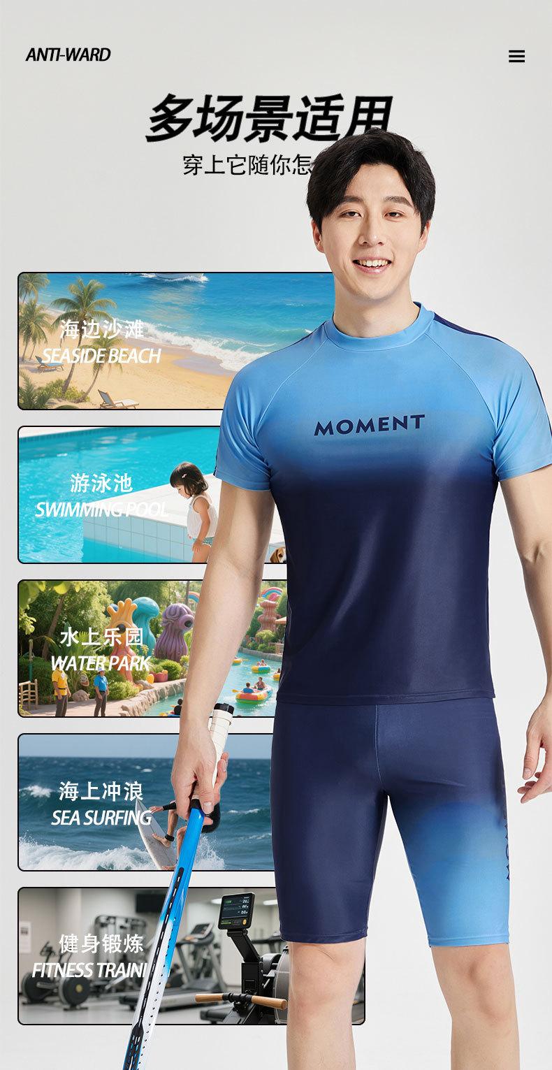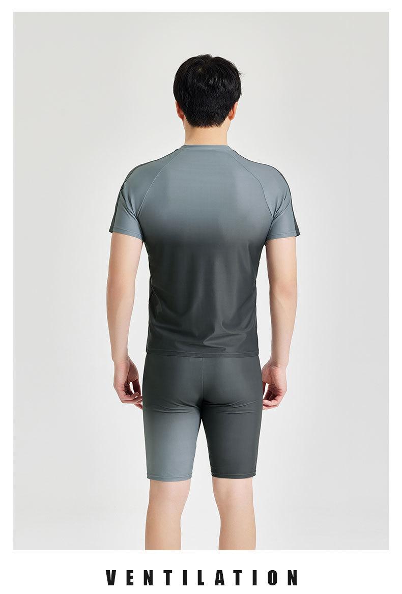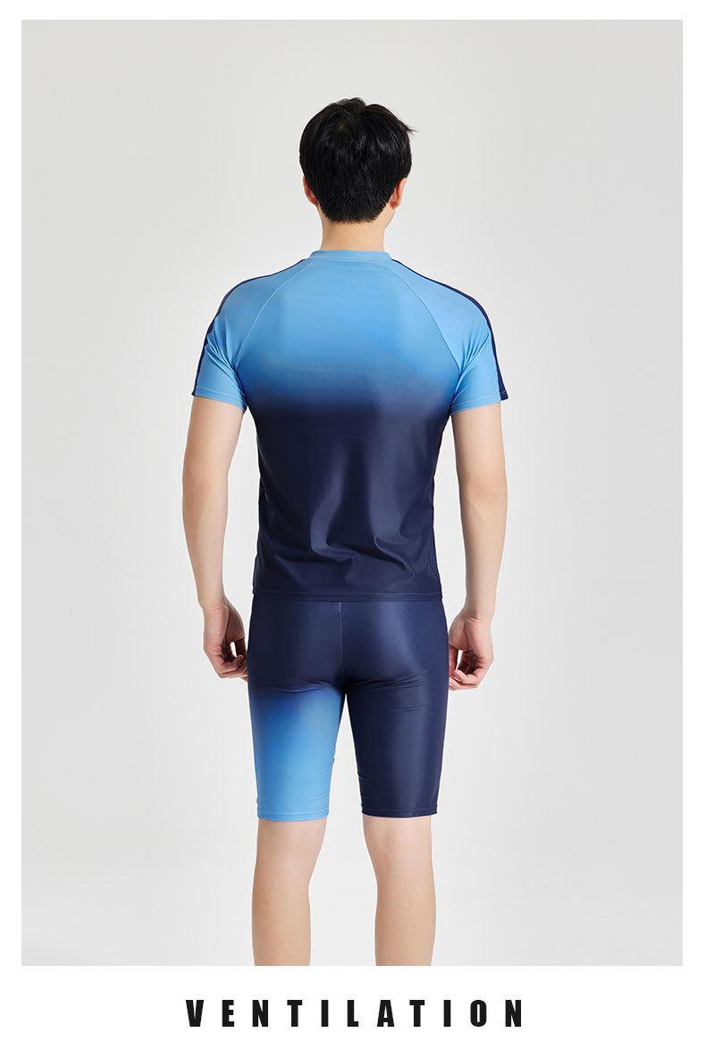 Verão Novo Fato de Banho Masculino Dividido Secagem Rápida Respirável Gradiente Esportivo e Lazer Fato de Banho Conjunto para Férias à Beira-Mar