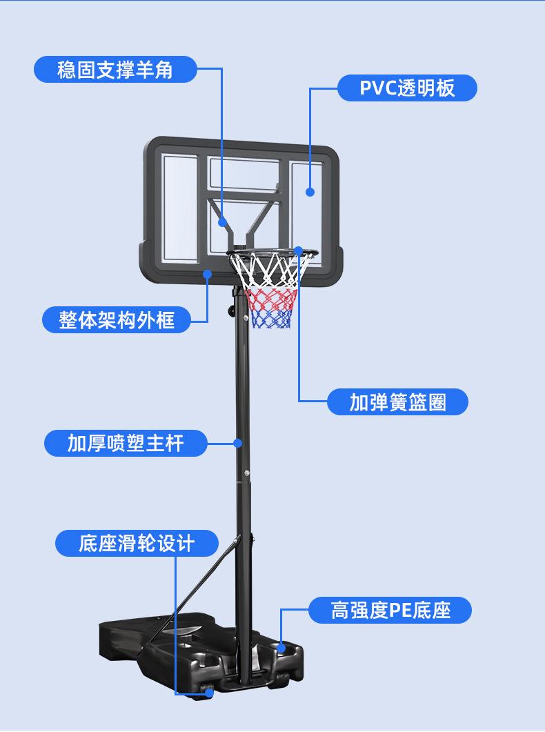 Suporte de Basquete Soball Outdoor Casa Adulto Estrutura Azul Indoor Juvenil e Infantil Suporte de Arremesso Equipamento de Fitness da Moda