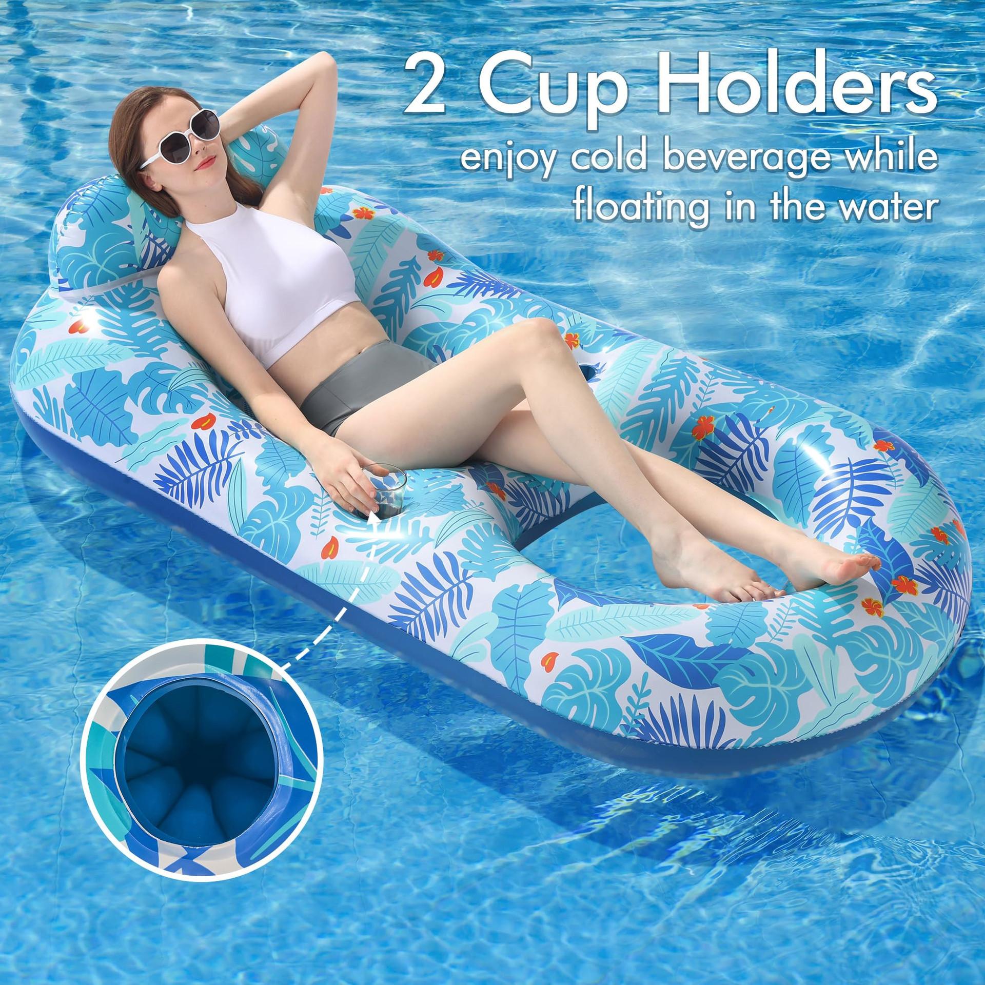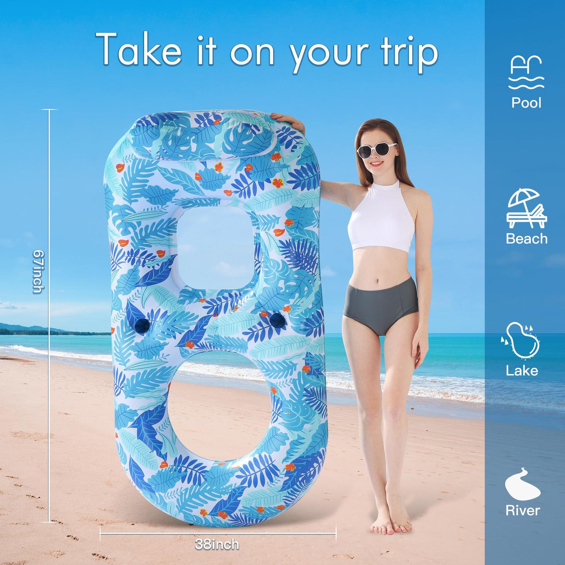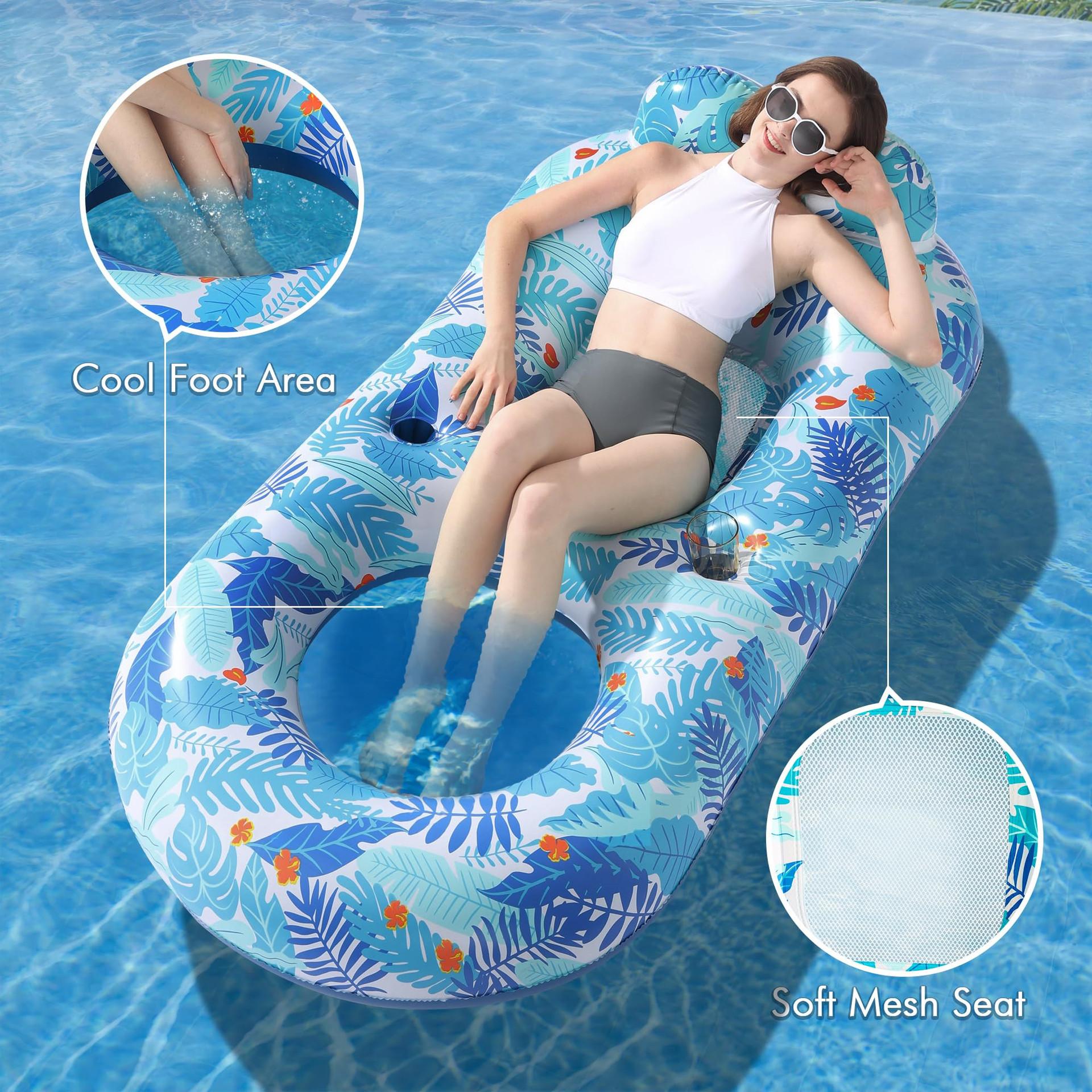 Esguiçadeira de água inflável para exterior, piscina, rede para adultos, pontão flutuante, porta-copos, boia flutuante, anel de assento de malha em PVC