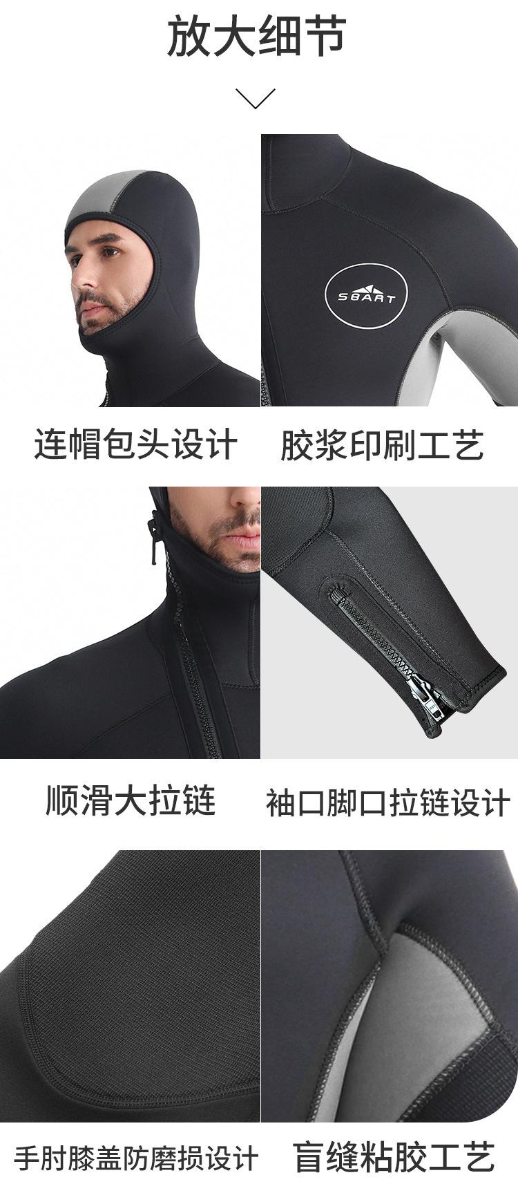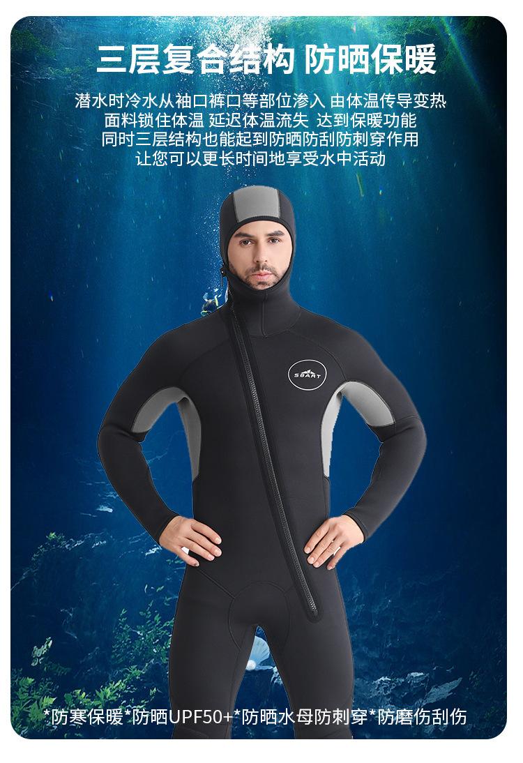 Roupa de Mergulho Sharkbat Masculina Peça Única 5/7mm Forro de Lã Proteção Solar Roupa de Snorkel Roupa Úmida Roupa de Mergulho Espessura Quente