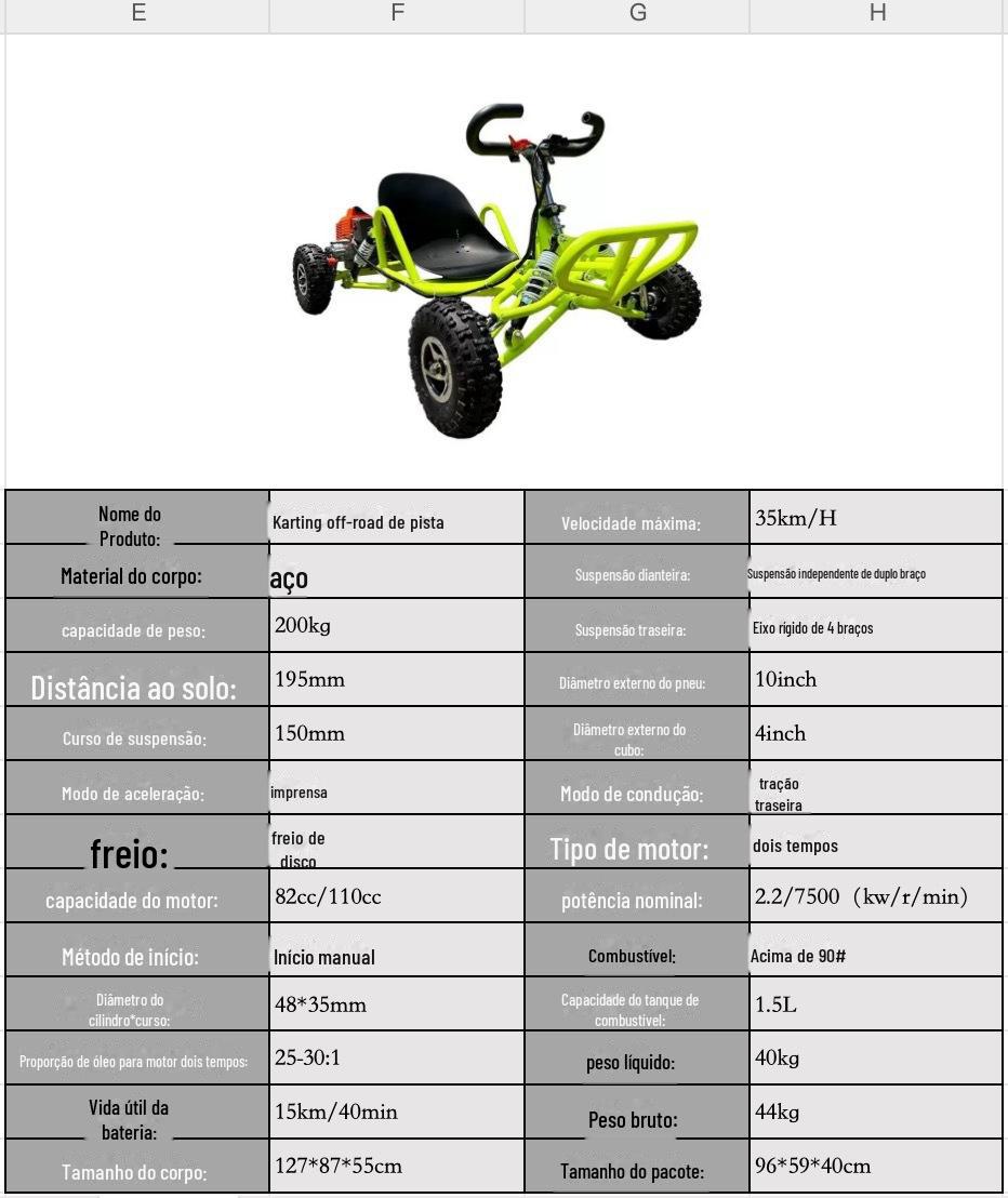 Kart Quatro Rodas Off-Road Atv Esportes Lazer ao Ar Livre Kart de Diversão