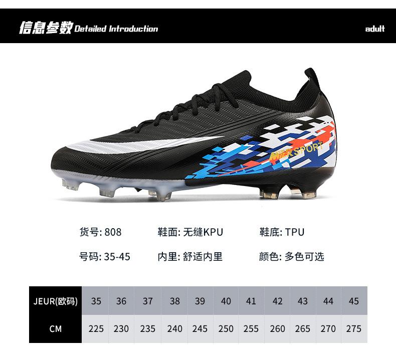 Novos Sapatos de Futebol de Tamanho Grande Transfronteiriço com Cravo Longo, Cano Baixo, para Treino de Jogo Juvenil, Tênis de Futebol Estudantil