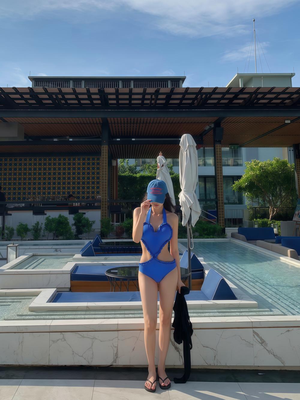 2025 Novo Estilo Puro Desejo Coração Borda Voadora Seios Pequenos Halter Sexy Sem Costas Estilo Puro Desejo Maiô Inteiro Maiô Feminino