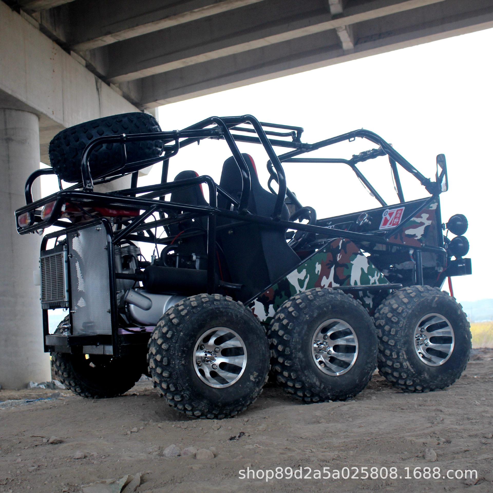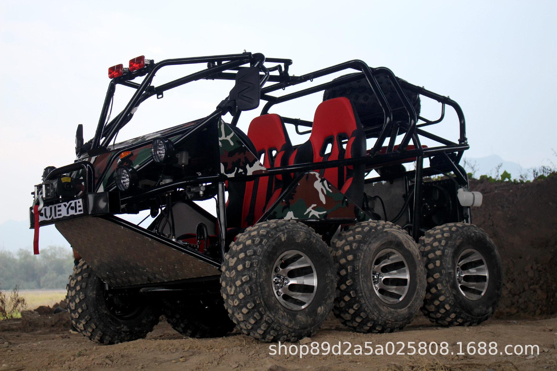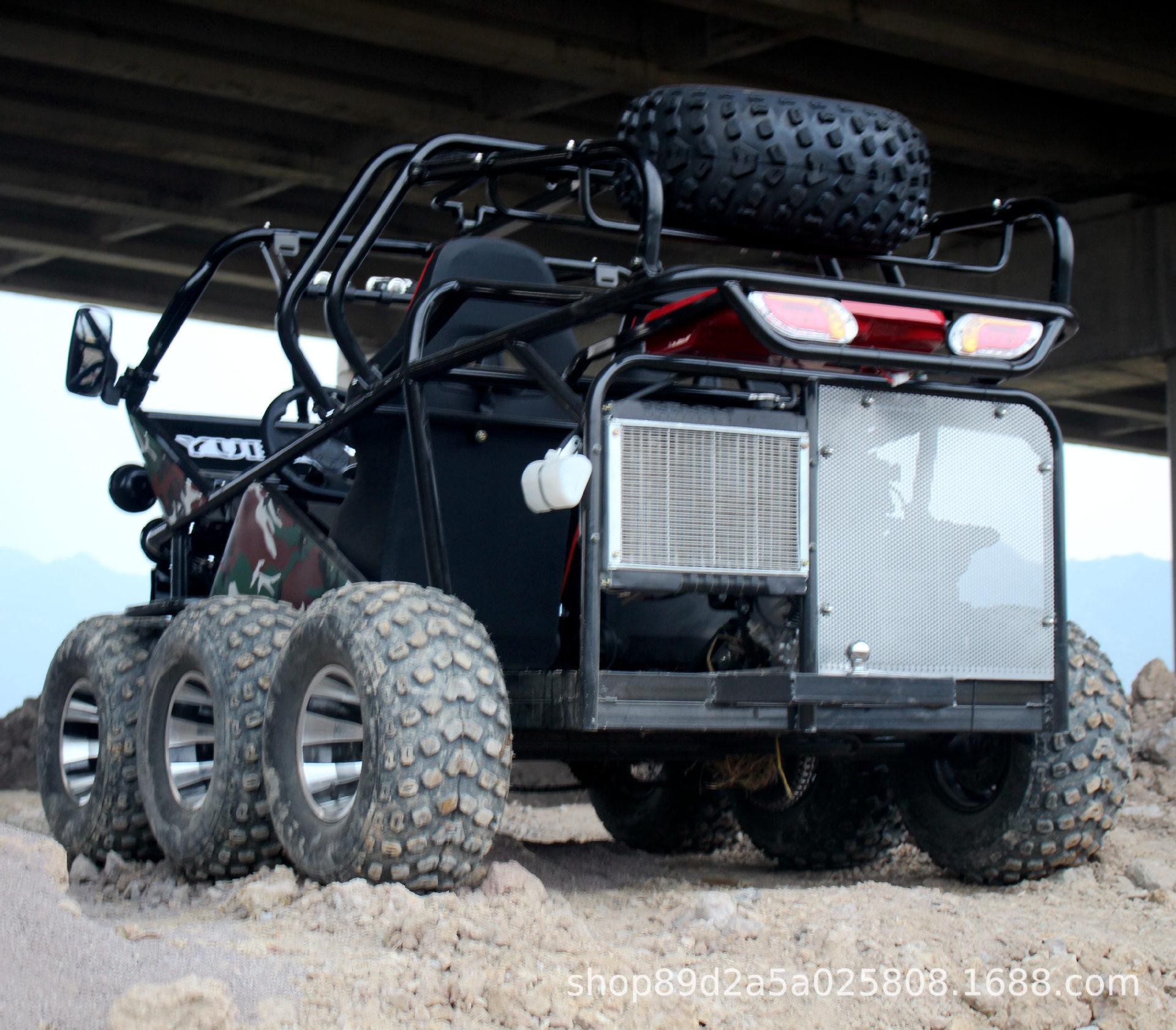 Motor 450CC importado de Taiwan refrigerado a água Transmissão por corrente + eixo Partida elétrica Uma marcha para frente, uma marcha à ré, uma neutra Freio a disco hidráulico nas 6 rodas Pneus off-road de alumínio de 10 polegadas Velocidade máxima 50 Capacidade de carga 500Kg Tanque de combustível 15 litros 6L/100km