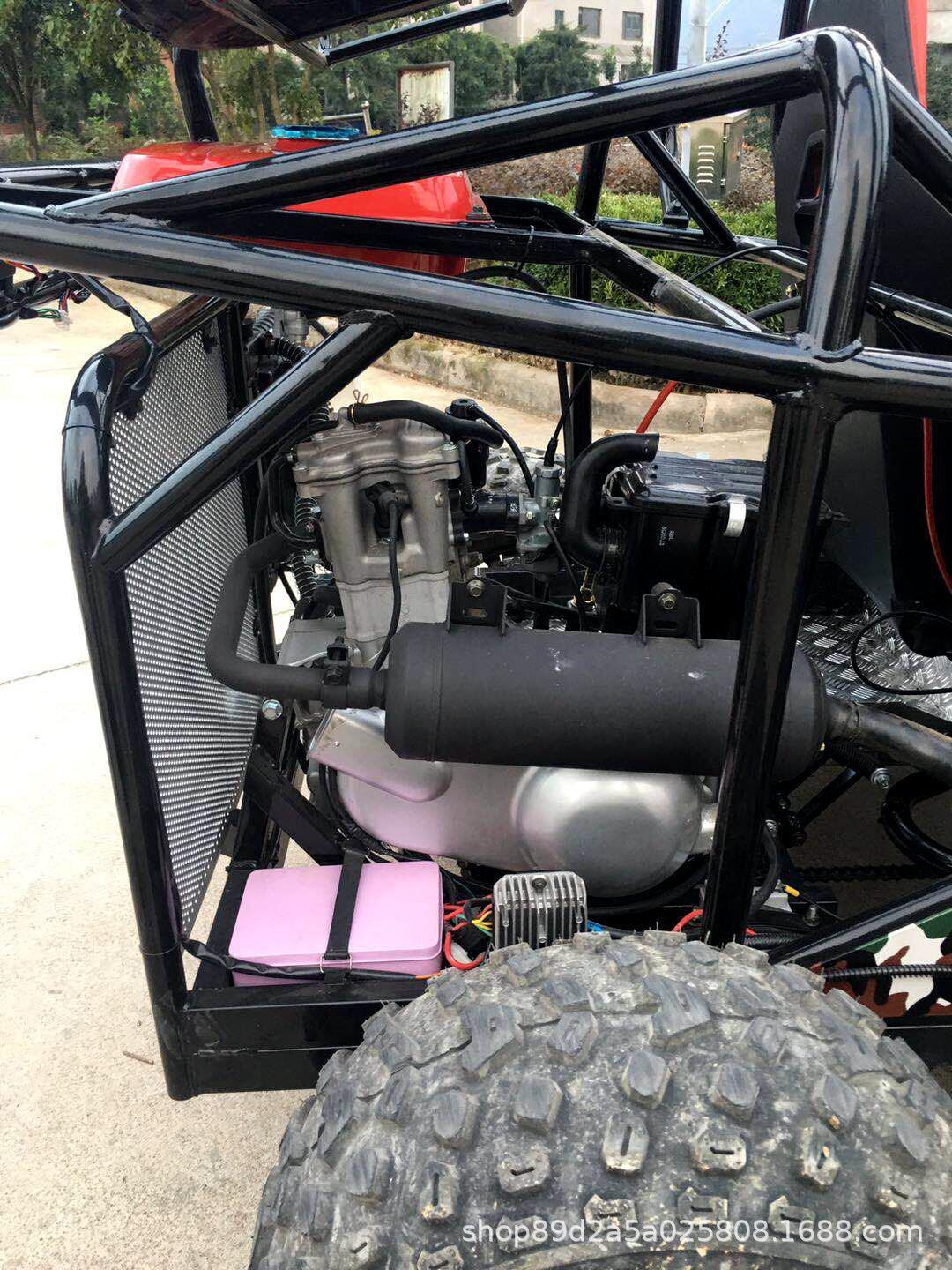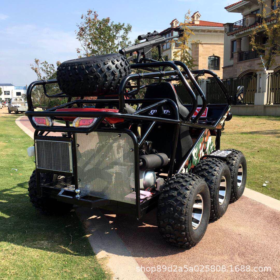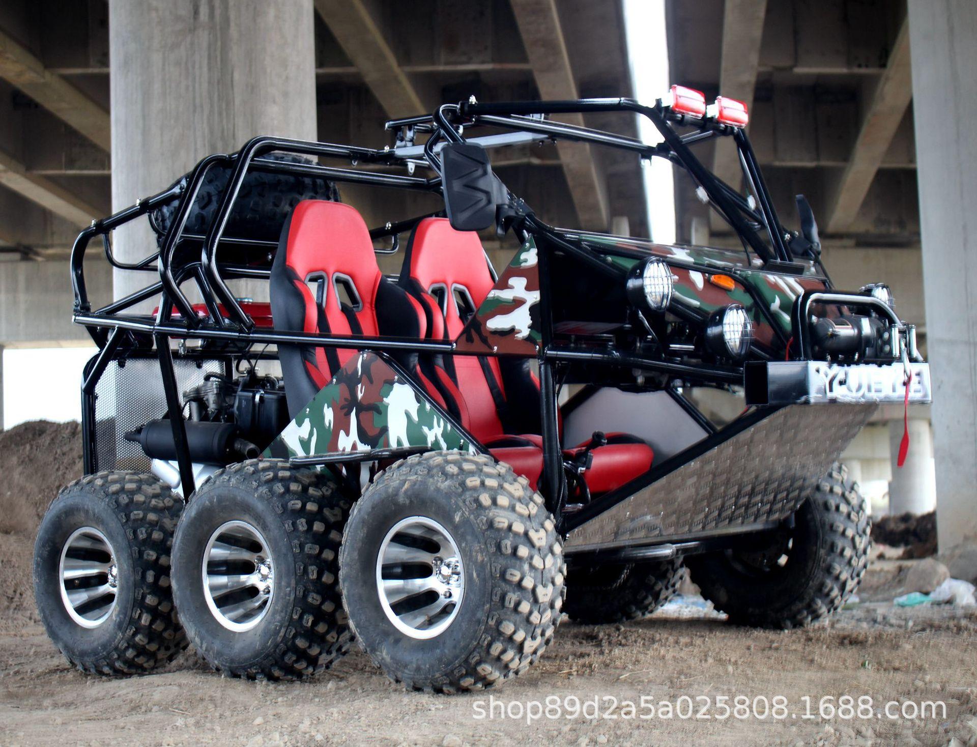 Motor 450CC importado de Taiwan refrigerado a água Transmissão por corrente + eixo Partida elétrica Uma marcha para frente, uma marcha à ré, uma neutra Freio a disco hidráulico nas 6 rodas Pneus off-road de alumínio de 10 polegadas Velocidade máxima 50 Capacidade de carga 500Kg Tanque de combustível 15 litros 6L/100km