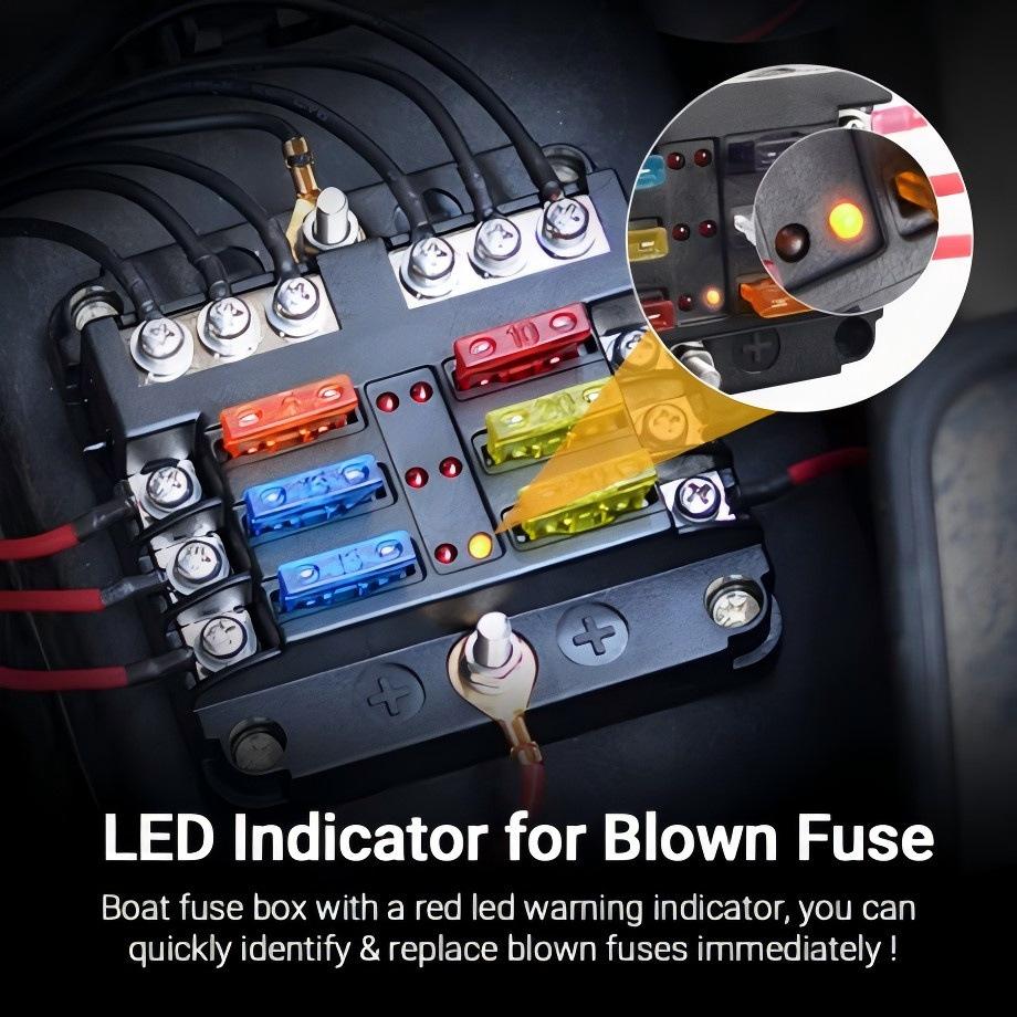 [4] O produto possui um design de luz indicadora LED vermelha, que corresponde aos aparelhos elétricos conectados a cada peça fusível. Quando o fusível for desconectado, a luz vermelha acenderá. Você pode saber imediatamente qual fusível está quebrado, o que facilita o processamento oportuno.