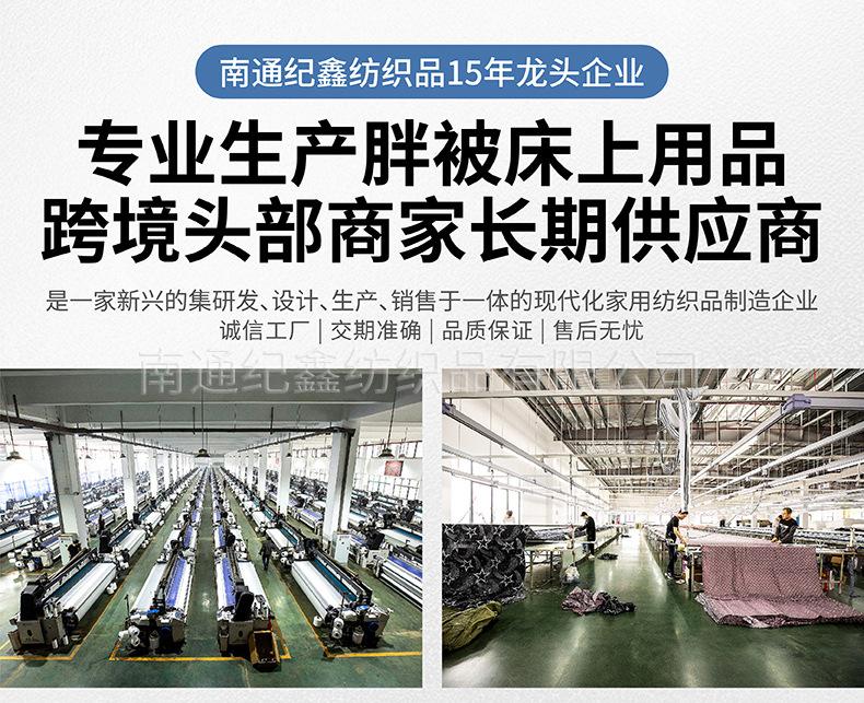 Nantong Jixin Textiles Co., Ltd. concentra-se no campo de roupa de cama, cobrindo a pesquisa e desenvolvimento e vendas de produtos como edredons de inverno, edredons de verão, conjuntos de quatro peças, enchimentos de travesseiro e colchões. Sempre aderimos à qualidade em primeiro lugar, e cada produto incorpora o artesanato e a busca da equipe. A seguir, levarei todos a visitar nossa fábrica.