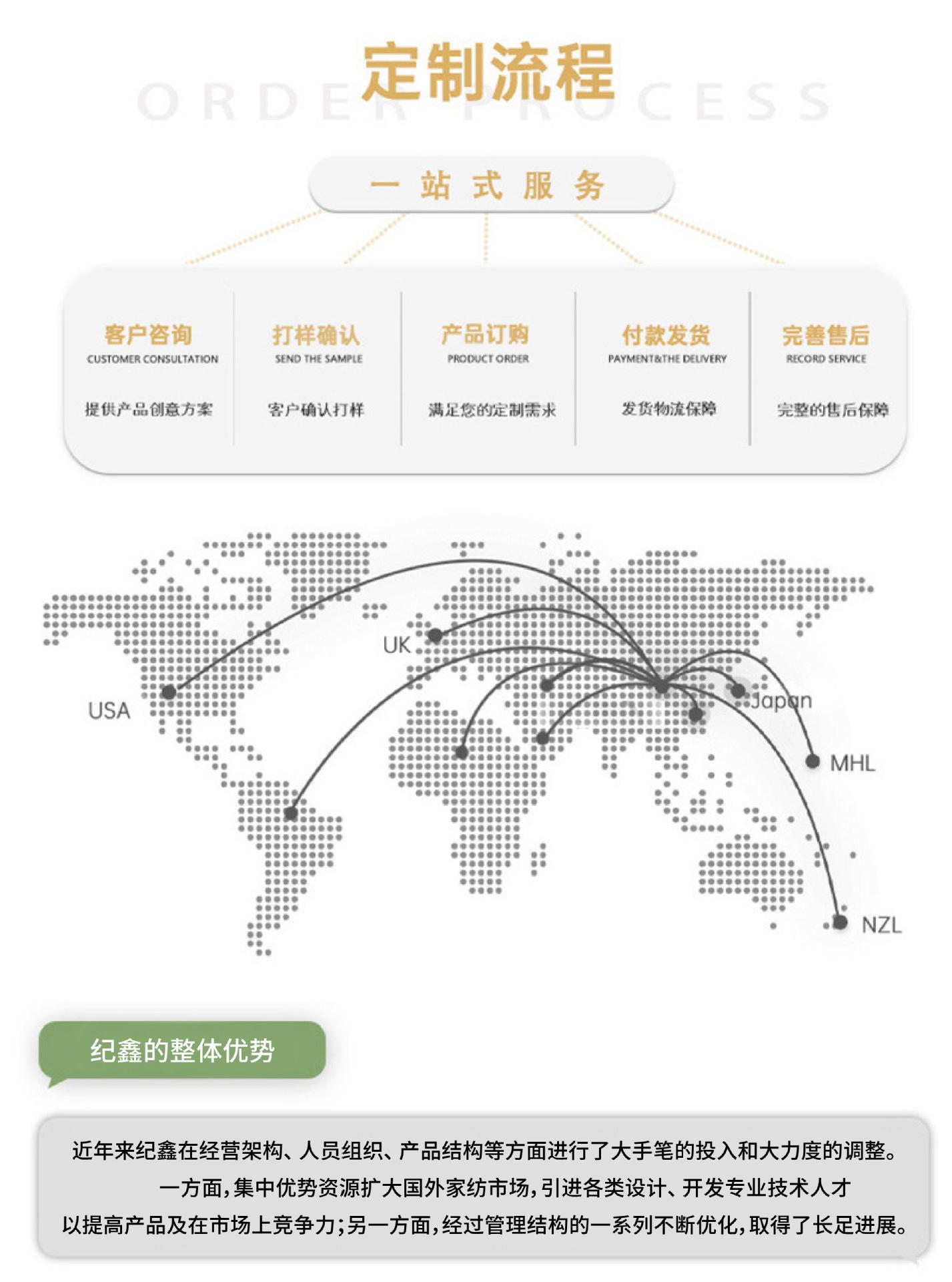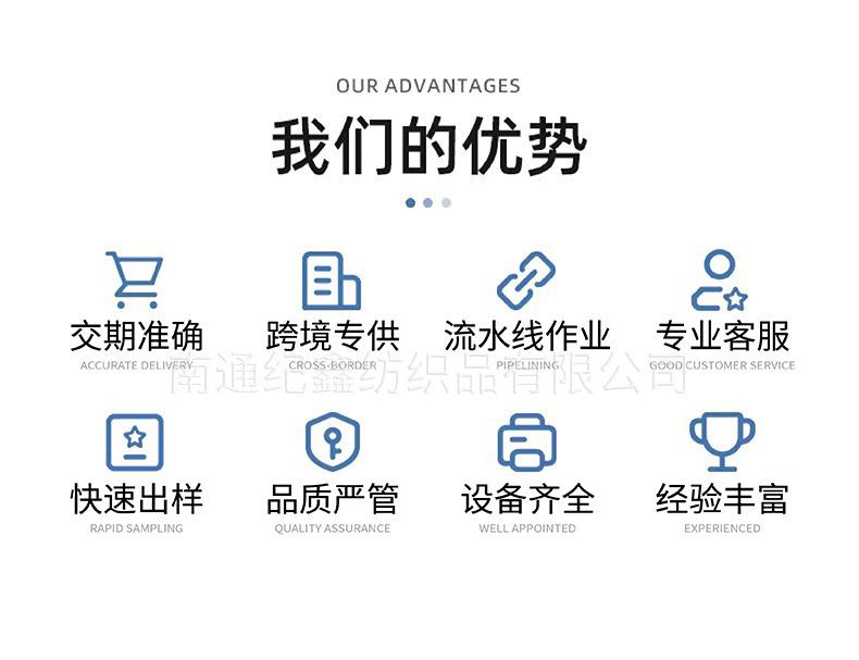Nantong Jixin Textile Co., Ltd. sempre adere à filosofia de negócios de 'interesses do cliente em primeiro lugar', coloca as necessidades do cliente em primeiro lugar e está comprometida em fornecer aos clientes produtos e soluções da mais alta qualidade por meio de um serviço honesto, profissional e eficiente. Aqui, em nome da empresa, espero sinceramente trabalhar com você lado a lado para criar um futuro melhor.!