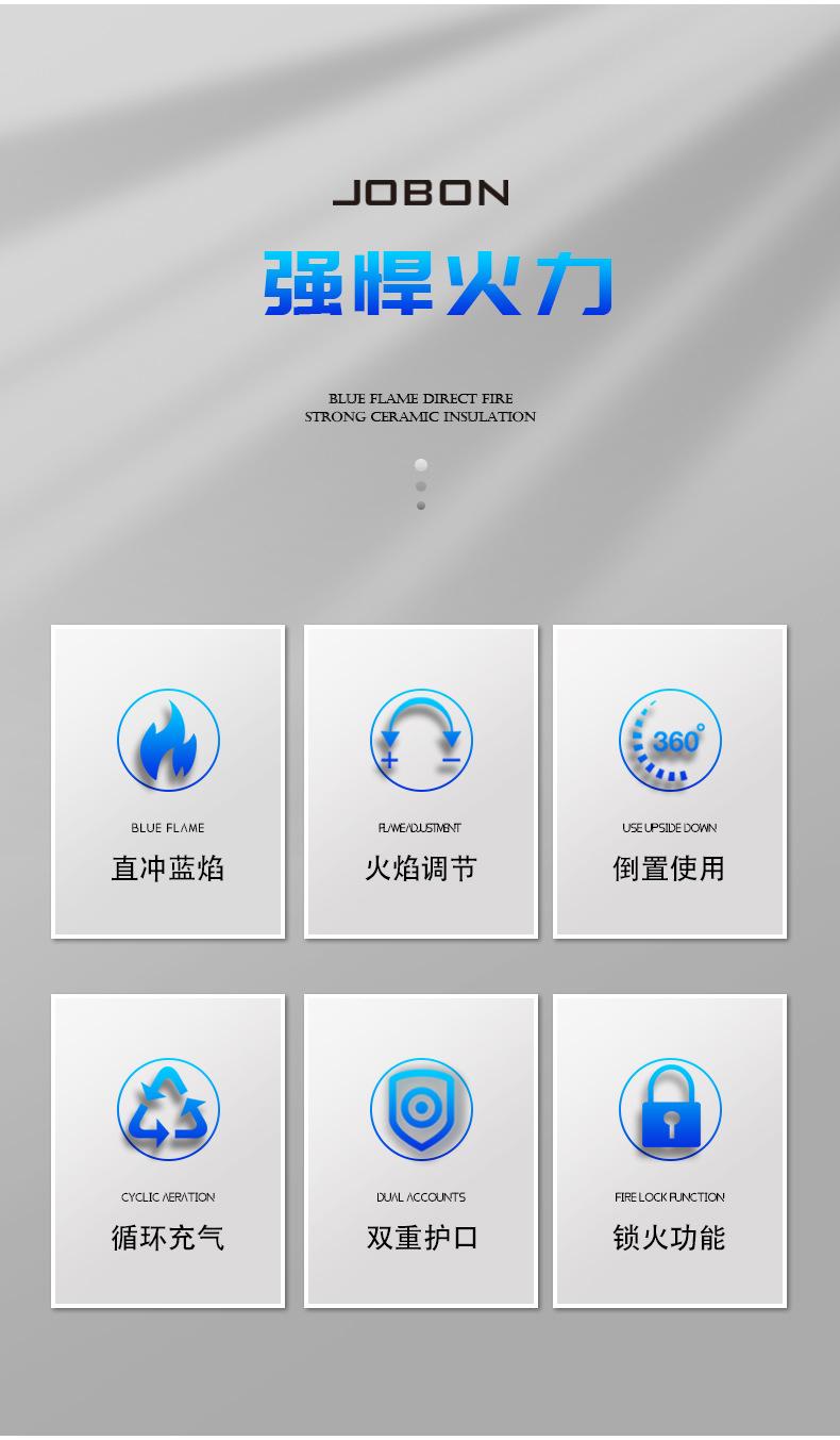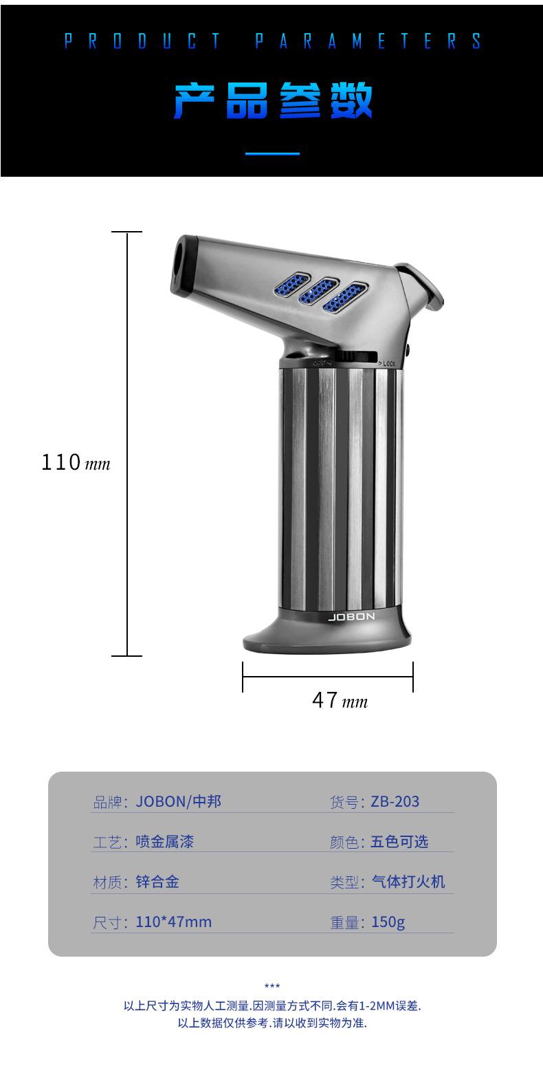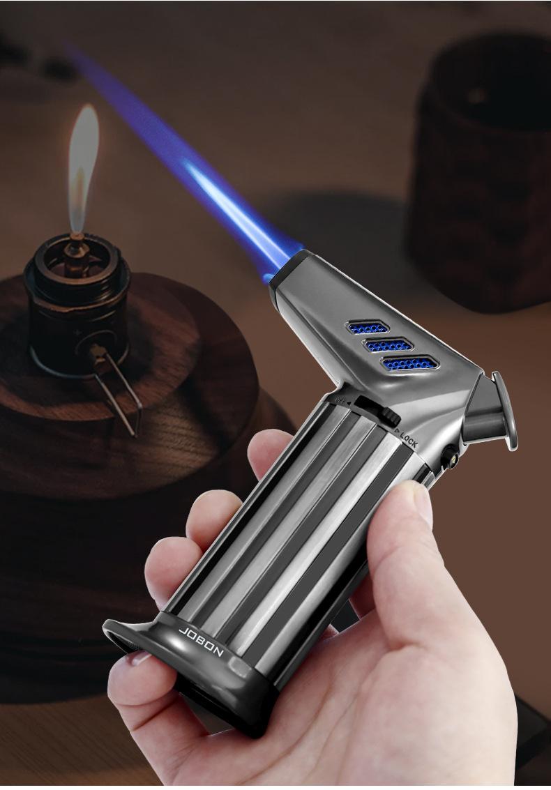 Isqueiro Maçarico Jobon/Zhongbang Chama Azul à Prova de Vento Jato Direto Personalizado Chama Azul Inflável para Charuto Churrasco ao Ar Livre Atacado