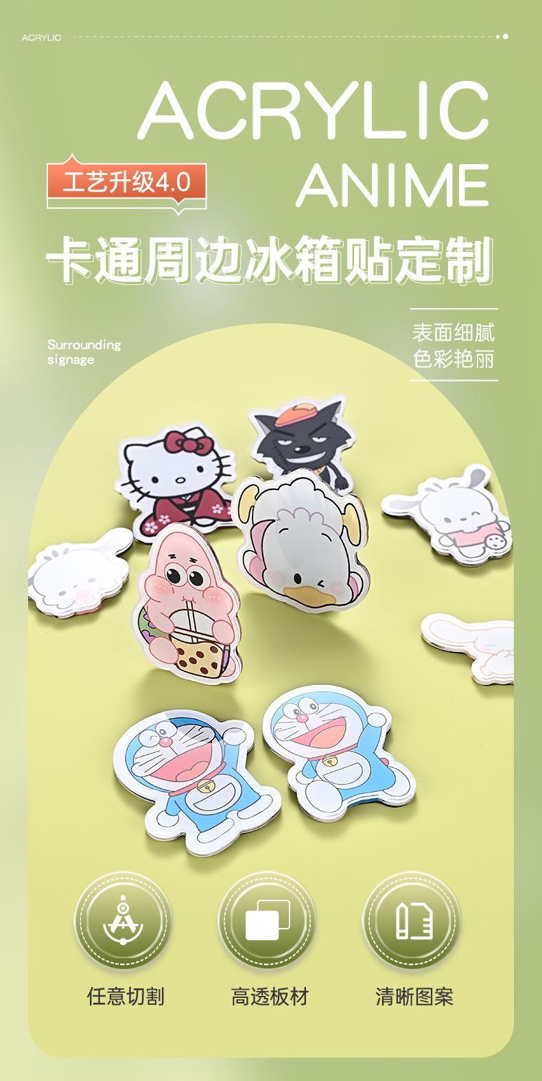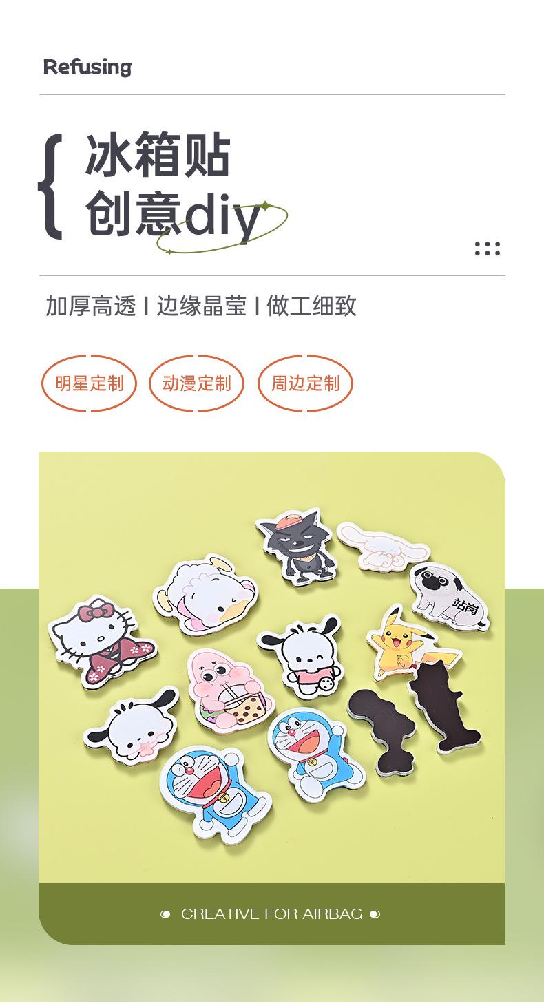 Adesivos de geladeira acrílicos de sanduíche de dupla face personalizados desenho animado fofo anime periférico yuan secundário patch acrílico atacado