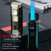 Isqueiro de charuto de chama dupla, soco direto, chama grande, dobrável, furador de charuto todo em metal, quente no atacado transfronteiriço, janela de ar visual