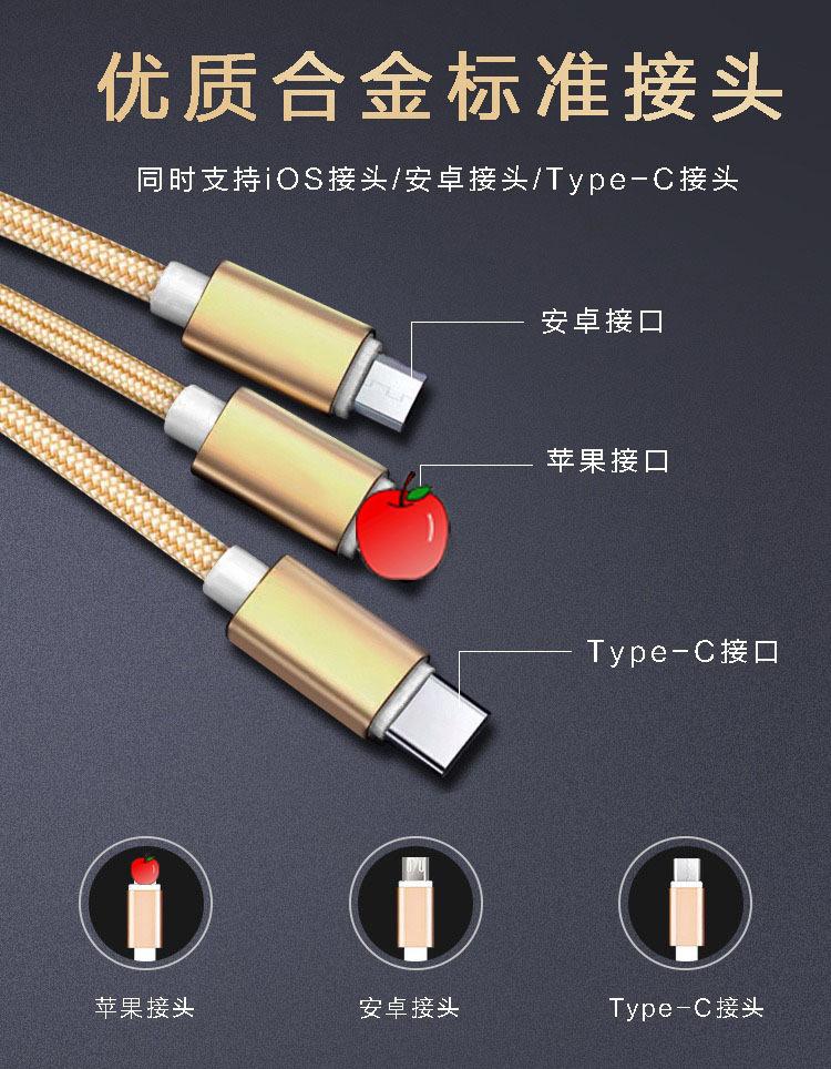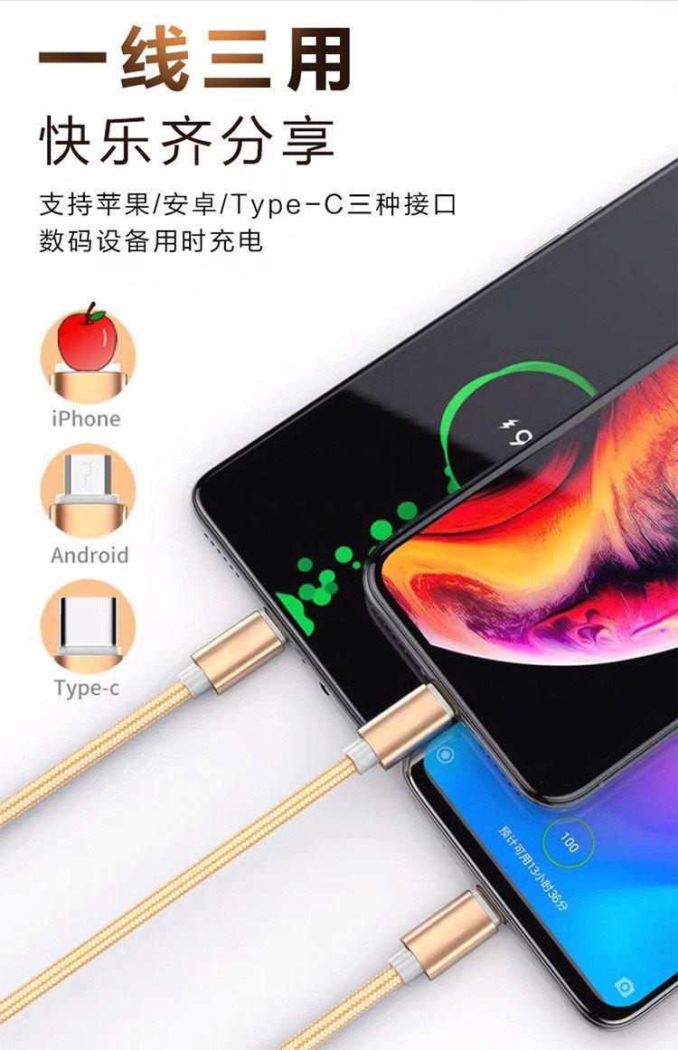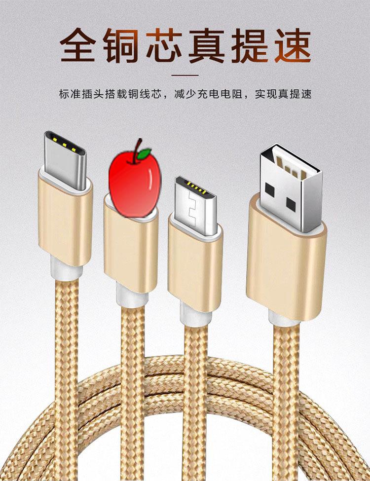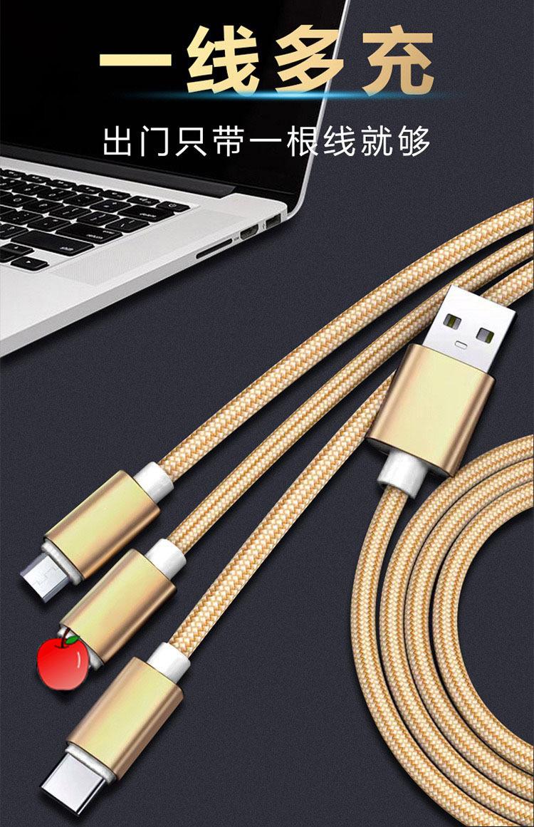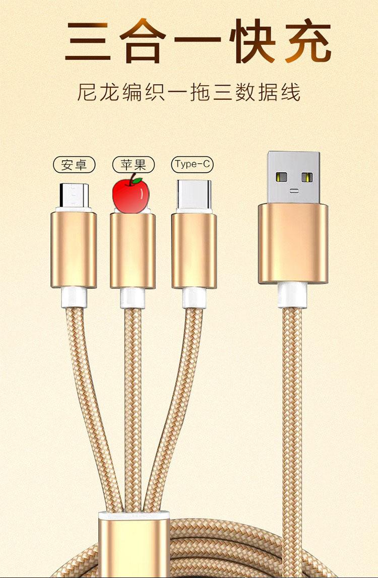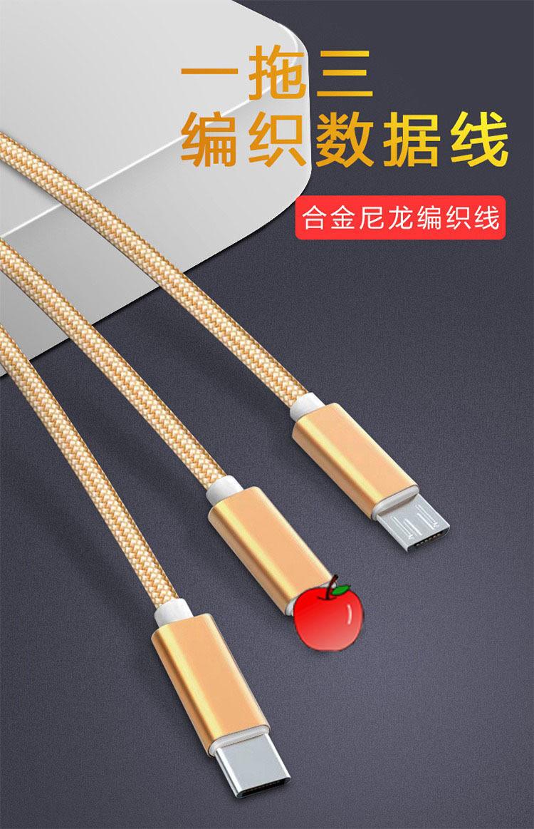 【Nome do Produto】:Cabo de Dados 3 em 1 Trançado para Carregamento Rápido para Presente de Comércio Exterior