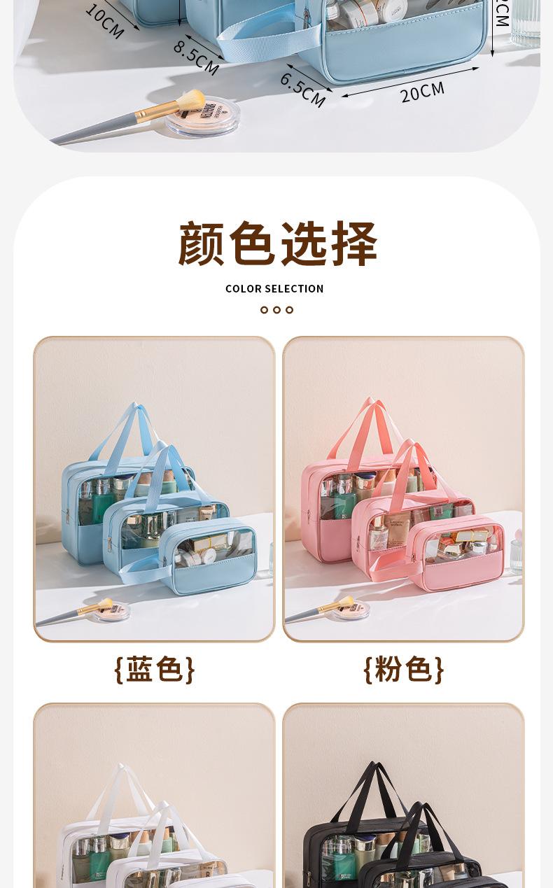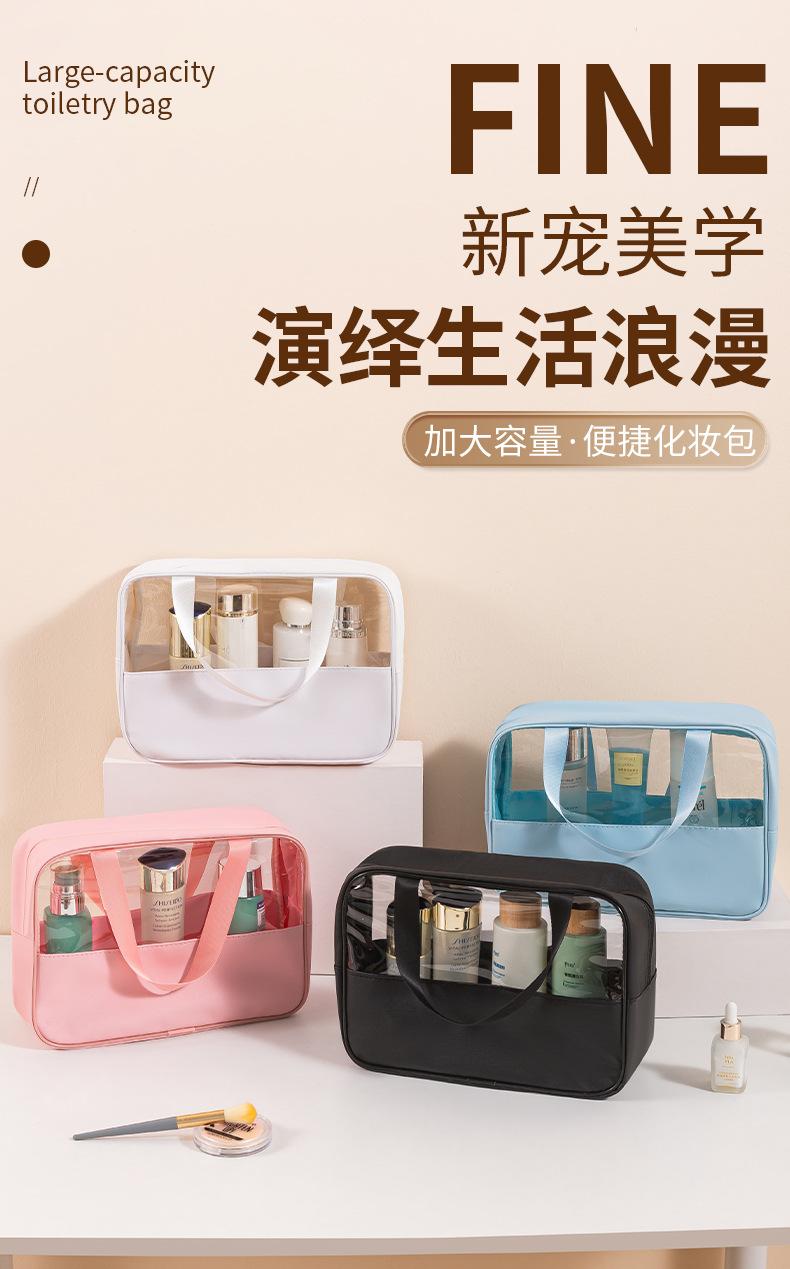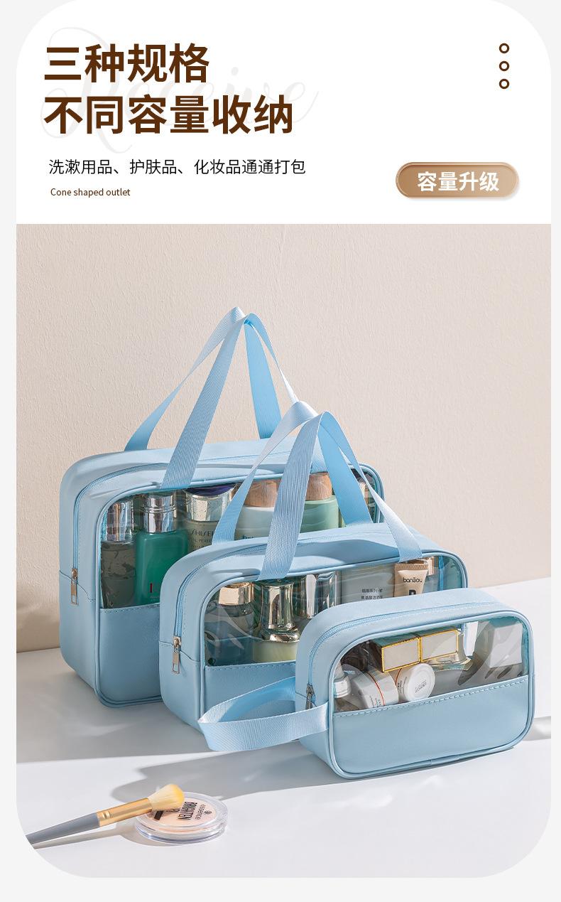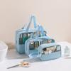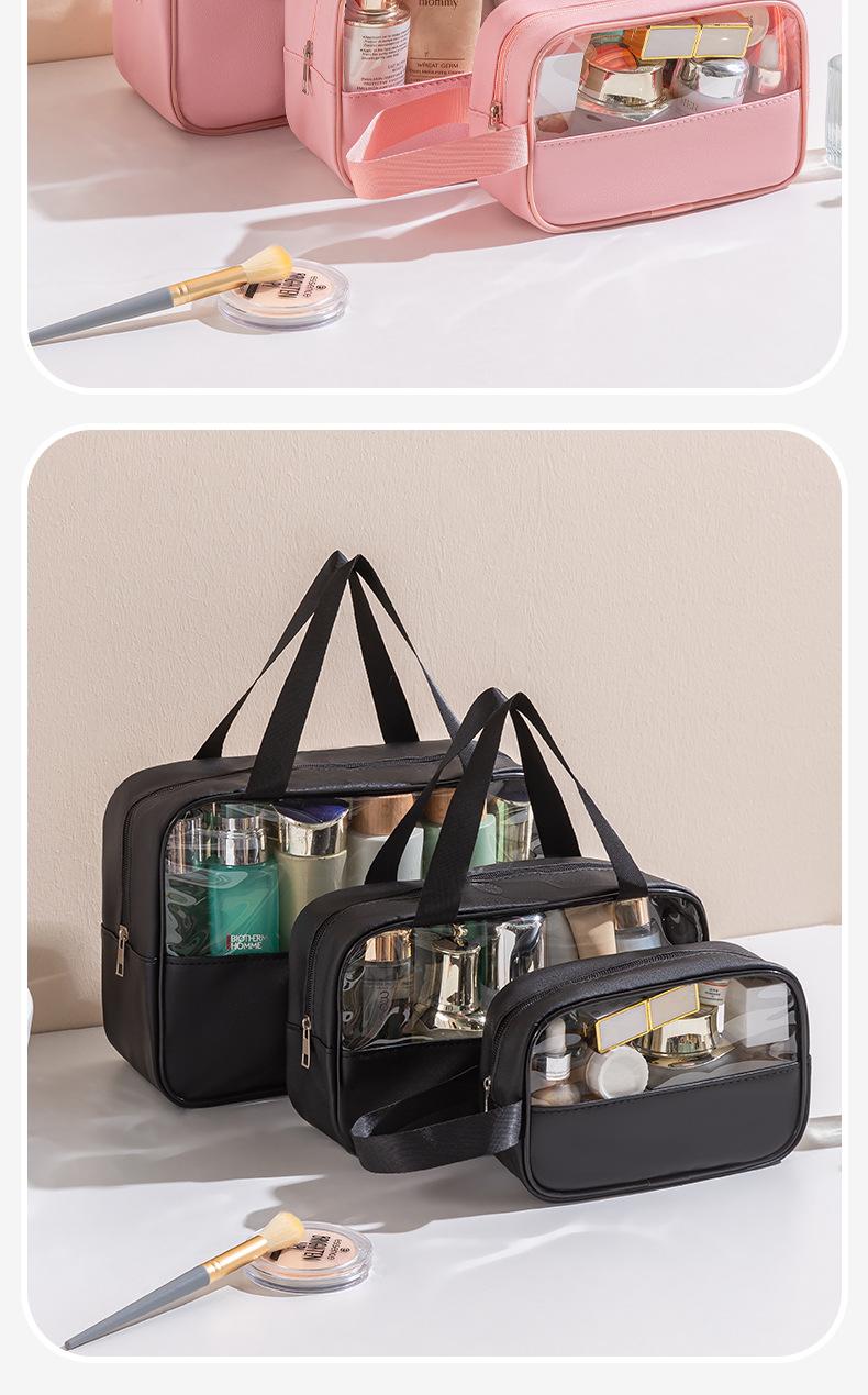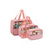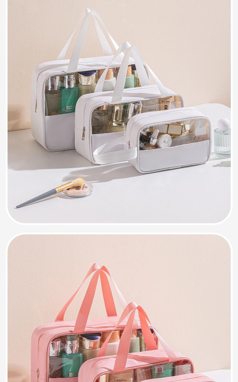 Bolsa de Maquiagem de Mão Minimalista Transparente Emendada Portátil Impermeável Grande Capacidade PVC Necessaire Armazenamento Conjunto de Três Peças