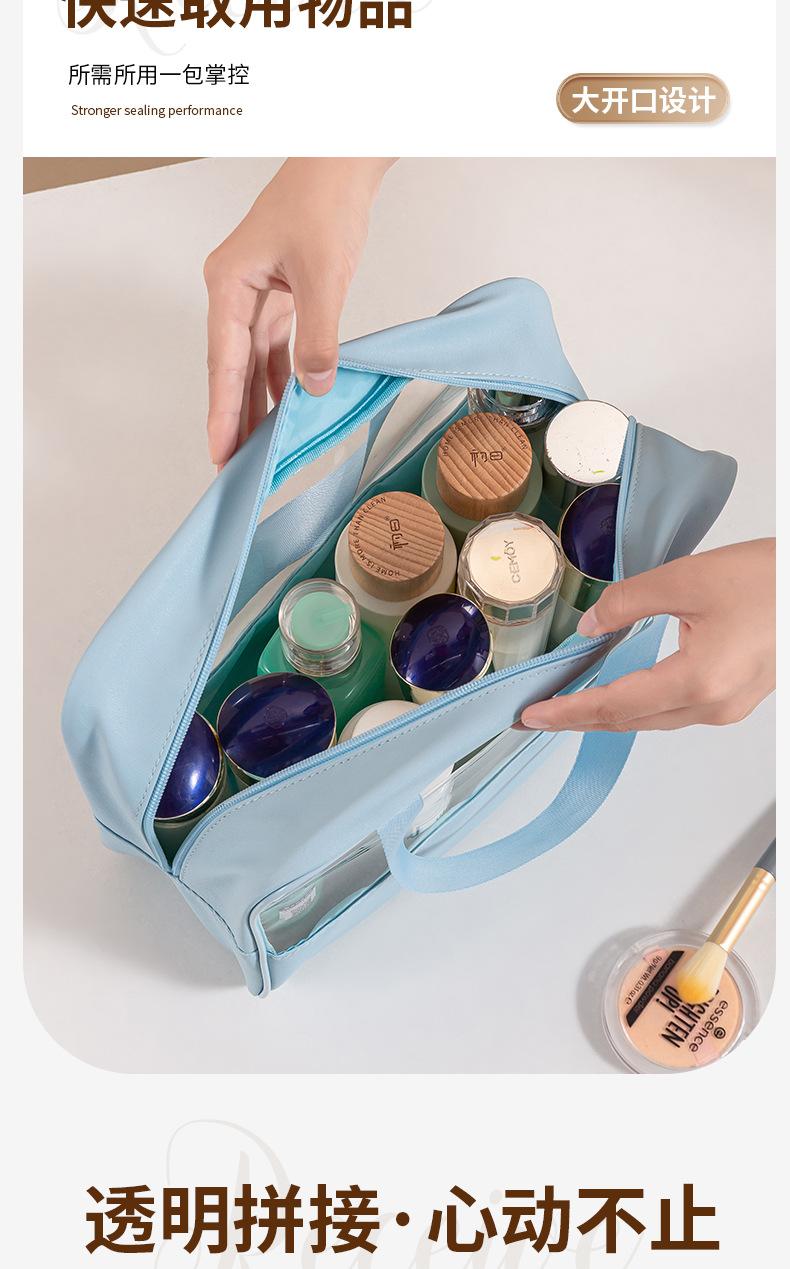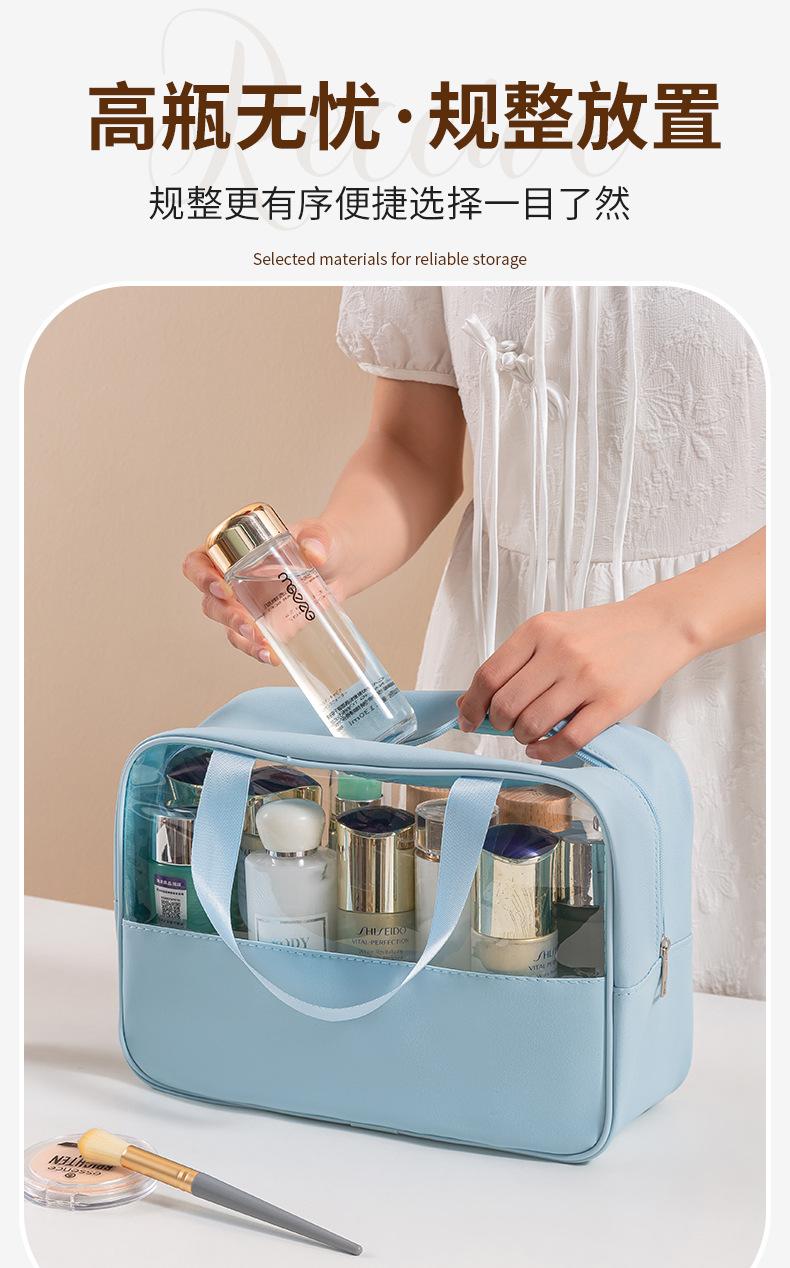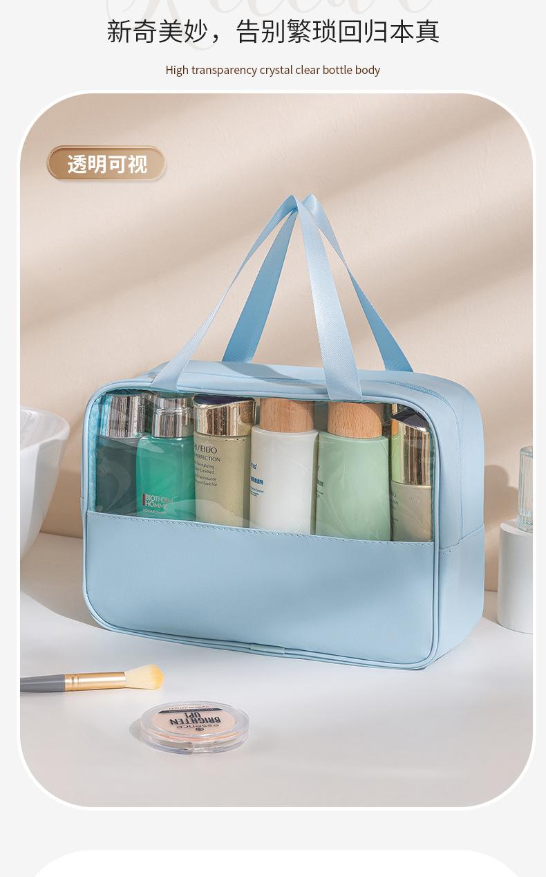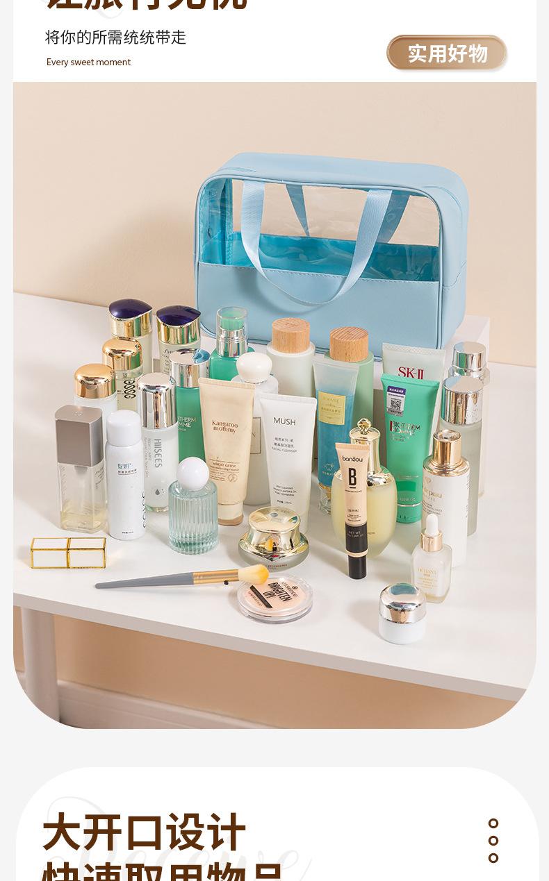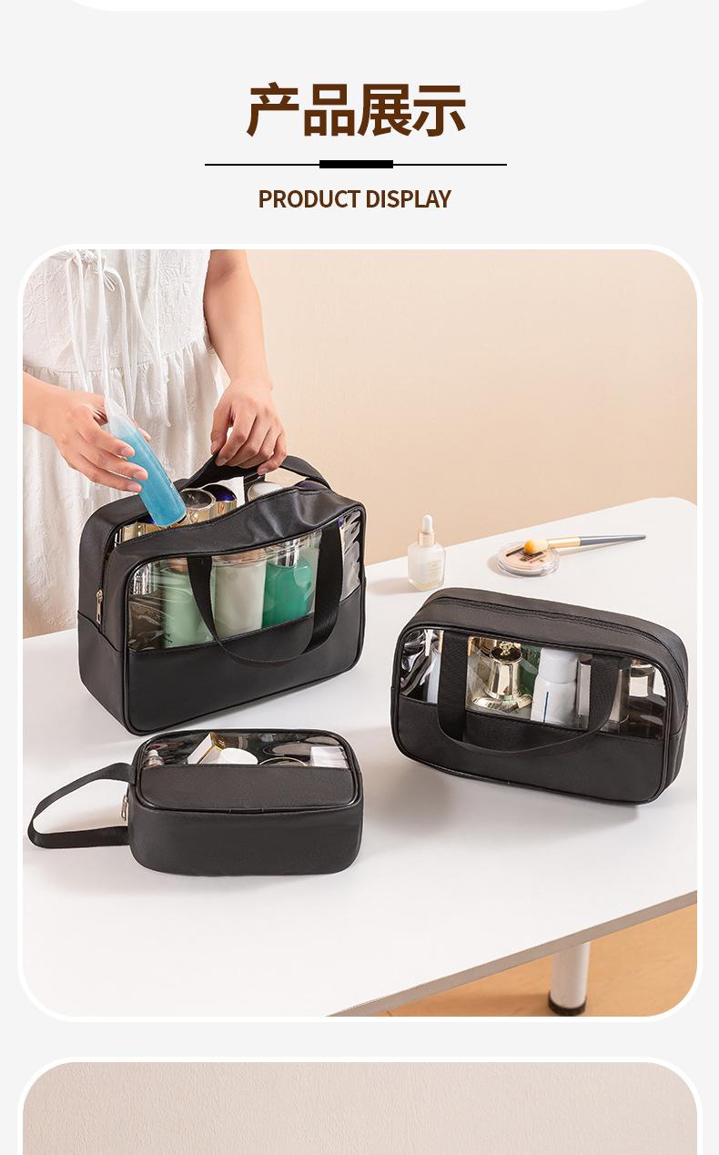 Bolsa de Maquiagem de Mão Minimalista Transparente Emendada Portátil Impermeável Grande Capacidade PVC Necessaire Armazenamento Conjunto de Três Peças