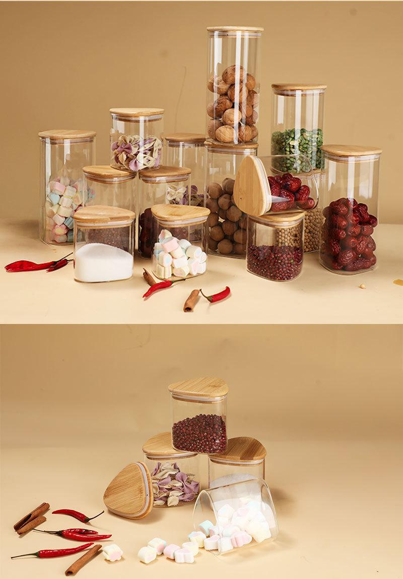 Pote Triangular de Armazenamento Cozinha Armazenamento de Grãos Pote Selado Vidro Transparente Tampa de Bambu Chá Pote Selado de Alto Borossilicato