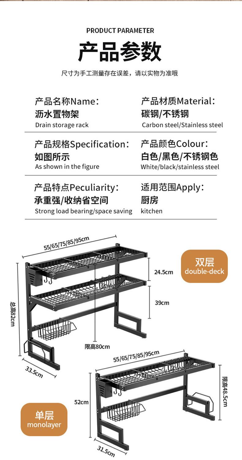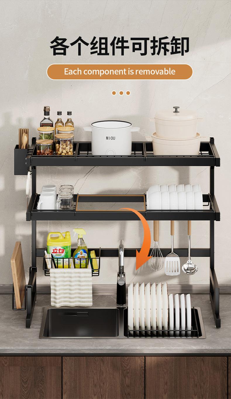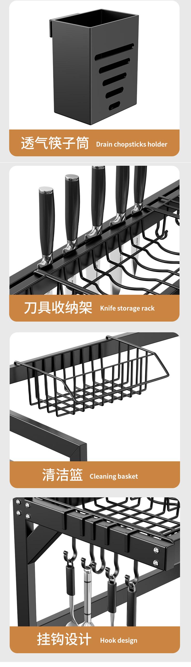 65cm double-layer sink dish rack (black fully equipped)