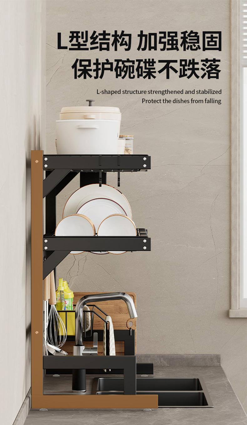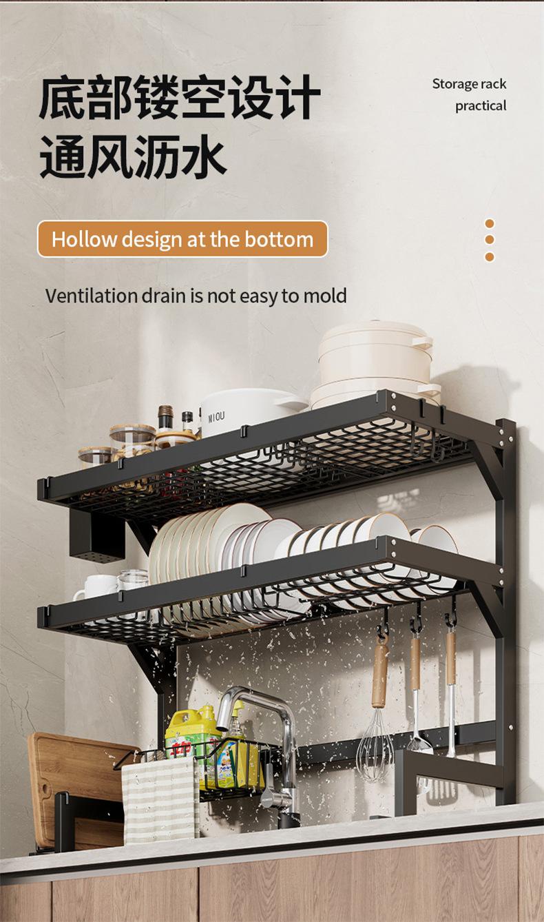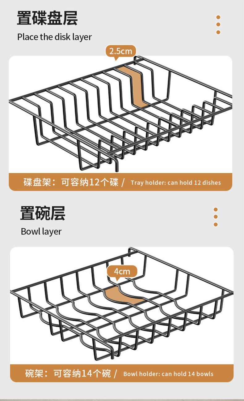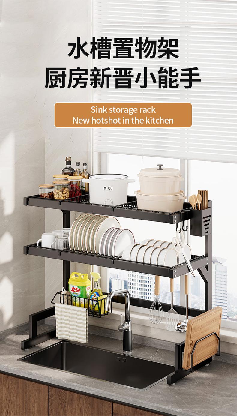 65cm double-layer sink dish rack (black fully equipped)