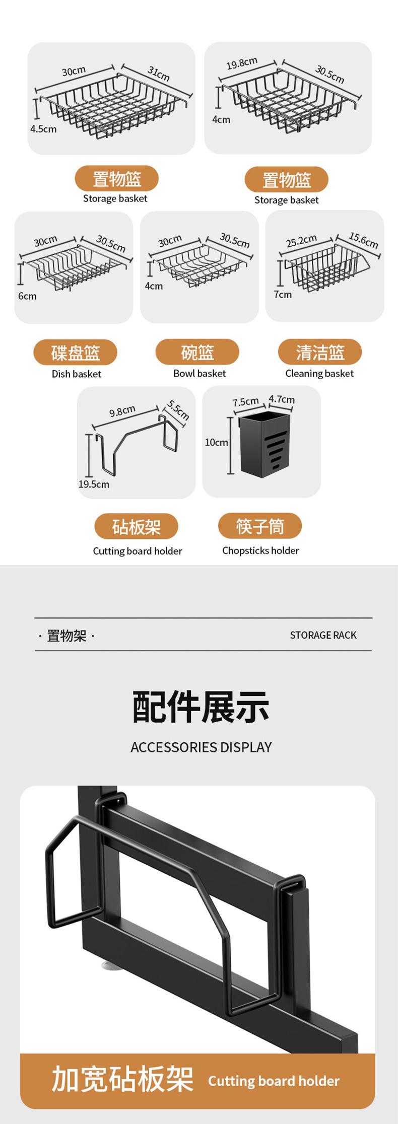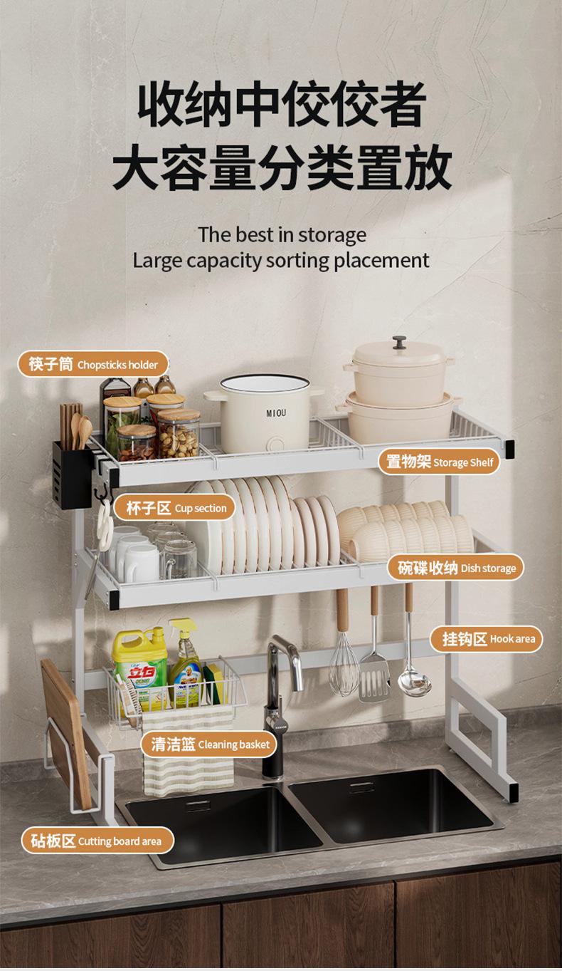 65cm single-layer sink dish rack (silver fully equipped), 65cm single-layer sink dish rack (black fully equipp...