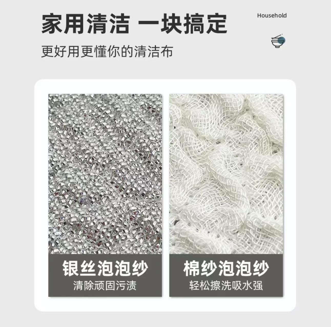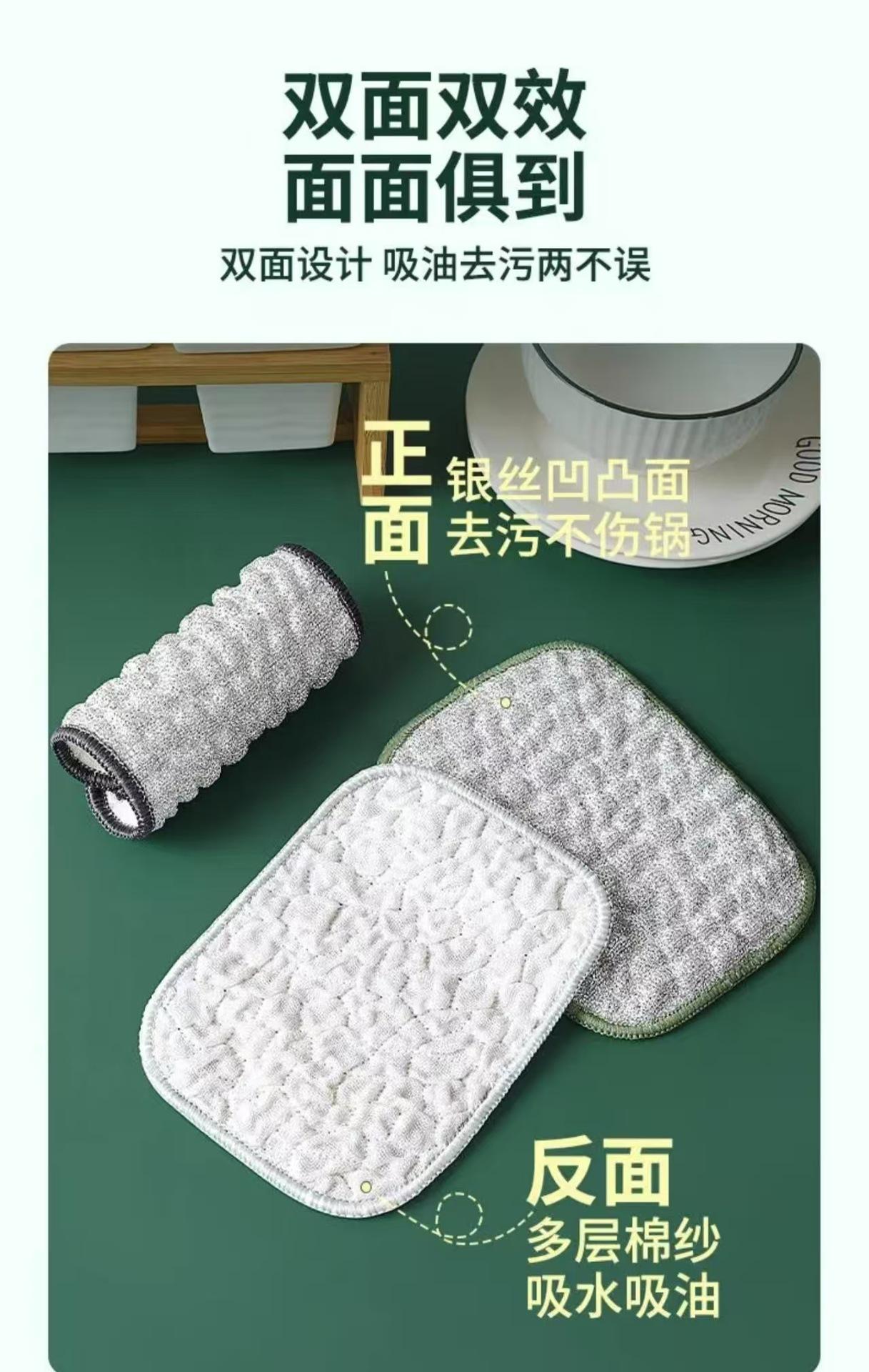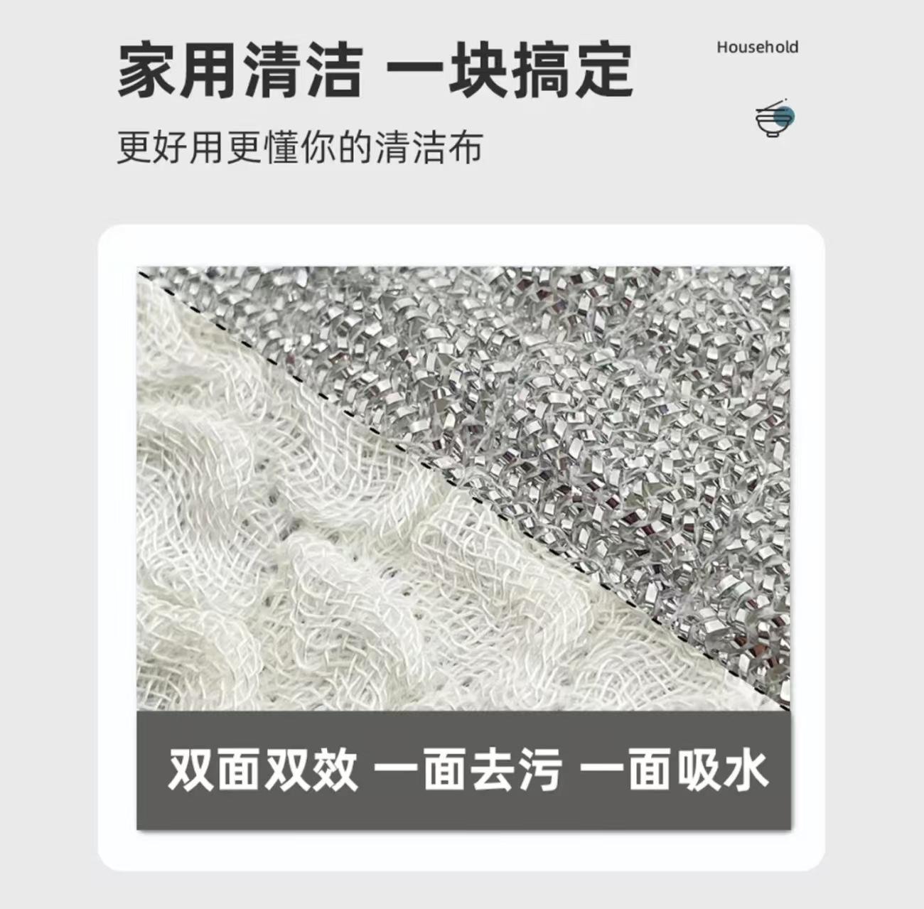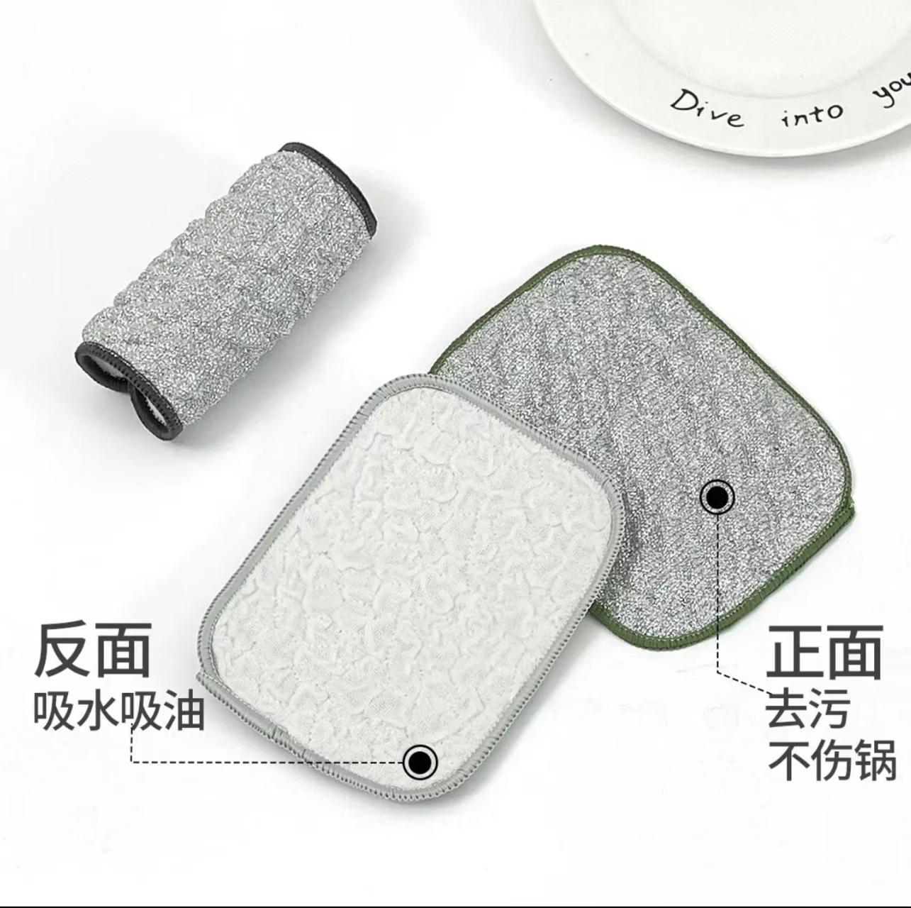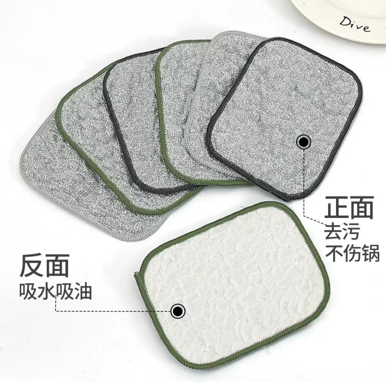 Compre Pano de Lavar Louça Espesso de Camada Dupla Não Oleoso, Palha de Aço, Pano de Limpeza Absorvente, Ferramenta de Lavar Louça e Esfregar Panelas de Gaze de Algodão e Seda Prateada no atacado no Joom.pro
