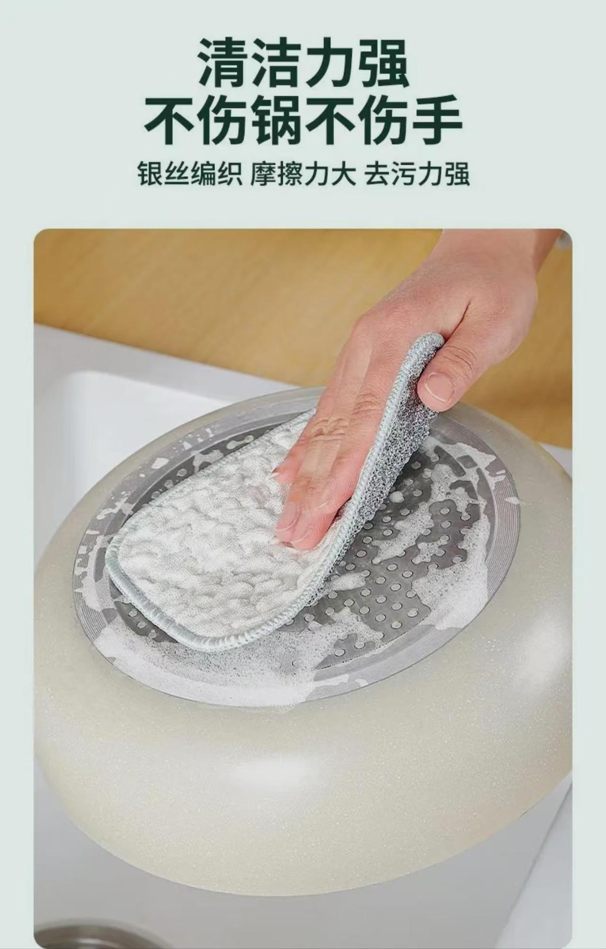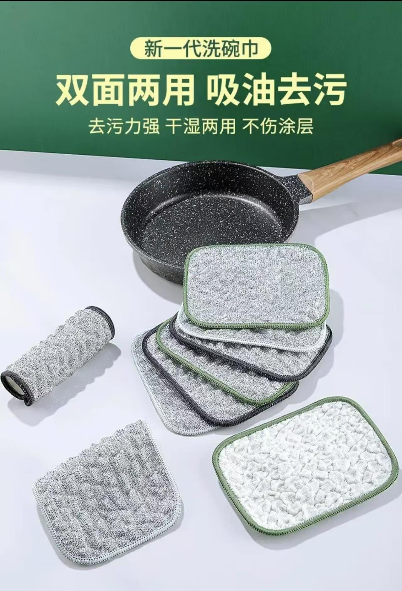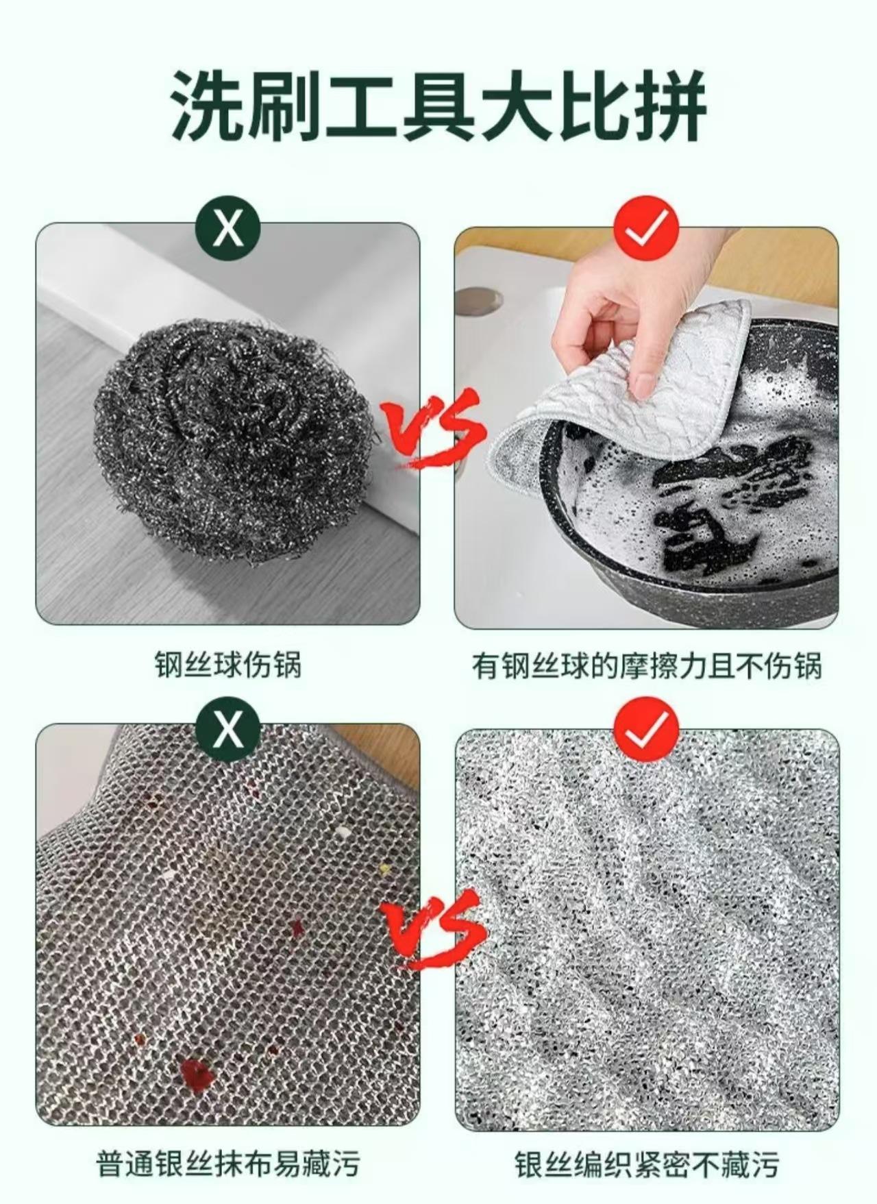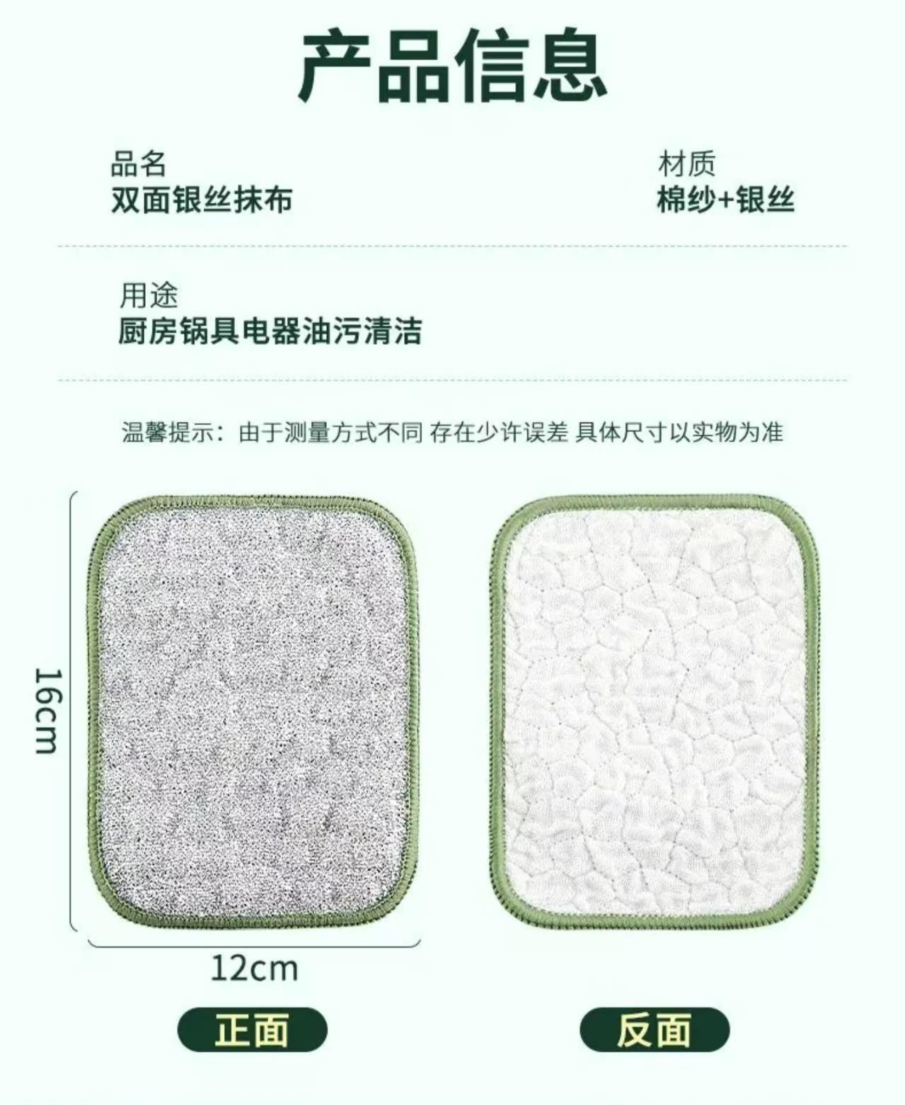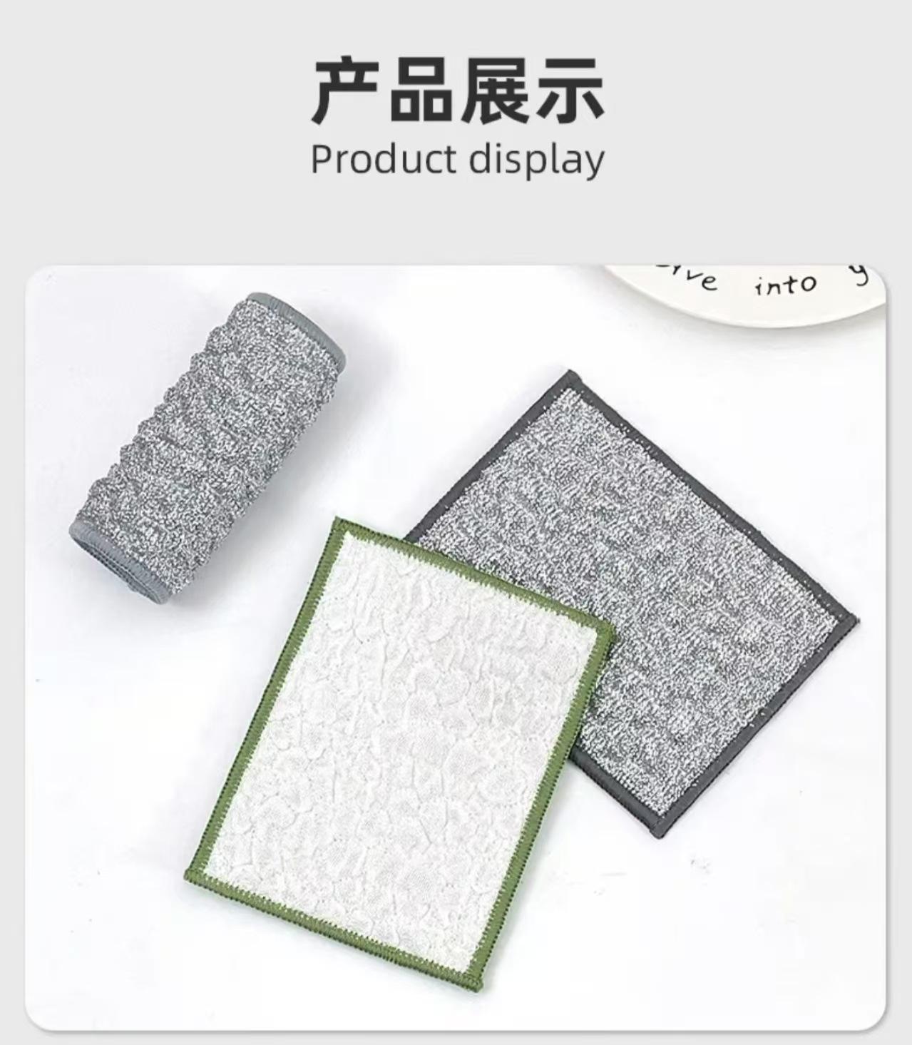 Compre Pano de Lavar Louça Espesso de Camada Dupla Não Oleoso, Palha de Aço, Pano de Limpeza Absorvente, Ferramenta de Lavar Louça e Esfregar Panelas de Gaze de Algodão e Seda Prateada no atacado no Joom.pro