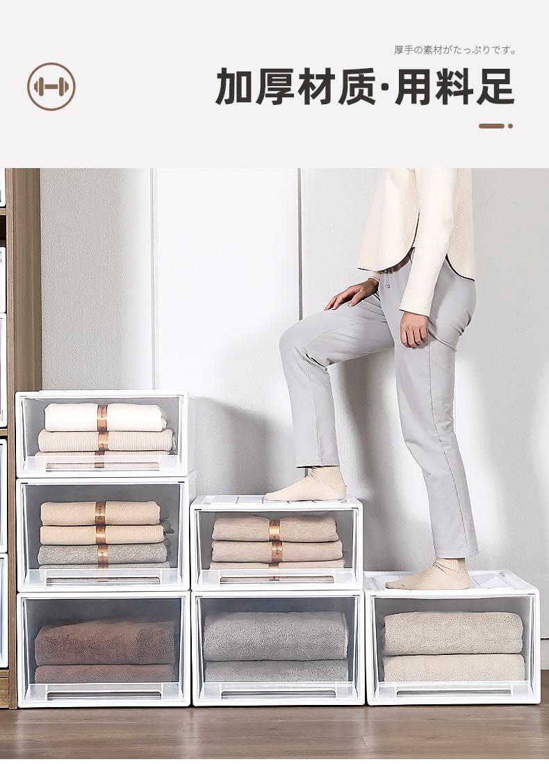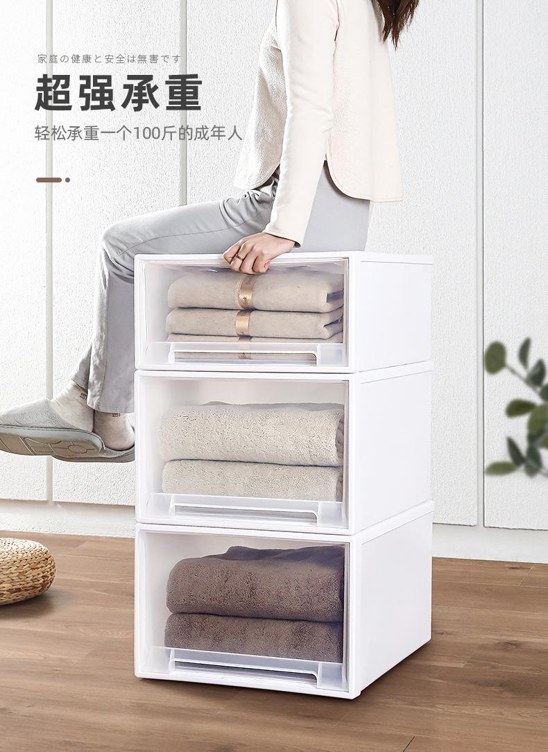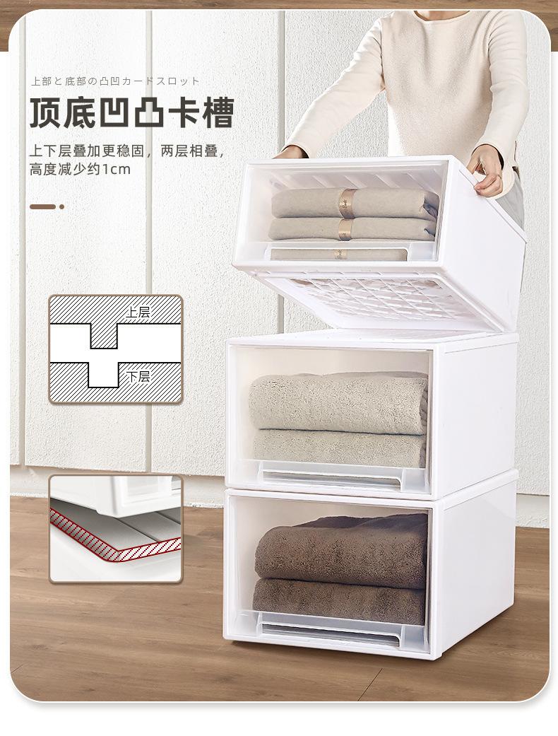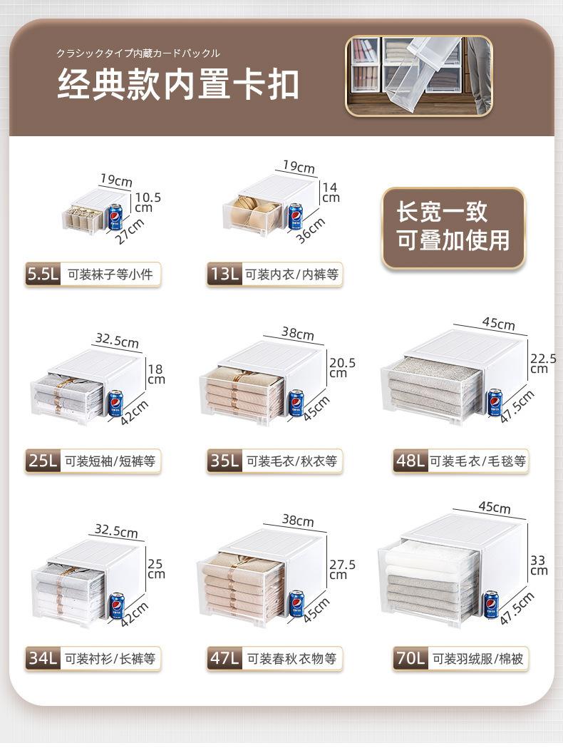 Caixa de Armazenamento Transparente Tipo Gaveta Guarda-Roupa Grande Capacidade para Armazenamento de Roupas e Peças Íntimas Caixa Organizadora de Plástico Caixa de Armazenamento Doméstico