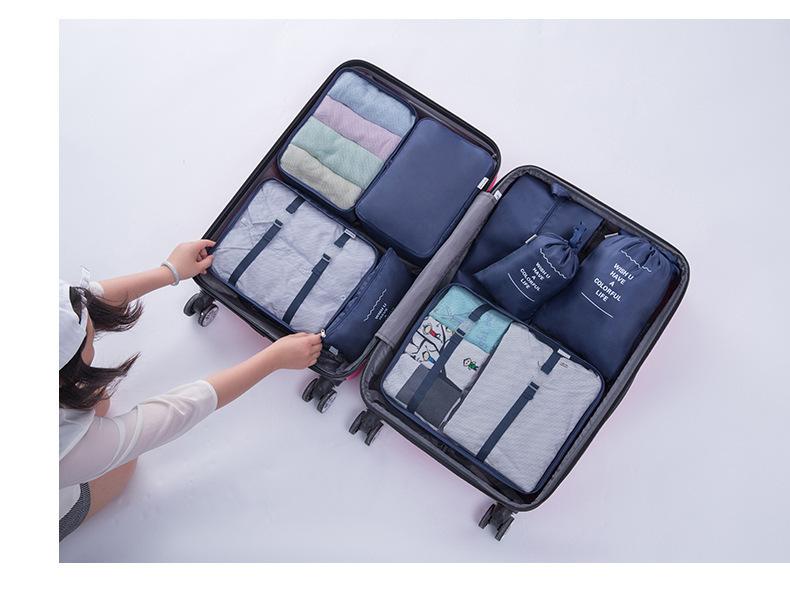 Conjunto de nove peças de bolsa de armazenamento de viagem, bolsa de higiene digital, bolsa de armazenamento de cosméticos, bolsa de roupa multifuncional para bagagem de viagem