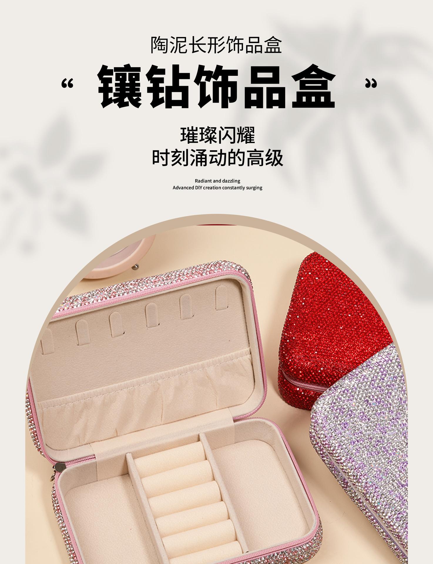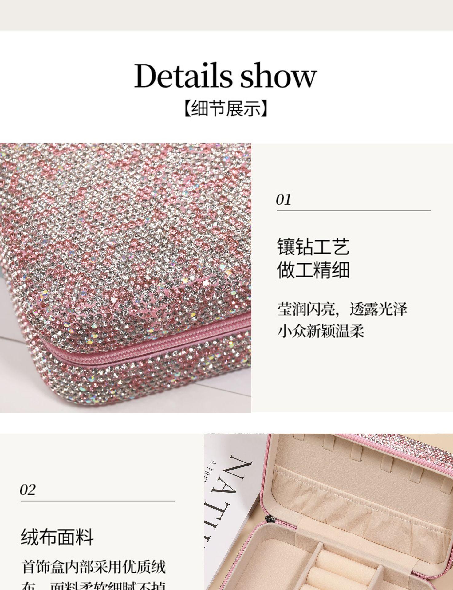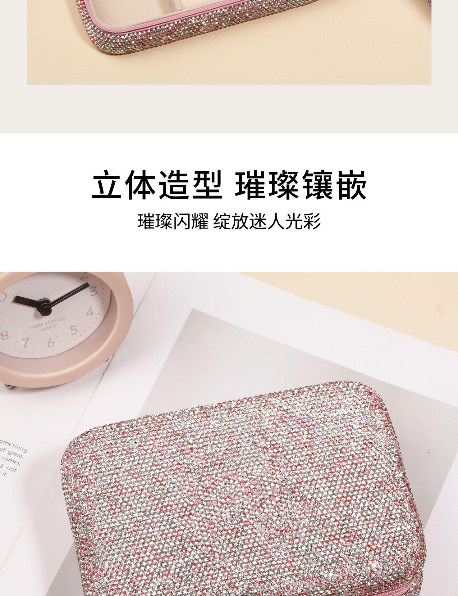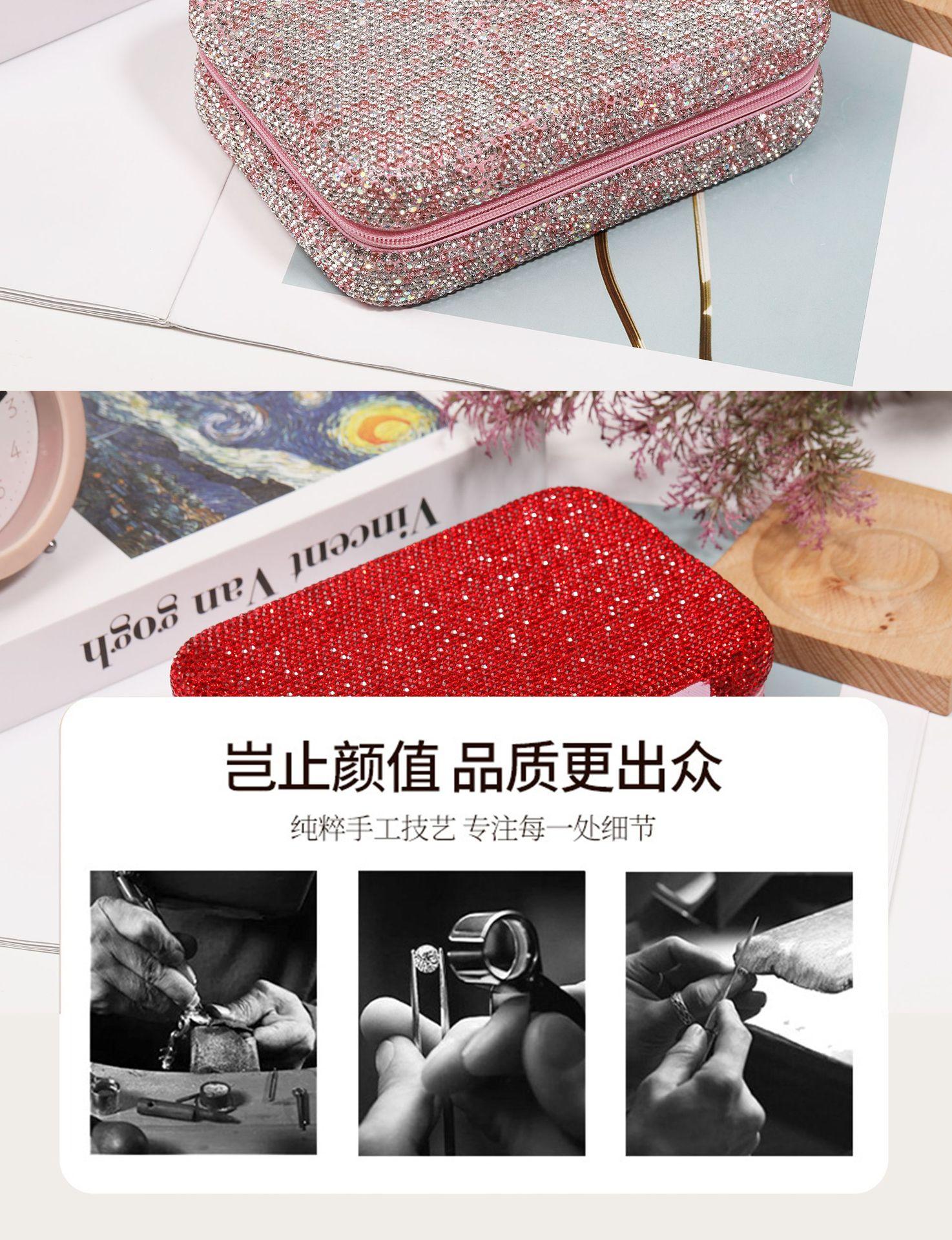 Caixa de joias transfronteiriça para atacado com incrustações de diamantes, porta-anéis doméstico, brincos, colar, bolsa de armazenamento, caixa organizadora de joias